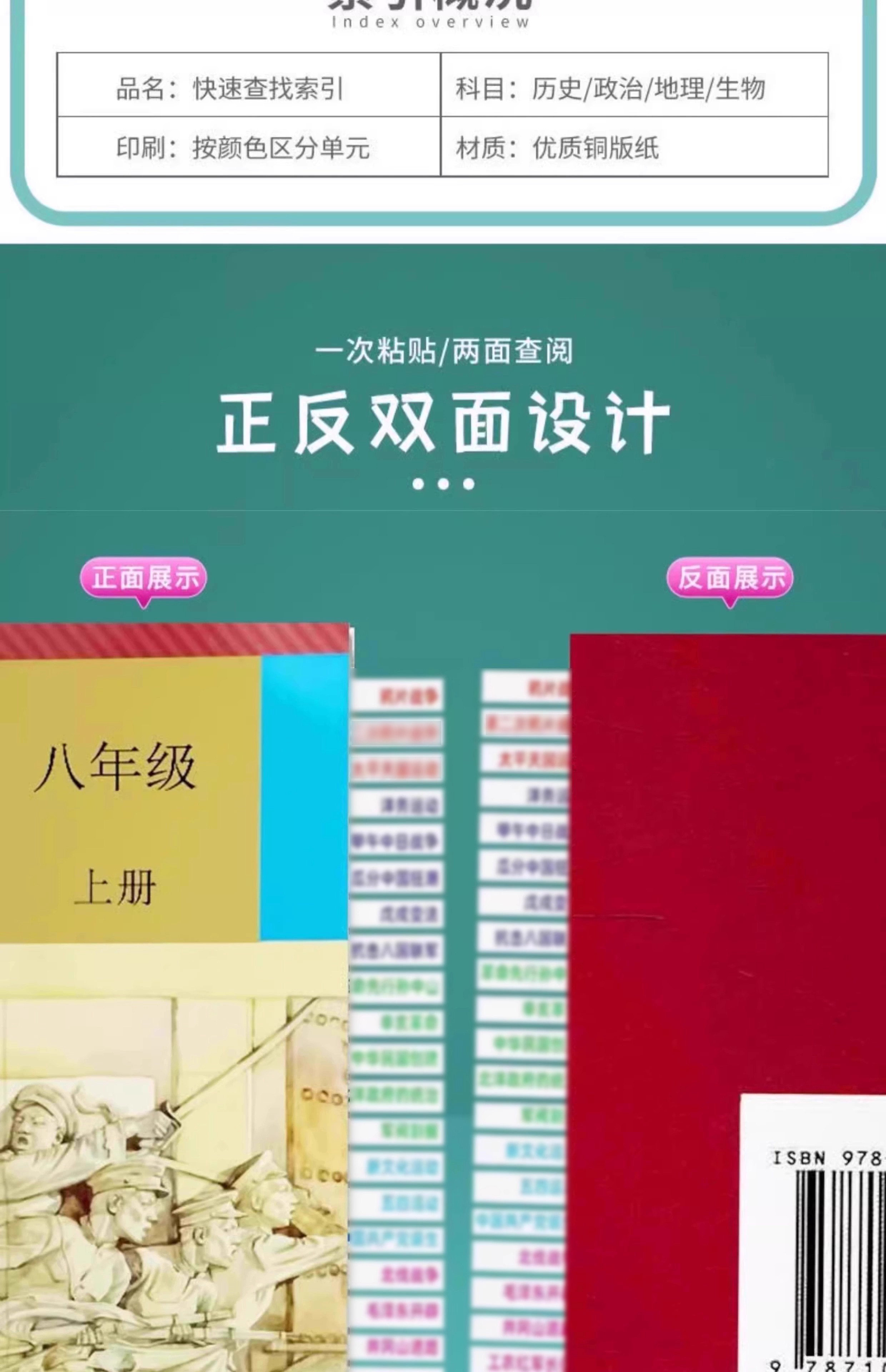 2026 Middle School Entrance Exam Politics and History Book Index Stickers, Junior High School Biology, Geography, and Social Studies Exam Open-Book Cheat Sheet Quick Reference Stickers for Grades 7, 8, and 9, People's Education Press Edition Textbook, Wanwei Index Sticky Notes, Convenient Stickers