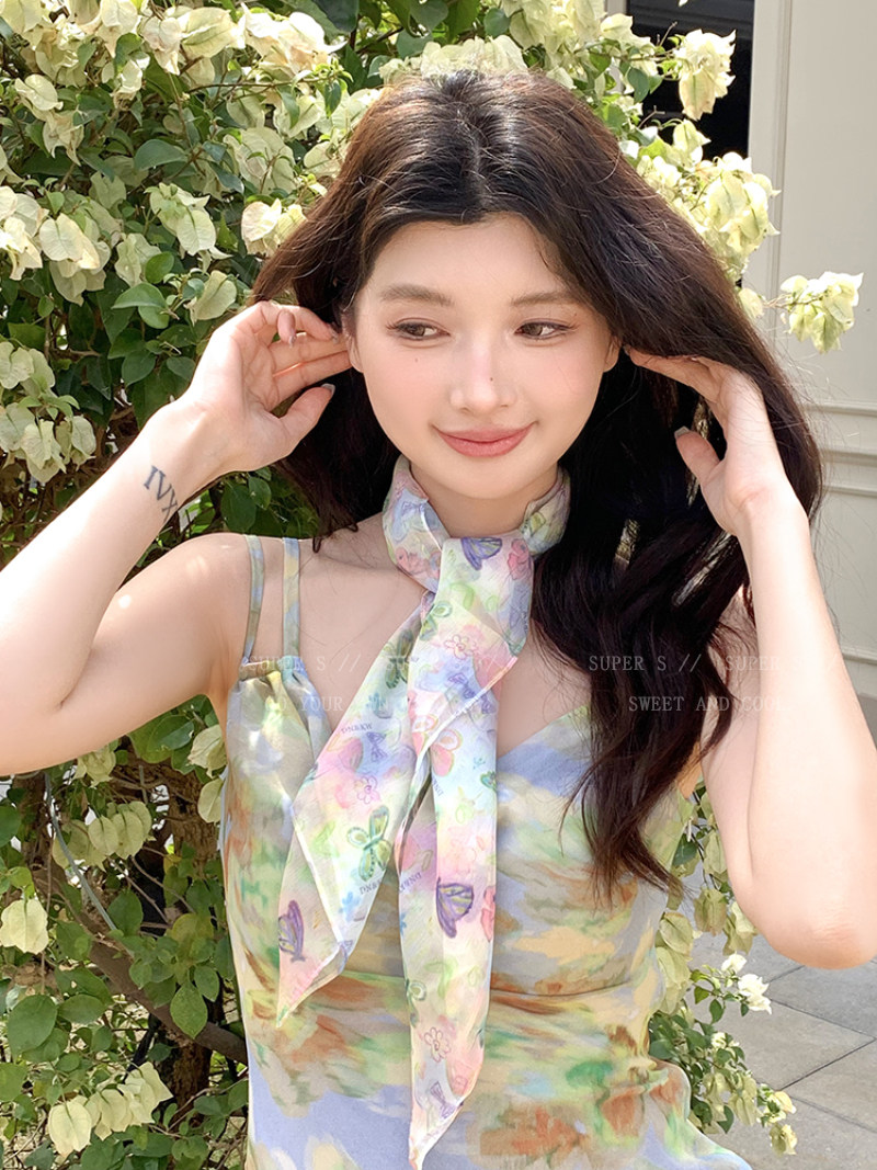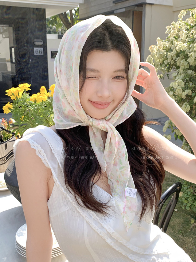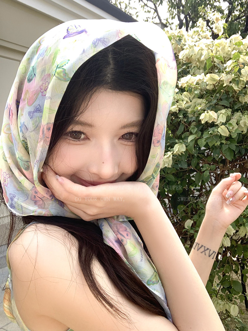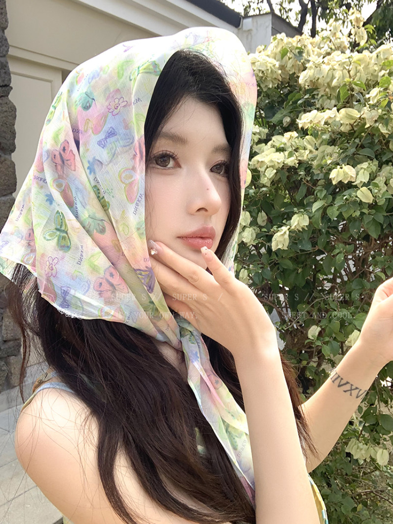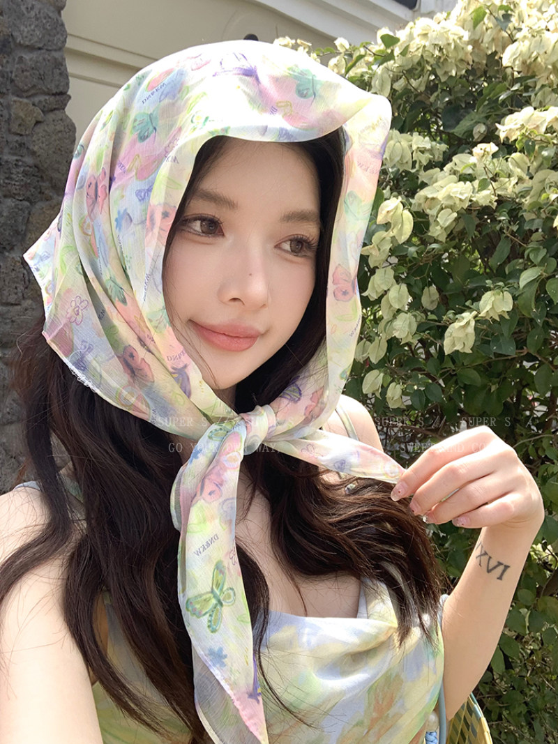 Colorful Dopamine Butterfly Flower Square Scarf for Women 2025 New Spring and Summer Pastoral Style Headscarf Photo Atmosphere Silk Scarf