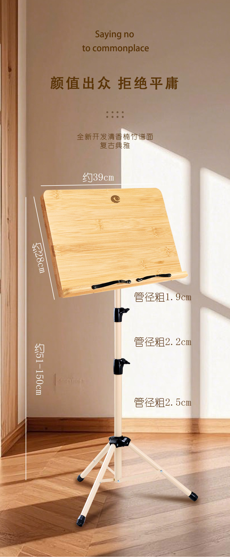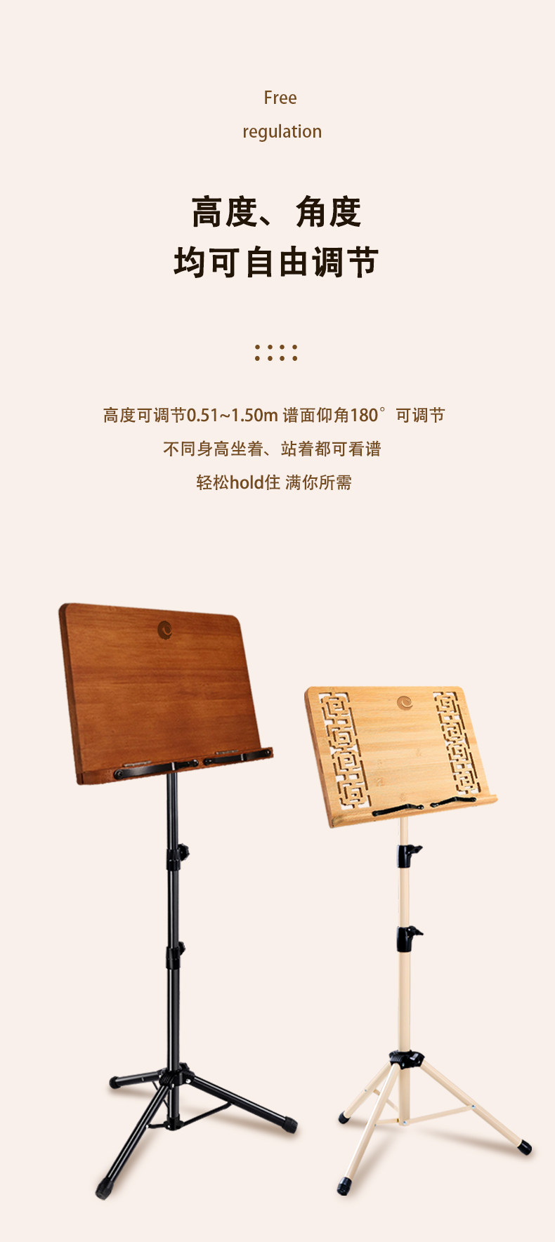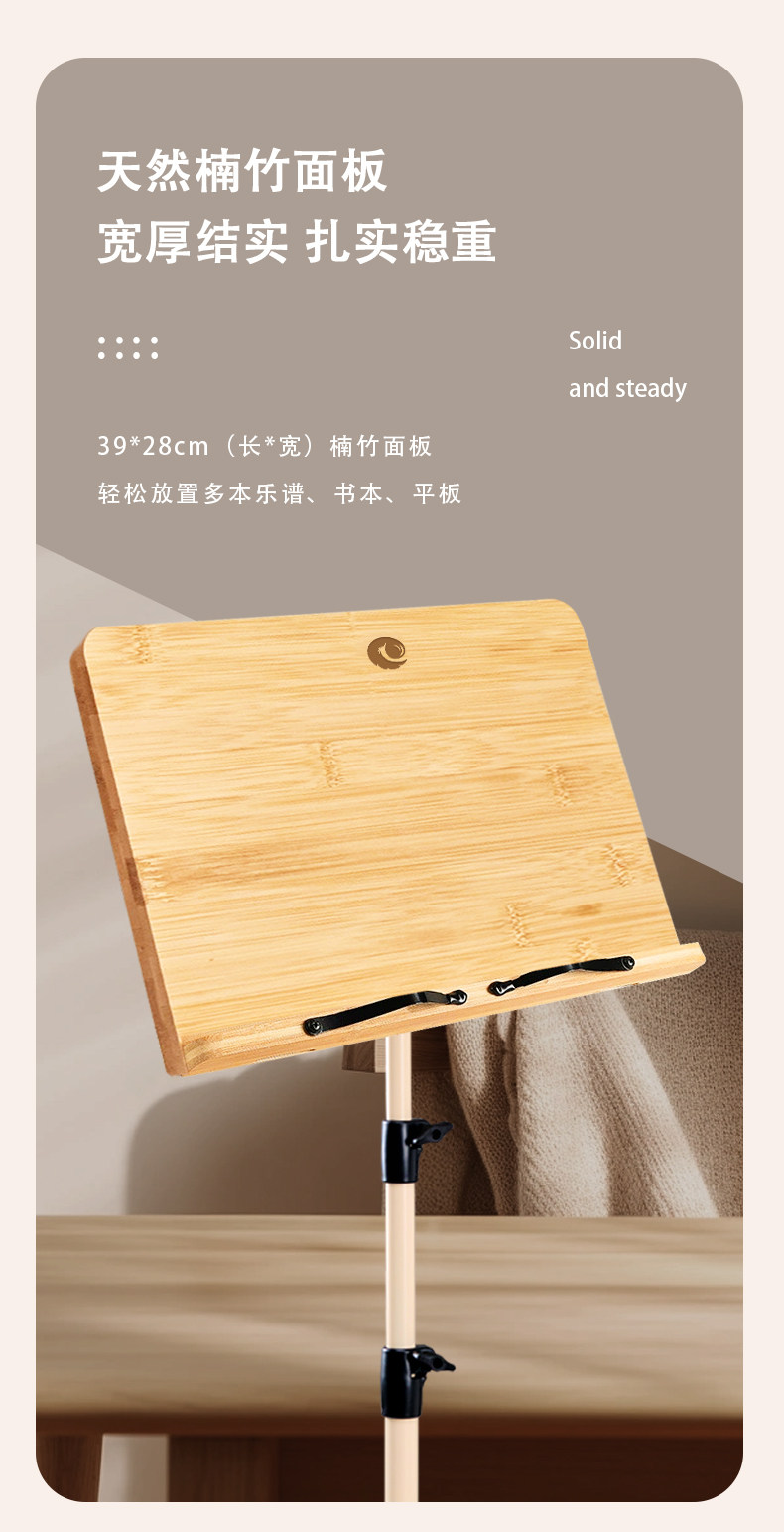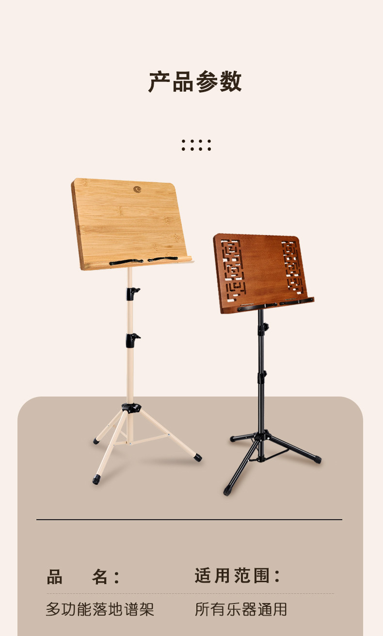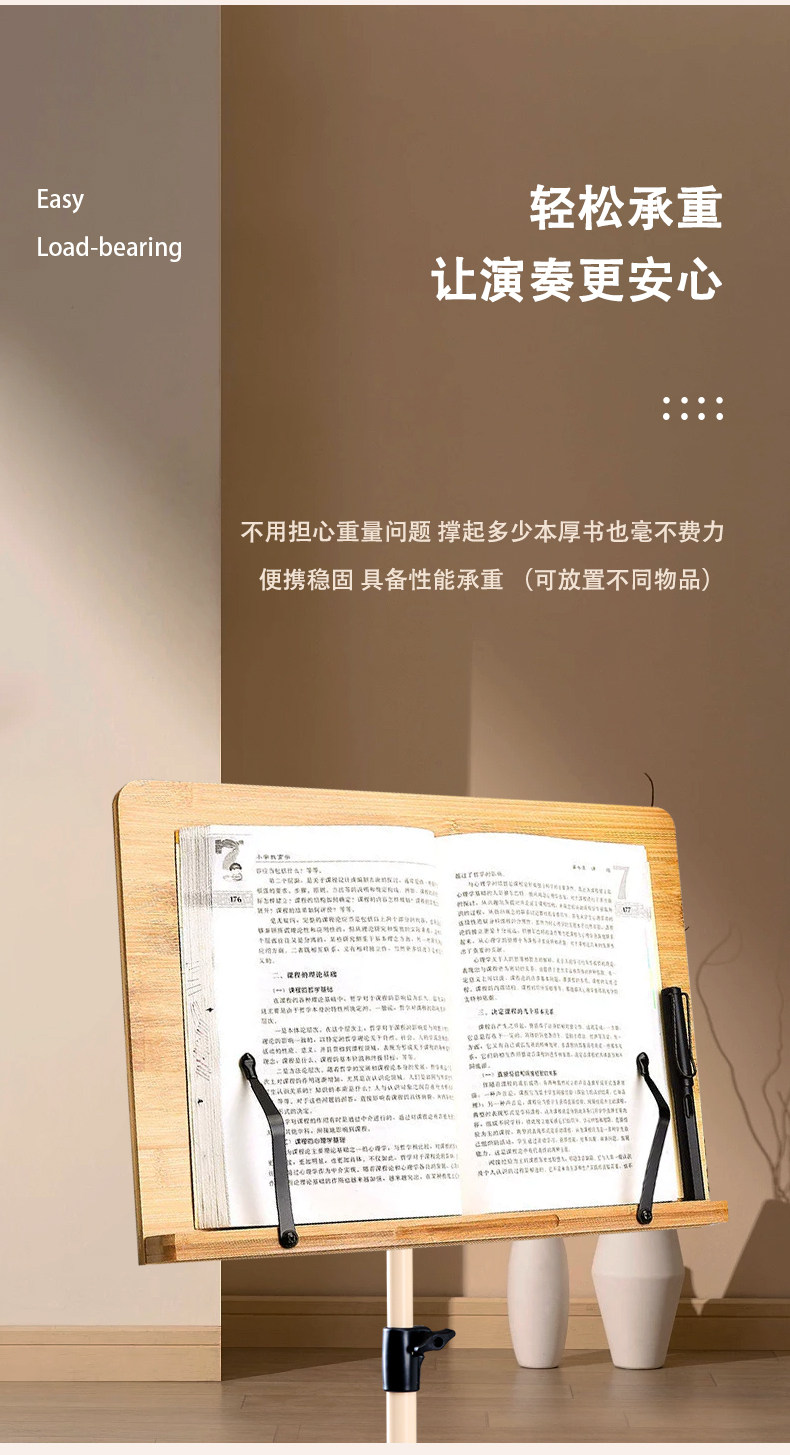 High-End Bamboo Music Stand, Portable Floor-Standing Solid Wood Reading Stand, Adjustable Height for Reading Books and Sheet Music, Suitable for Piano, Music Stand, and Guzheng