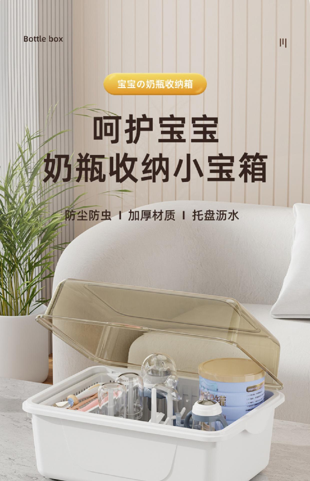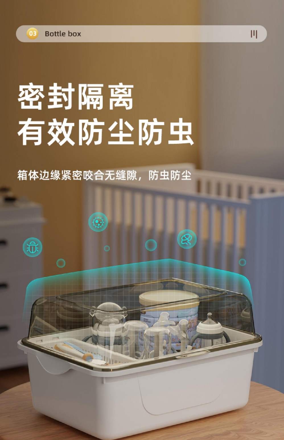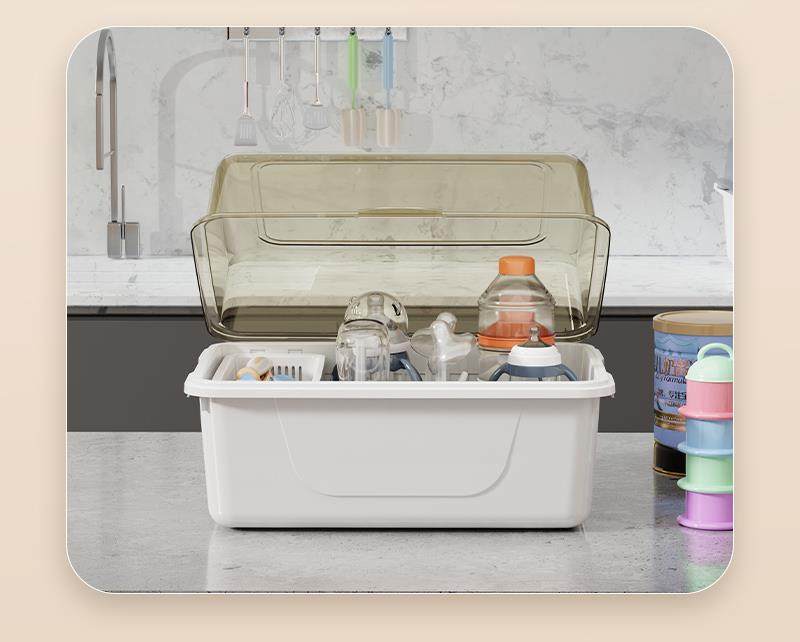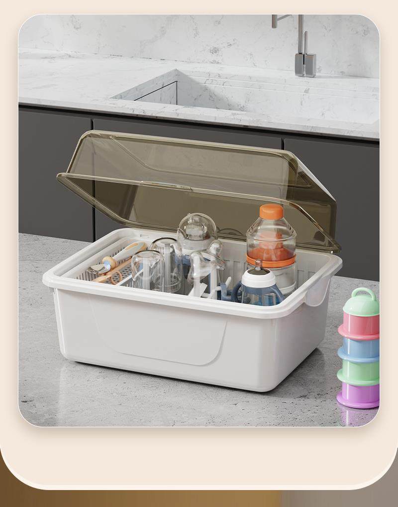 Baby Bottle Storage Box, Drying Rack with Lid, Dustproof, Baby Food Supplement Tableware Tool Storage Box Cabinet