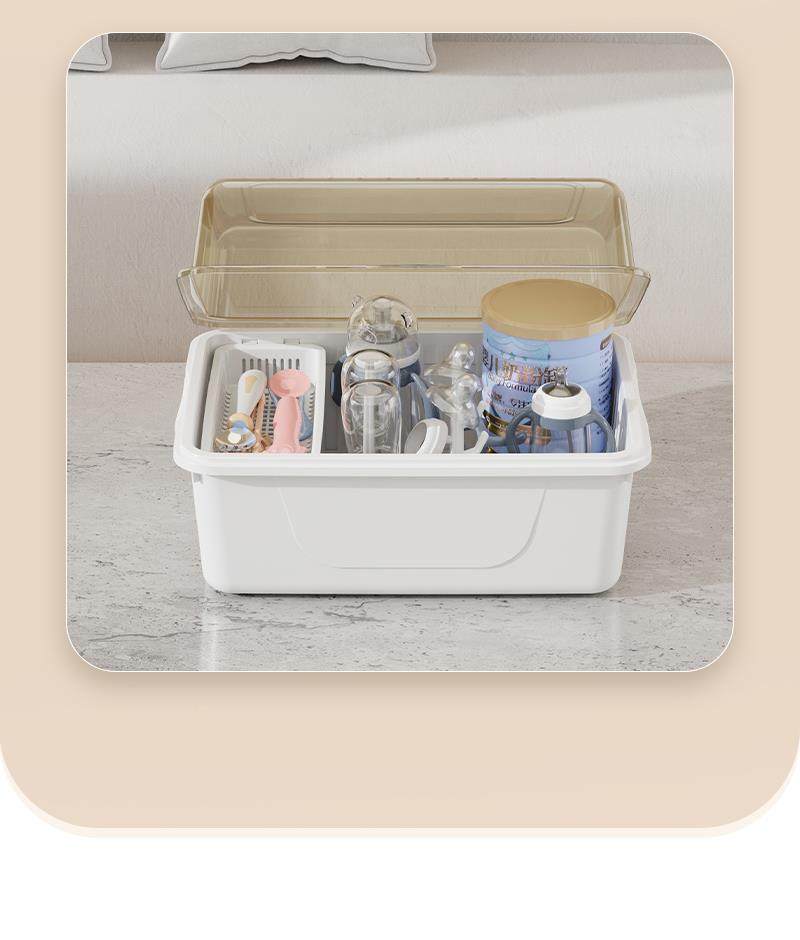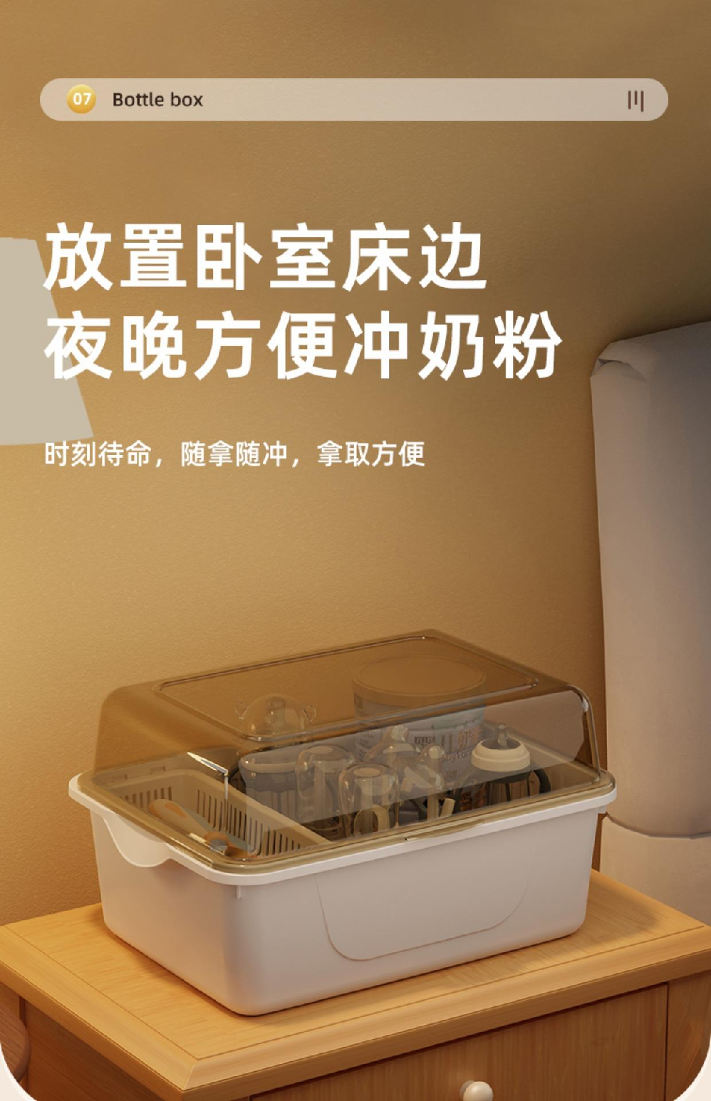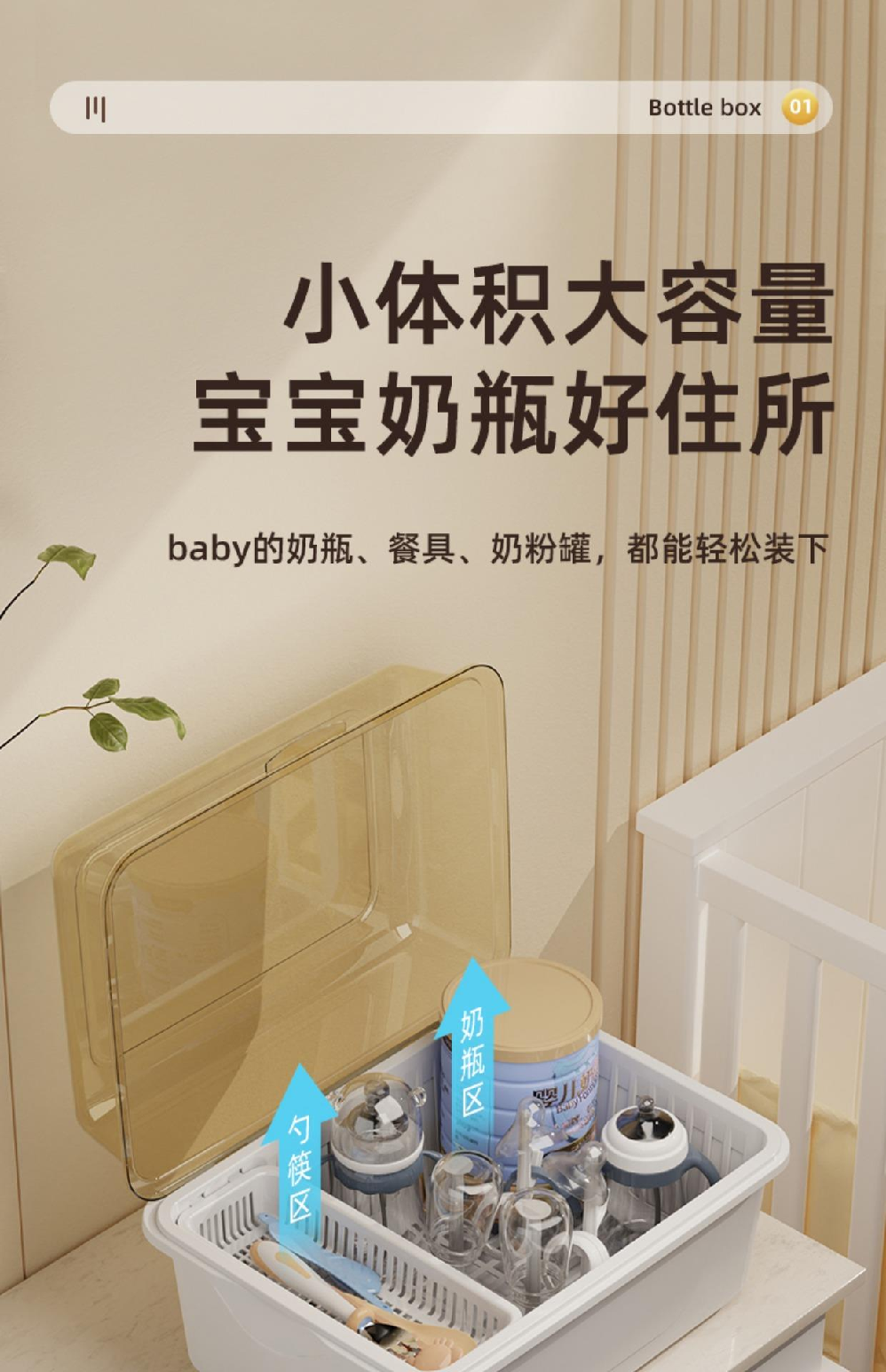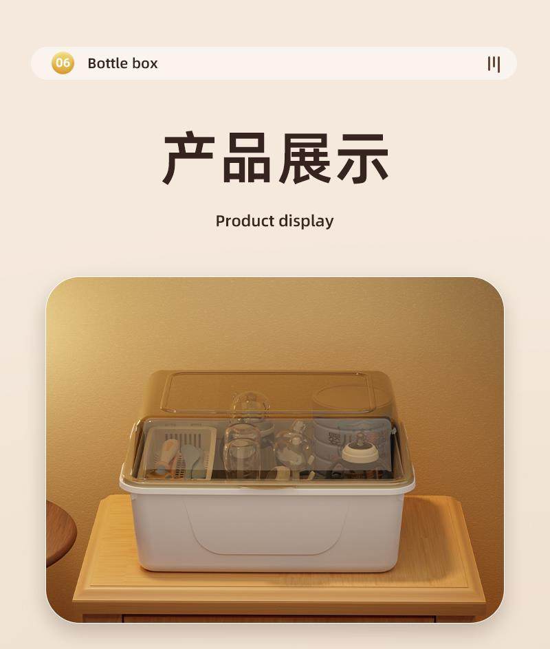 Baby Bottle Storage Box, Drying Rack with Lid, Dustproof, Baby Food Supplement Tableware Tool Storage Box Cabinet