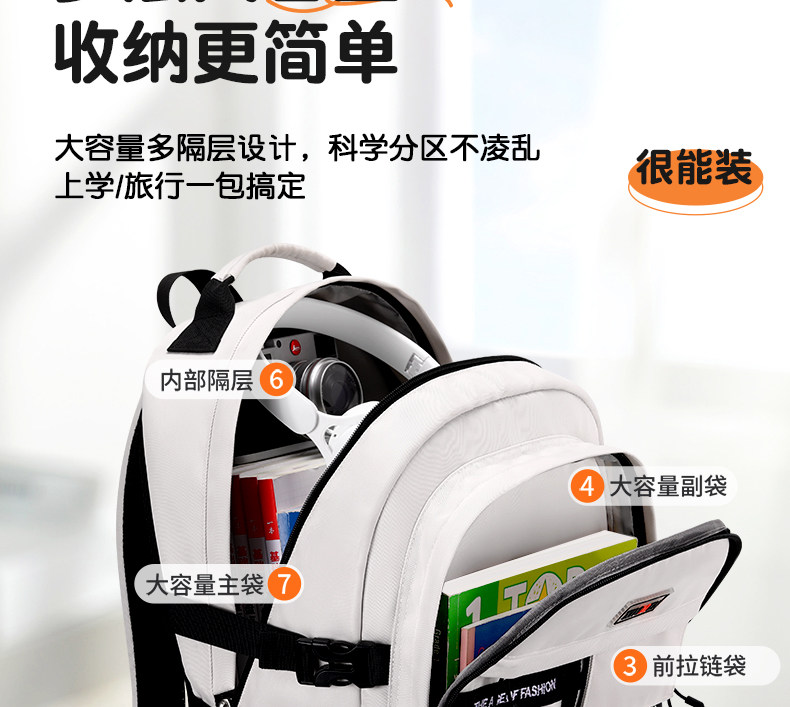 2025 New Large-Capacity Backpack for Boys, Suitable for Junior High School and High School Students, Weight-Reducing and Spine-Protecting, Male and Female Student Backpack