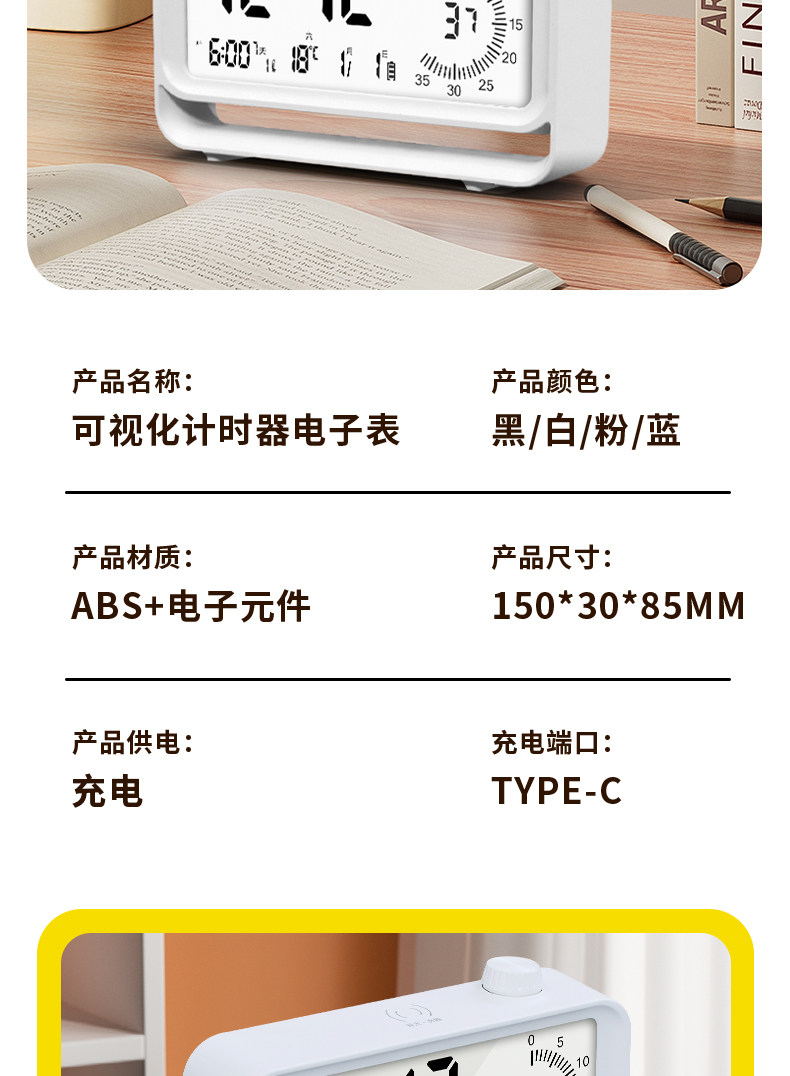 | Color Classification | Charging Life - White [Visual Timing, Alarm Clock Function],Charging Life - Black [Visual Timing, Alarm Clock Function],Charging Life-Blue [Visual Timing, Alarm Clock Function],Charging Life-Pink [Visual Timing, Alarm Clock Function],White Model [Visual Knob Timing and Charging Alarm Clock],Blue Model [Visual Knob Timing Charging Alarm Clock],Pink Model [Visual Knob Timing and Charging Alarm Clock],Black Model [Visual Knob Timing and Charging Alarm Clock] |