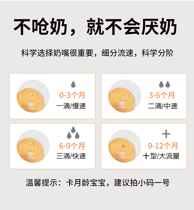 | Color Classification | [Special for Weaning]1 Drop S Size Eccentric Nipple (0-3 Months),[Special for Weaning]2 Drops of Size m Eccentric Nipple (3-6 Months),[Special for Weaning]3 Drops L Size Eccentric Nipple (6-9 Months),[Special for Weaning]Cross Hole Eccentric Nipple (9-12 Months) |