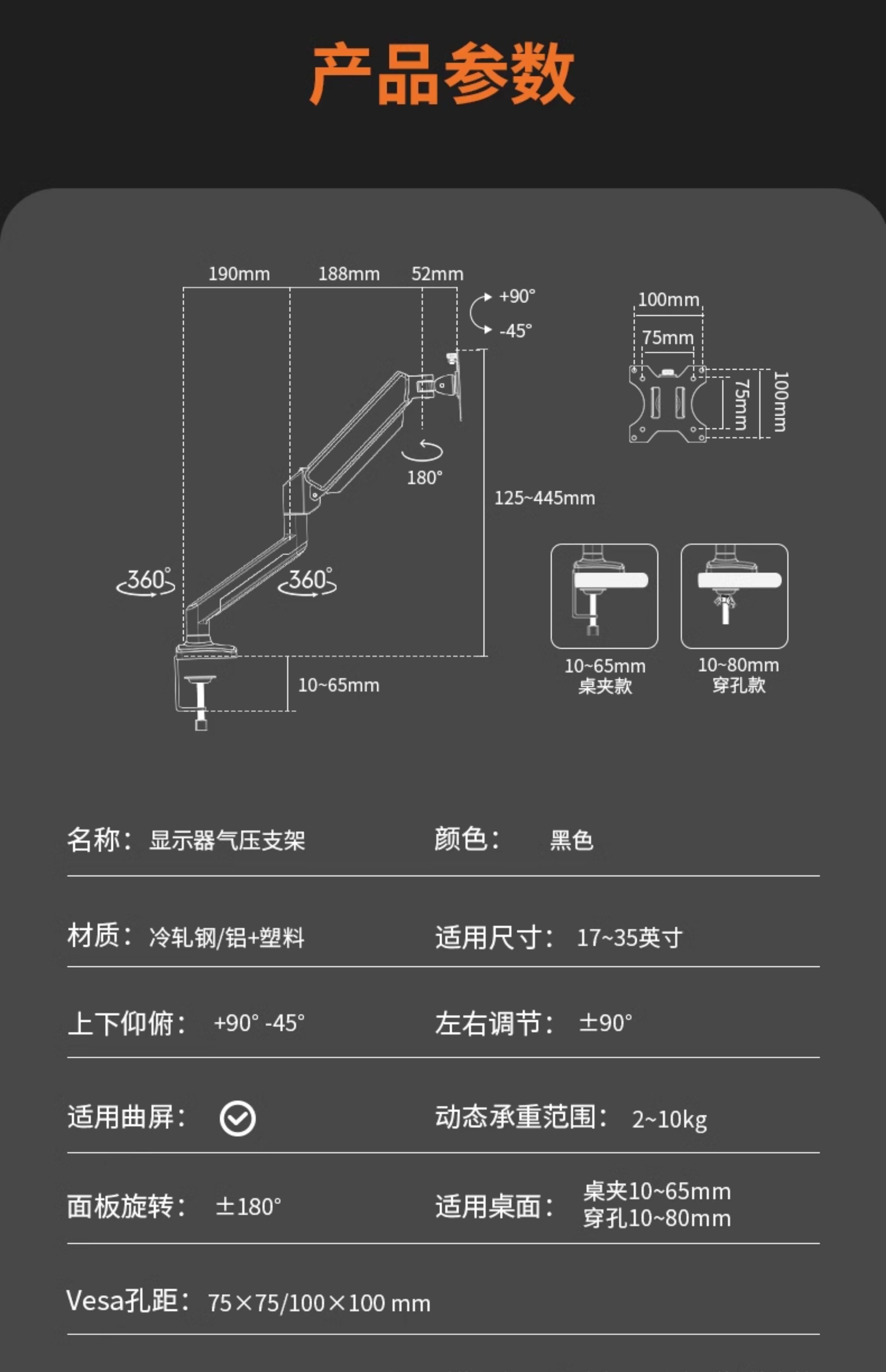 | Color Classification | ăBasic BlackăPneumatic Height Adjustable Stand|17-32inch Adaptation|Clamping Perforation Installation,ăBasic WhiteăPneumatic Height Adjustable Stand|17-32inch Adaptation|Clamping Perforation Installation,[Upgraded Model] Pneumatic Lifting Bracket|17-34inch Adaptation|Optimized Material and Strengthened Load-Bearing Capacity.,ăDesktop ProfessionalăPneumatic Height Adjustable Stand|17-32inch Adaptation|Column Heightening,ăDesktop InvertedăPneumatic Height Adjustable Stand | 17-32inch Adaptation | Column Heightening,ăDual-Screen Left & RightăPneumatic Height Adjustable Stand|17-32inch Adaptation|Clamping Perforation Installation,[Colorful Red] 17-32inch Cantilever Bracket,[Colorful Yellow] 17-32inch Cantilever Bracket,[Colorful Green] 17-32inch Cantilever Bracket,[Colorful Orange] 17-32inch Cantilever Bracket |