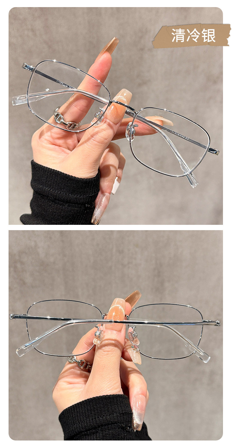 Ultra-Light Titanium Frame Silver Square Glasses for Nearsighted Men, Customizable Prescription, Designer Style, Narrow Frame Eyeglasses
