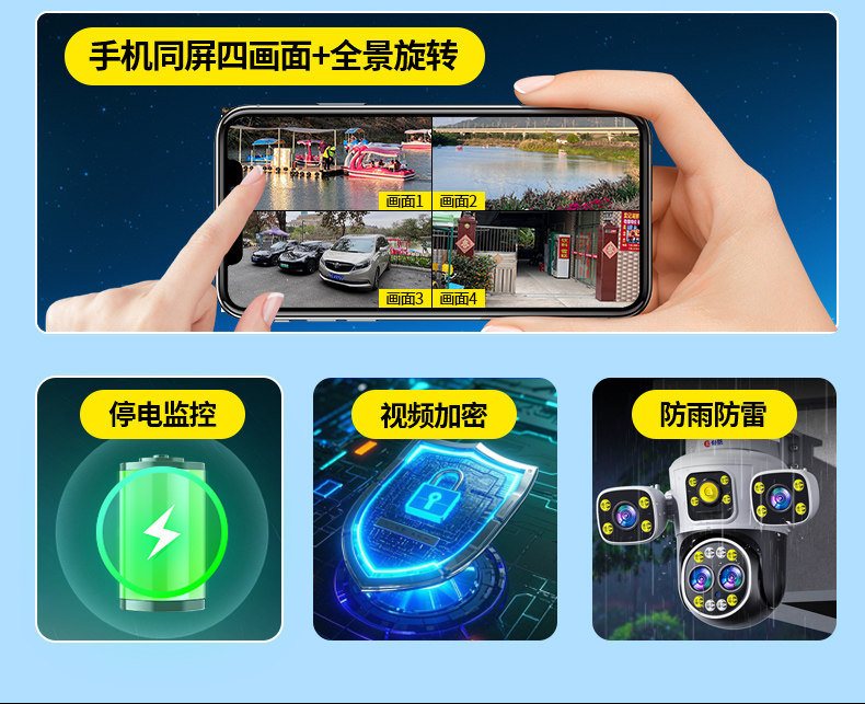| Color Classification | Wifi Ultra-Clear-Rotatable Three Lenses-Three Screens,Wifi Ultra Hd - (Ai Smart) Rotatable Triple Lens - Three-Screen View,Ultra Hd Wifi - (Ai Smart) Rotatable Triple Lens - Three-Screen View + Power Outage Monitoring,Ultra Hd Wifi - (Ai Smart + 10X Zoom) Rotatable Quad Lens - Four-View,Ultra Hd Wifi - (Ai Smart + 10X Zoom) Rotatable Quad Lens - Quad Screen View + Power Outage Monitoring,4g Ultra Hd - Includes 99 Years of Data - (Ai Smart) Rotatable Triple Lens - Three-Screen View,4g Ultra Hd - Includes 99 Years of Data - (Ai Smart) Rotatable Triple Lens - Three-Screen View + Power Outage Monitoring |