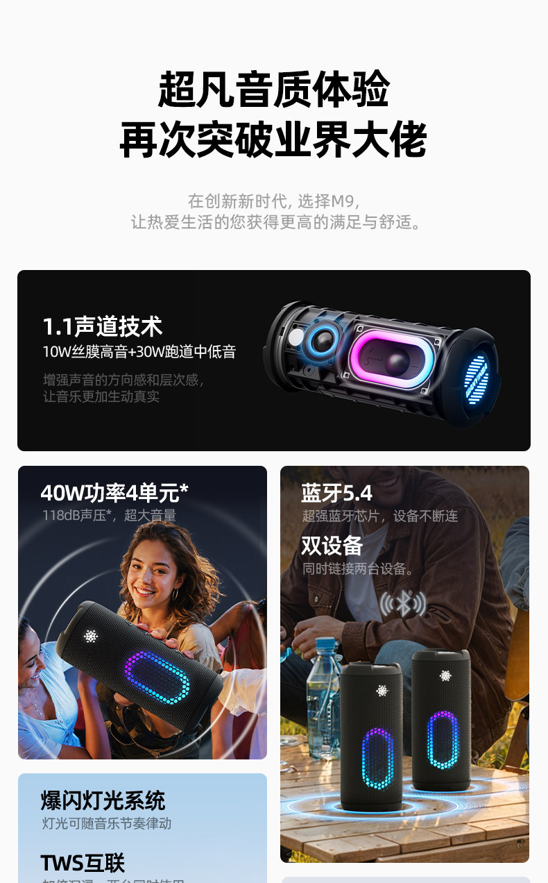 Wanyinba M9 Bluetooth Audio 40W High Volume Subwoofer Outdoor Portable Car 2025 New Speaker