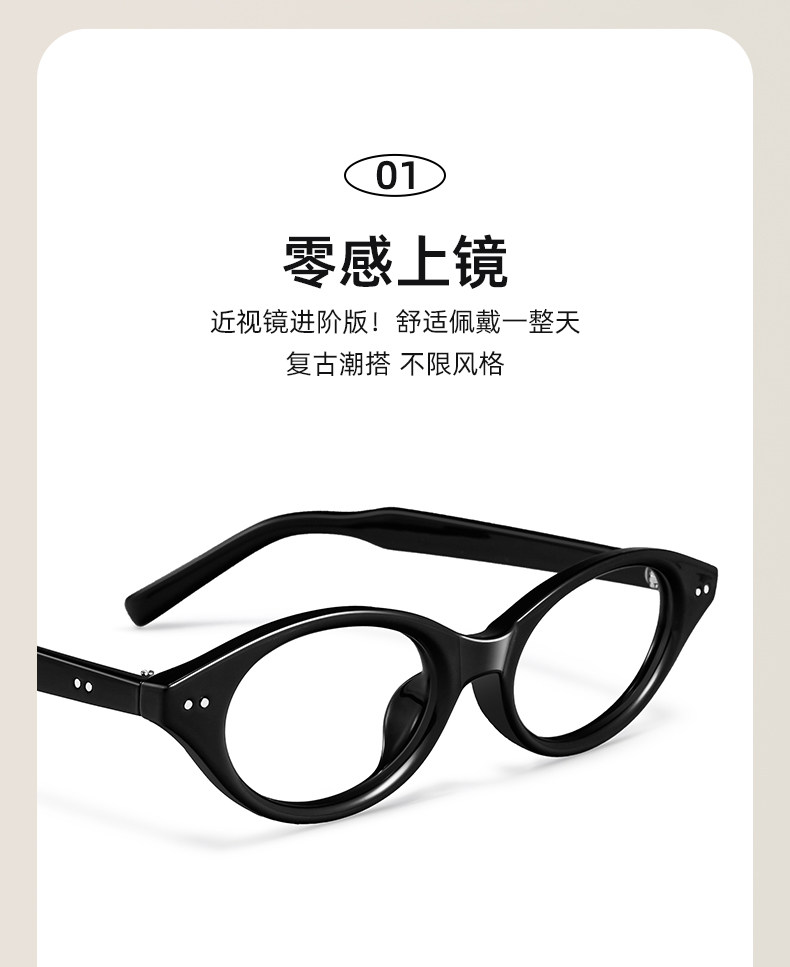 Gm Nerd-Style Oval Small Frame Glasses for Nearsightedness, Customizable Prescription, Women's Model, Natural Look, Slimming, Black Frame, Non-Prescription, Blue Light Blocking Frame