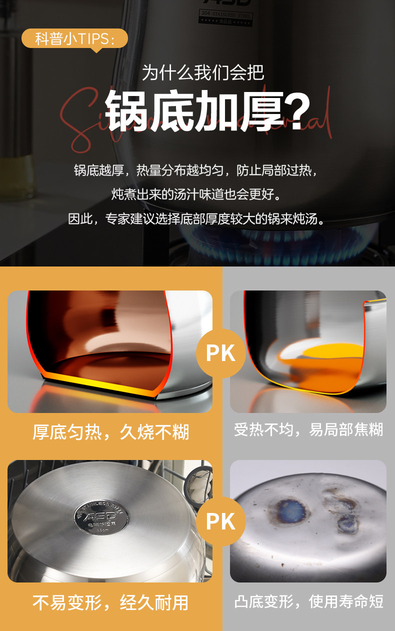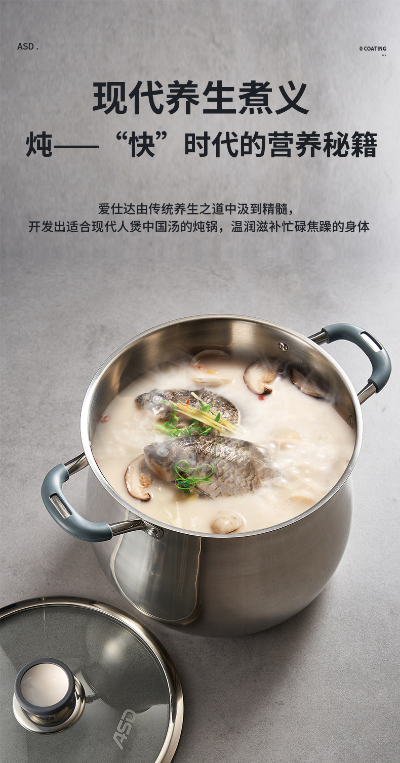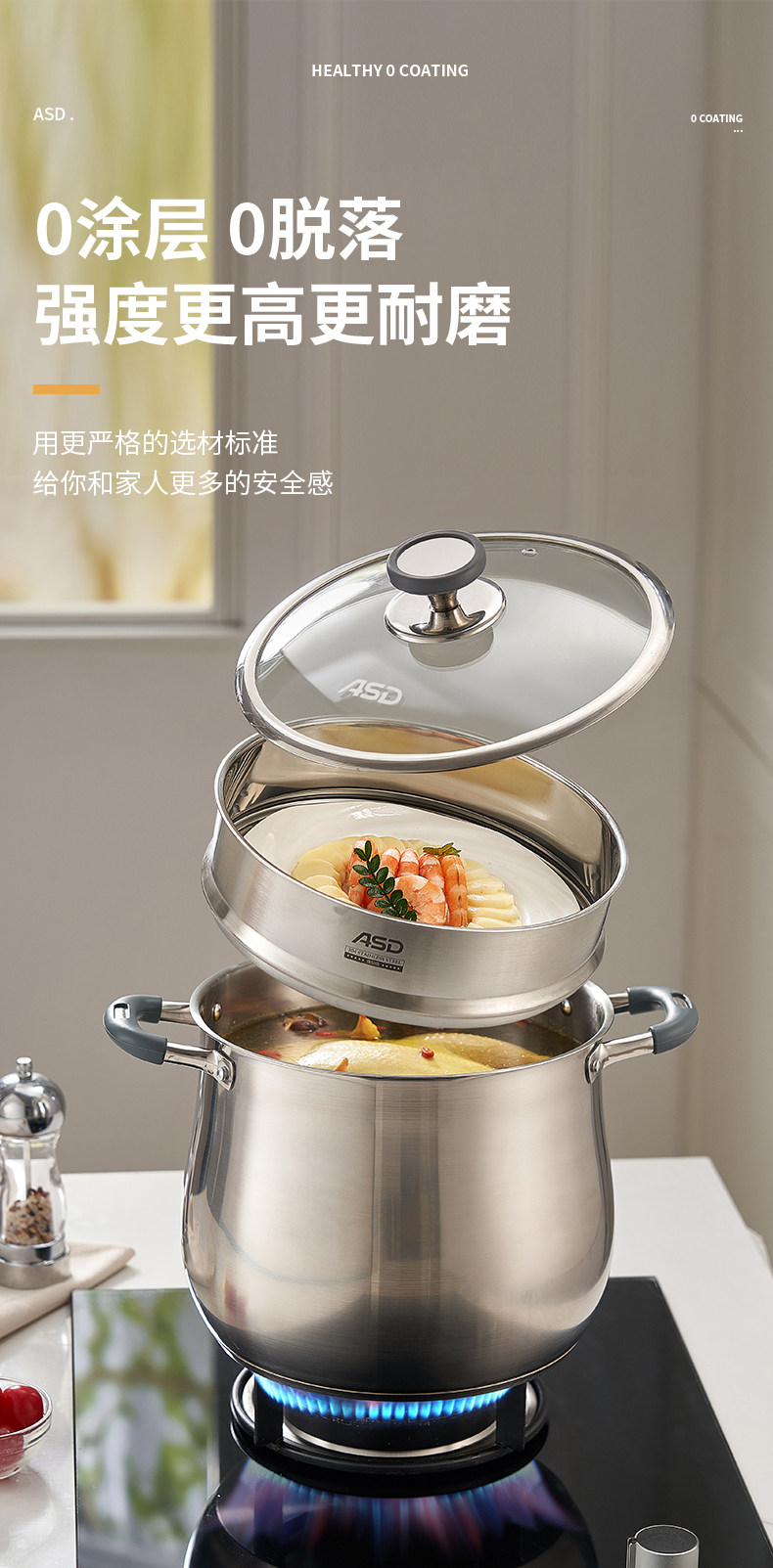 Aistar Soup Pot 304 Stainless Steel Thickened Large Capacity Household Soup Steaming and Stewing Pot Double-Handle Soup Bucket Induction Cooker