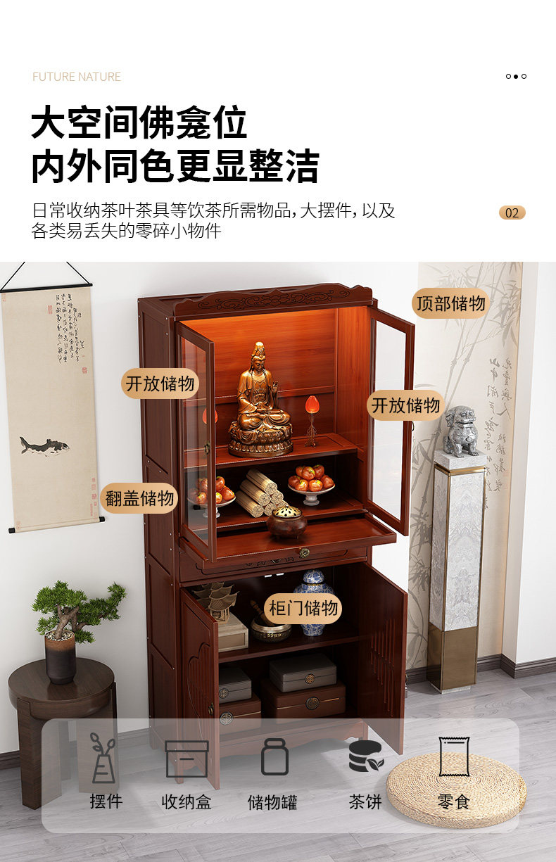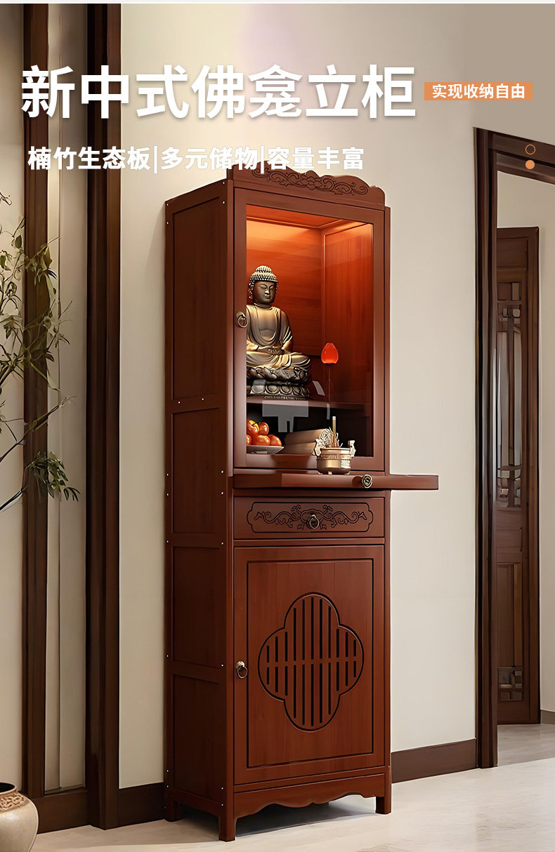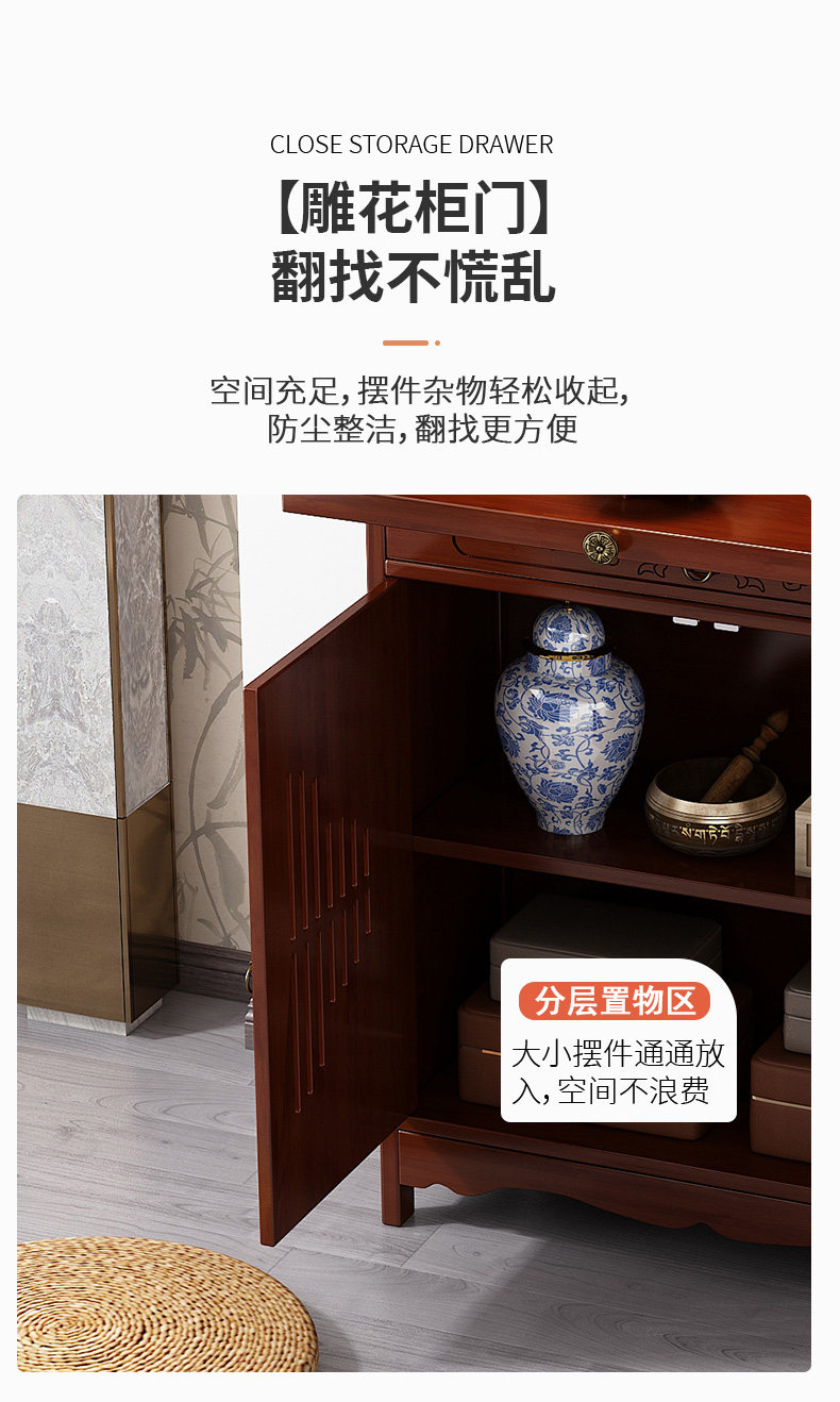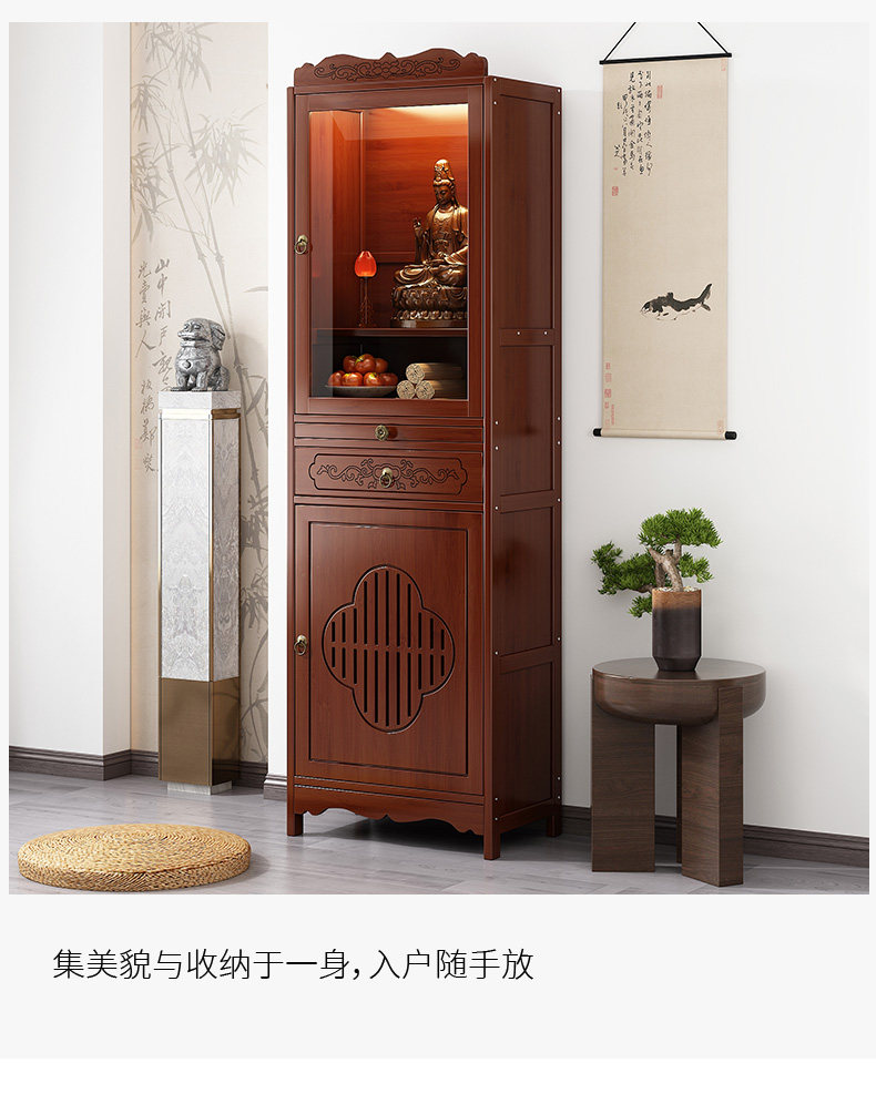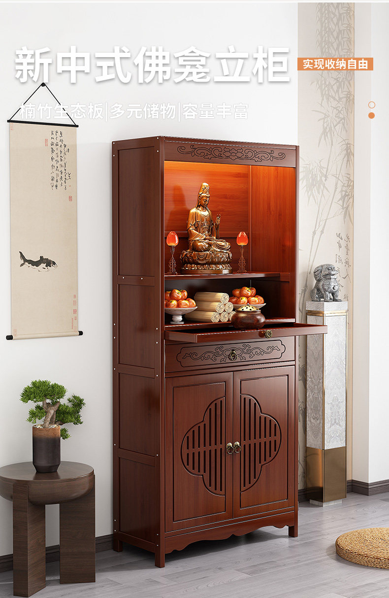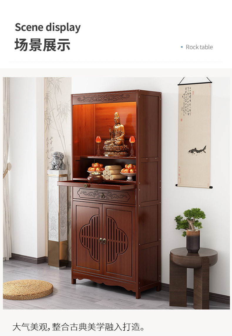 New Chinese-Style Standing Cabinet for Worshiping Buddha, God of Wealth, Incense Table, Non-Solid Wood Rural Hall House Guanyin Buddha Statue Worship Stand