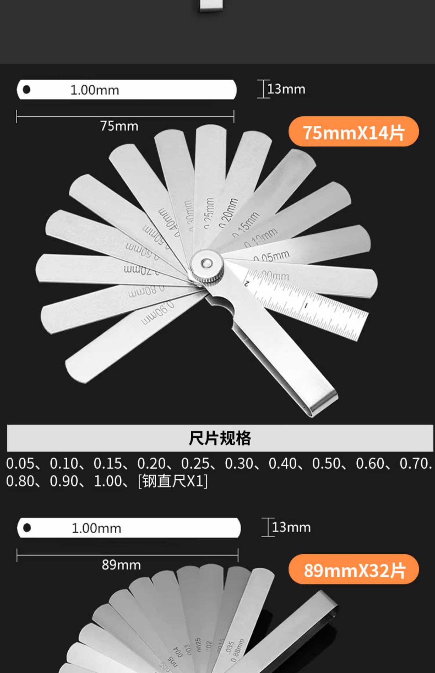 | Color Classification | 75mm*14 Pieces (0.05-1.0mm),89mm*32 Pieces (0.02-1.0),89mm*32 Pieces (0.04-0.8mm),100mm*13 Pieces (0.05-1.0mm),100mm*14 Pieces (0.05-1.0mm),100mm*25 Pieces (0.04-1.0),100mm*20 Pieces (0.05-1.0mm),150mm*14 Pieces (0.05-1.0mm),150mm*17 Pieces (0.02-1.0mm),200mm*17 Pieces (0.02-1.0mm),300mm*17 Pieces (0.02-1.0mm) |