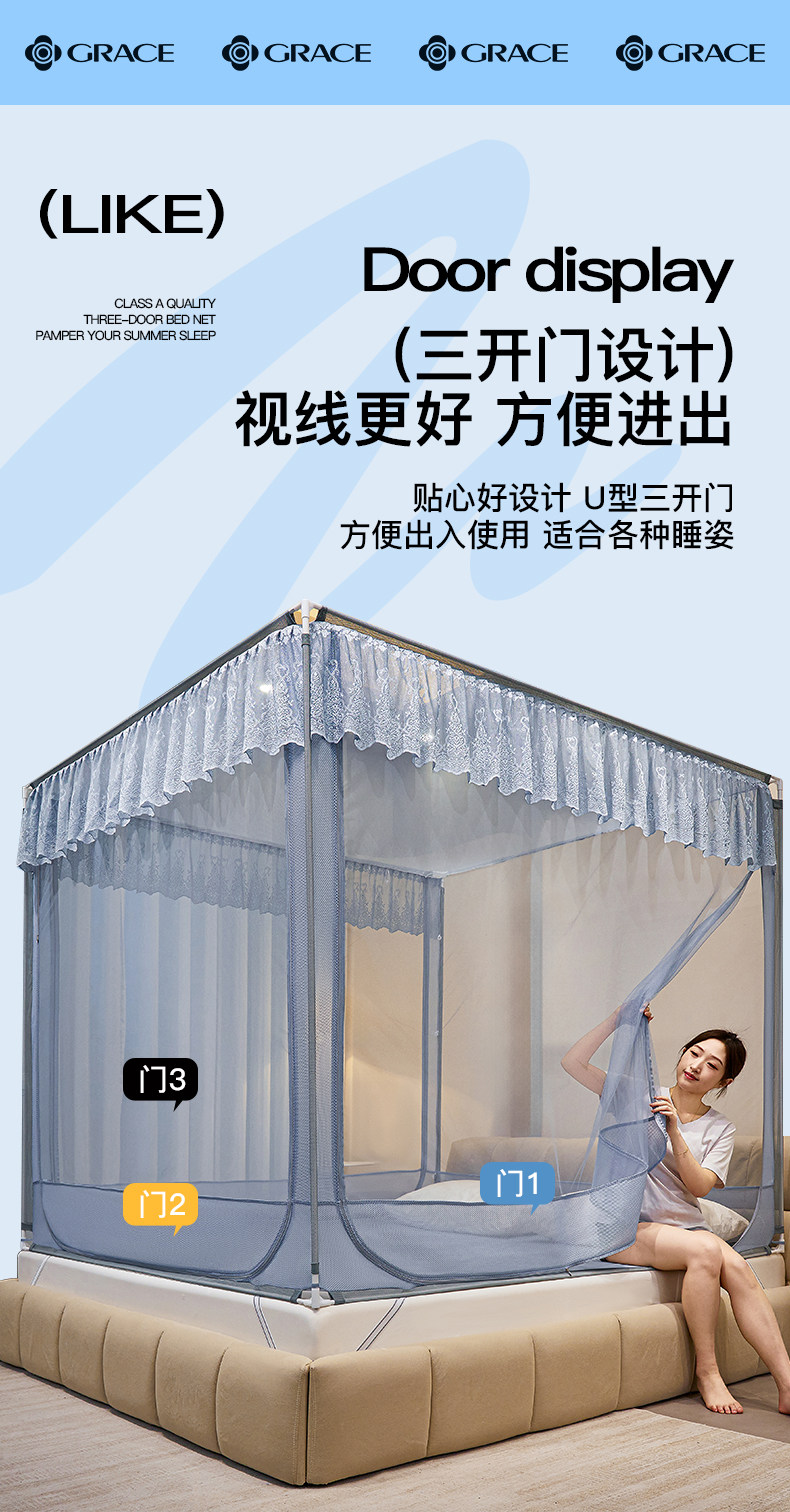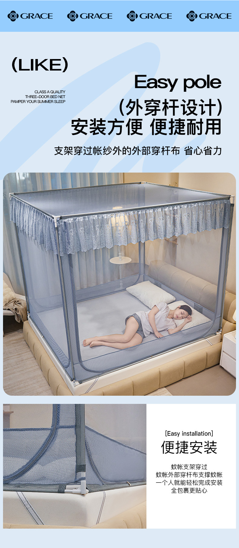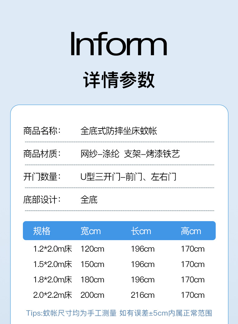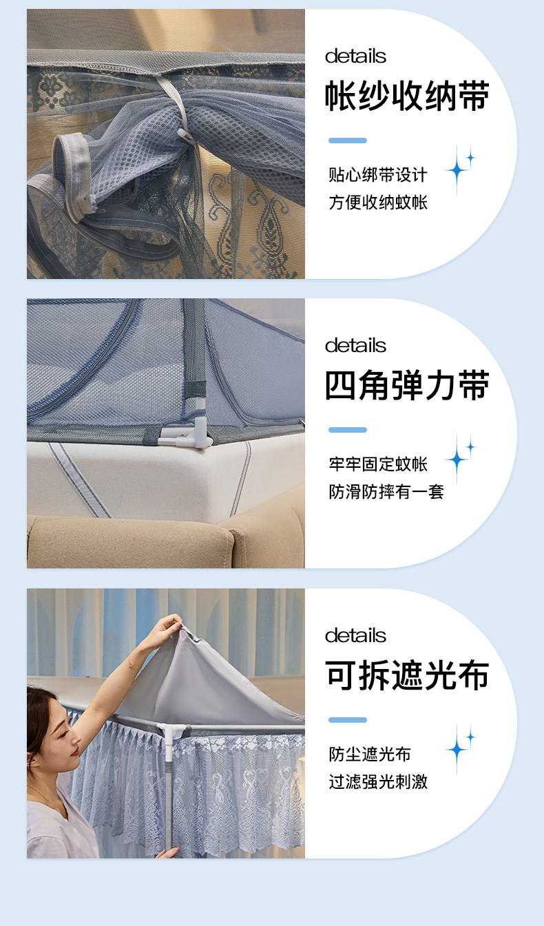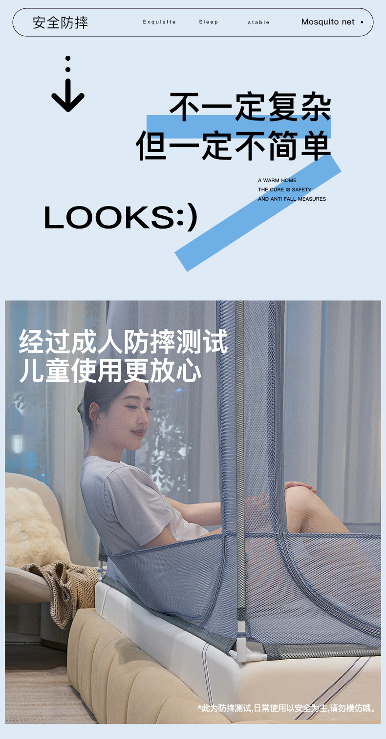 Jialiya Anti-Fall Mosquito Net for Home Bedroom 2025 New Model Full Coverage No Installation Full Bottom to Prevent Babies from Falling Out of Bed