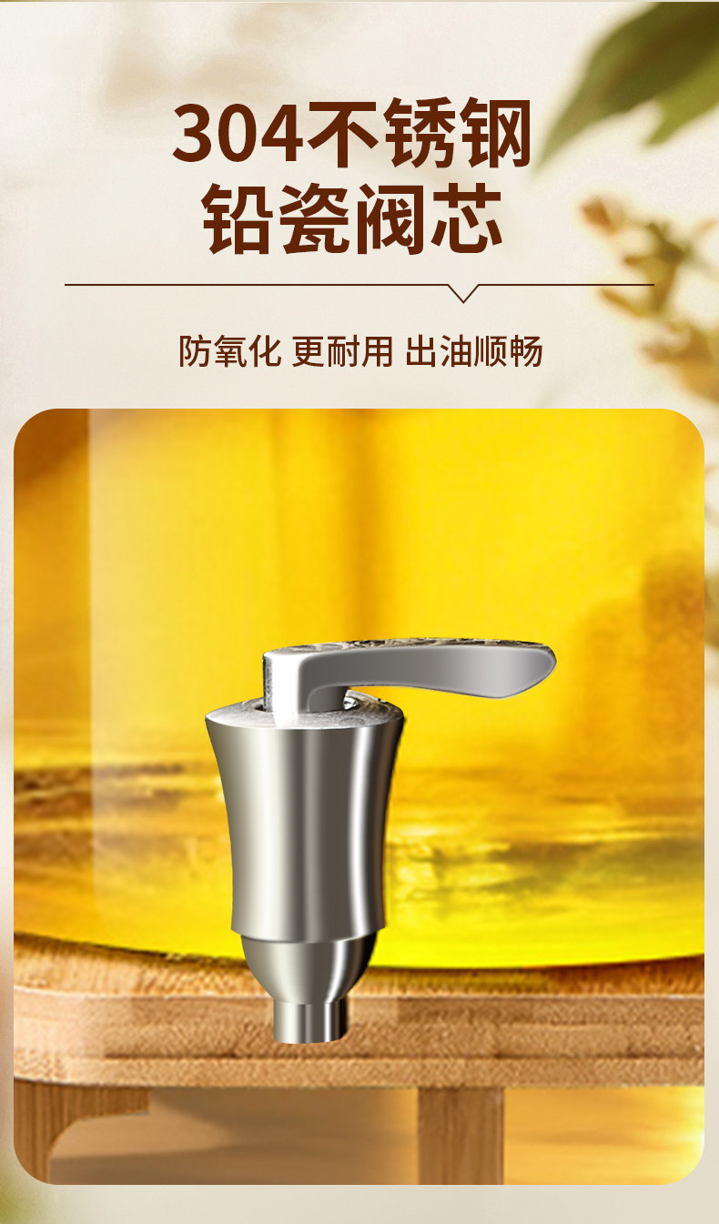 | Color Classification | [Heat-Resistant Glass] 2.5 Liters (Filled with about 2.3kg Oil) Without Faucet,[Heat-Resistant Glass] 2.5 Liters (Filled with about 2.3kg Oil) with Ceramic Core Faucet,【Heat-Resistant Glass】2.5 Liter (Holds Approximately 2.3kg of Oil) with Ceramic Core Faucet + Bamboo Stand,【Heat-Resistant Glass】5 Liter (Holds Approximately 4.6kg of Oil) - No Spigot,[Heat-Resistant Glass] 5 Liters (Filled with about 4.6kg Oil) with Ceramic Core Faucet,【Heat-Resistant Glass】5 Liter (Holds Approximately 4.6kg of Oil) with Ceramic Core Faucet + Bamboo Stand,[Heat-Resistant Glass] 7.5 Liters (Filled with about 6.9kg Oil) Without Faucet,[Heat-Resistant Glass] 7.5 Liters (Filled with about 6.9kg Oil) with Ceramic Core Faucet,【Heat-Resistant Glass】7.5 Liter (Holds Approximately 6.9kg of Oil) with Ceramic Core Faucet + Bamboo Stand,[Heat-Resistant Glass] 10 Liters (Filled with about 9.2kg Oil) Without Faucet,[Heat-Resistant Glass] 10 Liters (Filled with about 9.2kg Oil) with Ceramic Core Faucet,【Heat-Resistant Glass】10 Liter (Holds Approximately 9.2kg of Oil) with Ceramic Core Faucet + Bamboo Stand,[Heat-Resistant Glass] 15 Liters (Filled with about 13.8kg Oil) Without Faucet,[Heat-Resistant Glass] 15 Liters (Filled with about 13.8kg Oil) with Ceramic Core Faucet,【Heat-Resistant Glass】15 Liter (Holds Approximately 13.8kg of Oil) with Ceramic Core Faucet + Bamboo Stand,[Heat-Resistant Glass] 20 Liters (Filled with about 18.4kg Oil) Without Faucet,[Heat-Resistant Glass] 20 Liters (Filled with about 18.4kg Oil) with Ceramic Core Faucet,【Heat-Resistant Glass】20 Liter (Holds Approximately 18.4kg of Oil) with Ceramic Core Faucet + Bamboo Stand |
