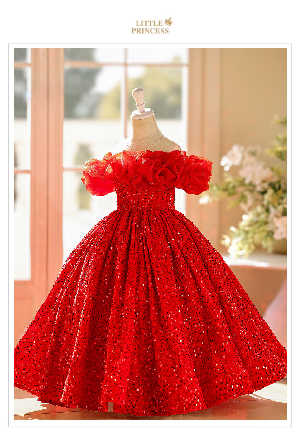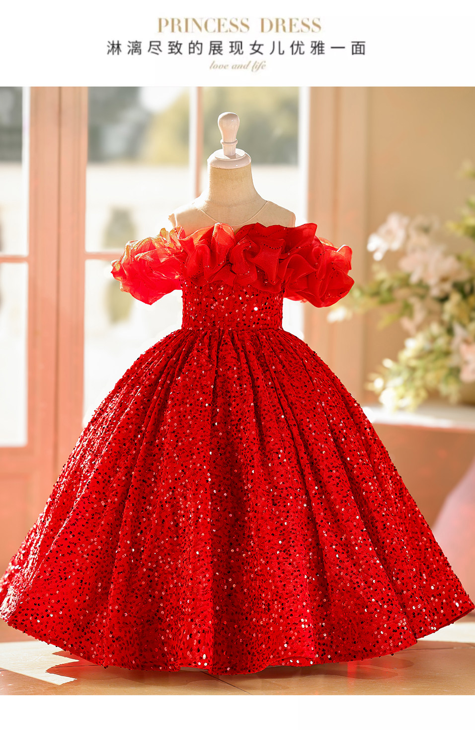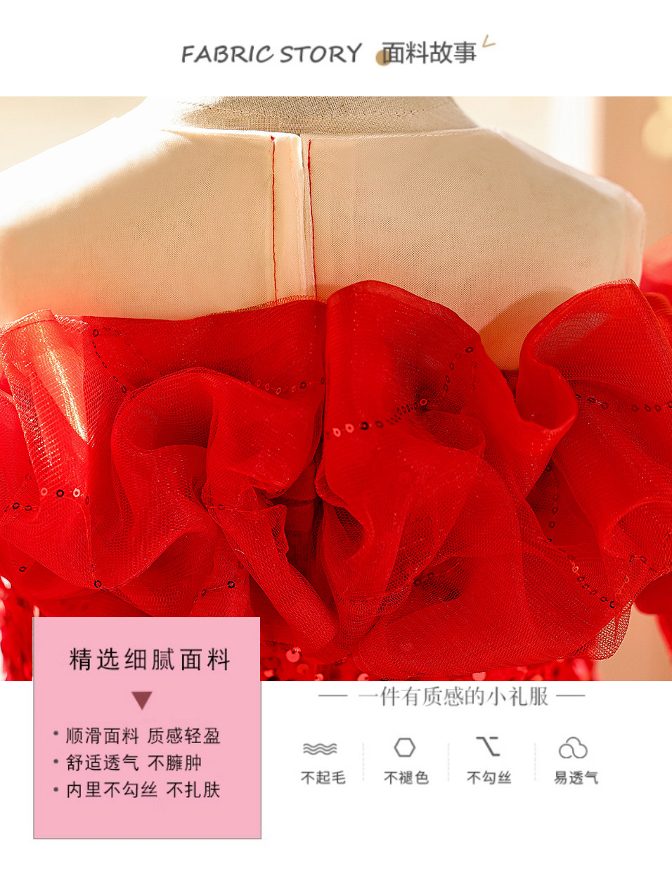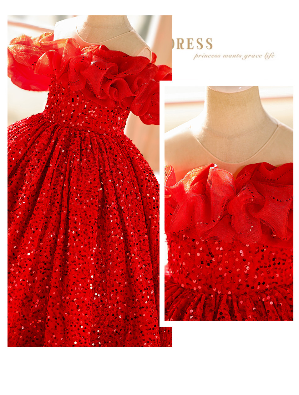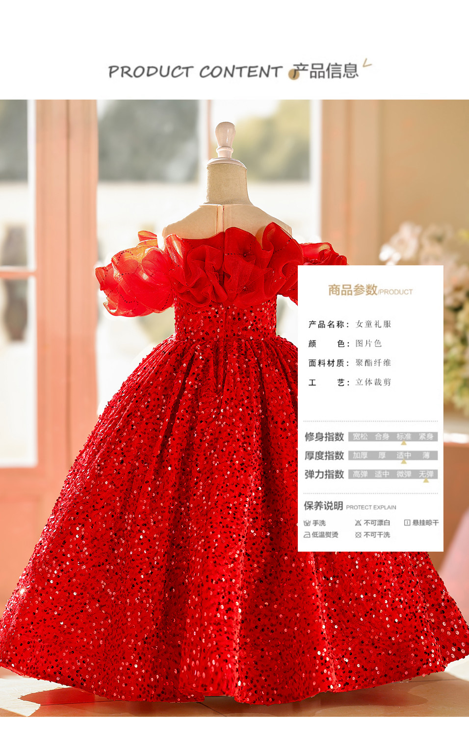 Girls' Dress, Princess Dress, Red Runway Show Host, Kidsren's Dress, Piano Performance Dress, Wedding Flower Girl Dress