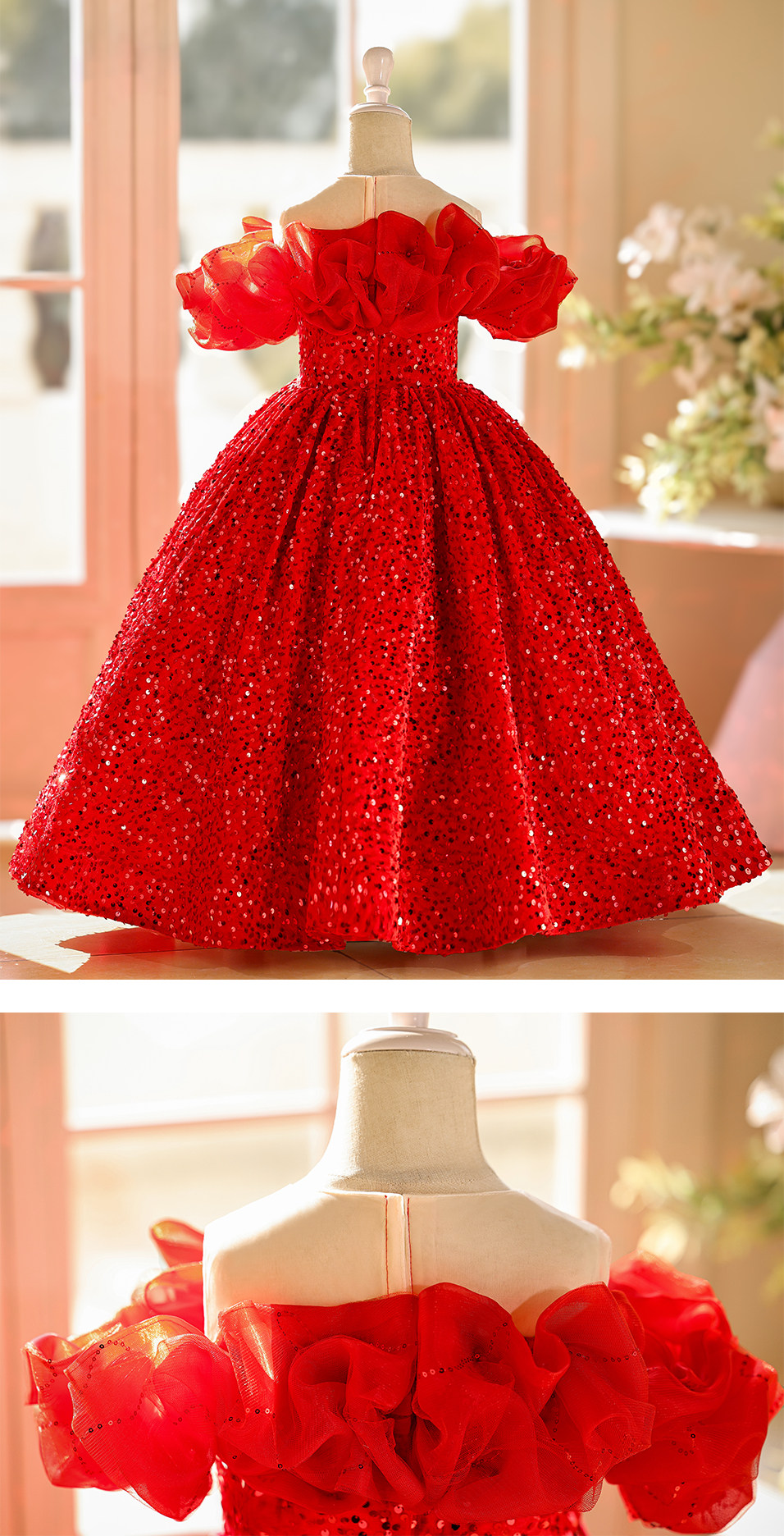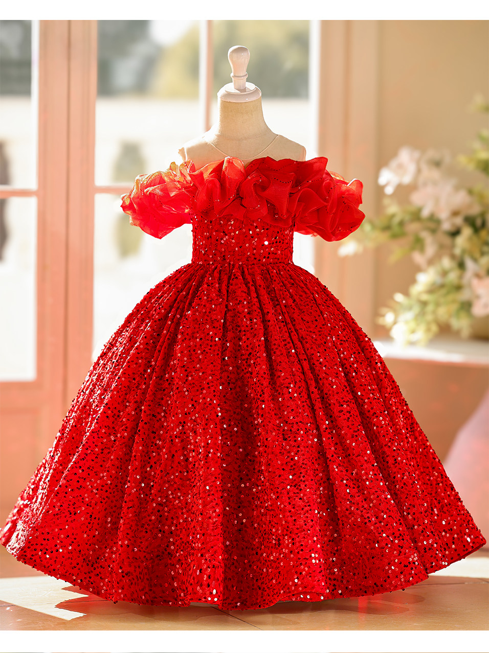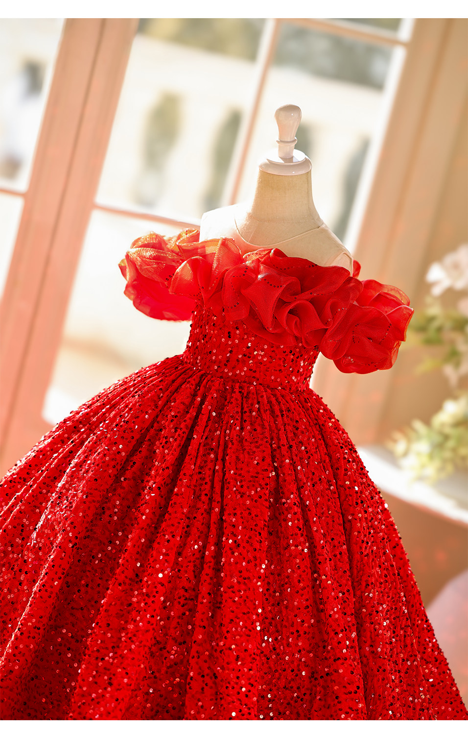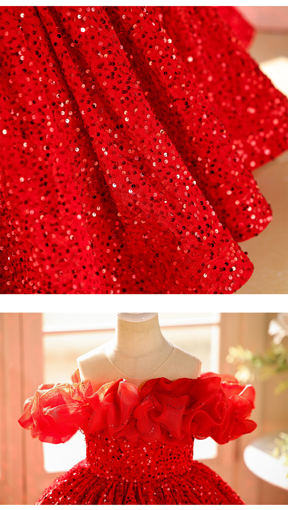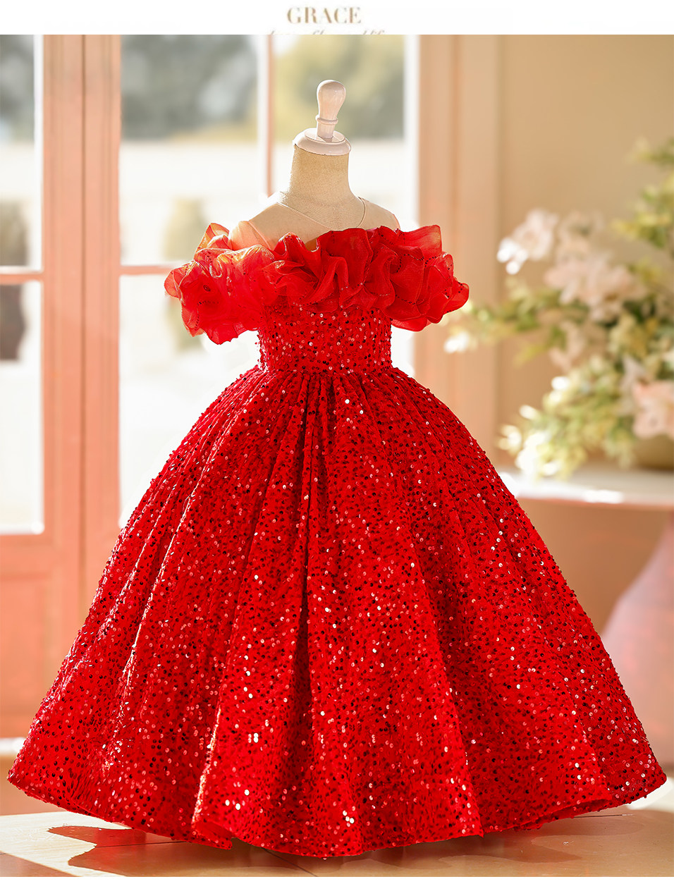 Girls' Dress, Princess Dress, Red Runway Show Host, Kidsren's Dress, Piano Performance Dress, Wedding Flower Girl Dress