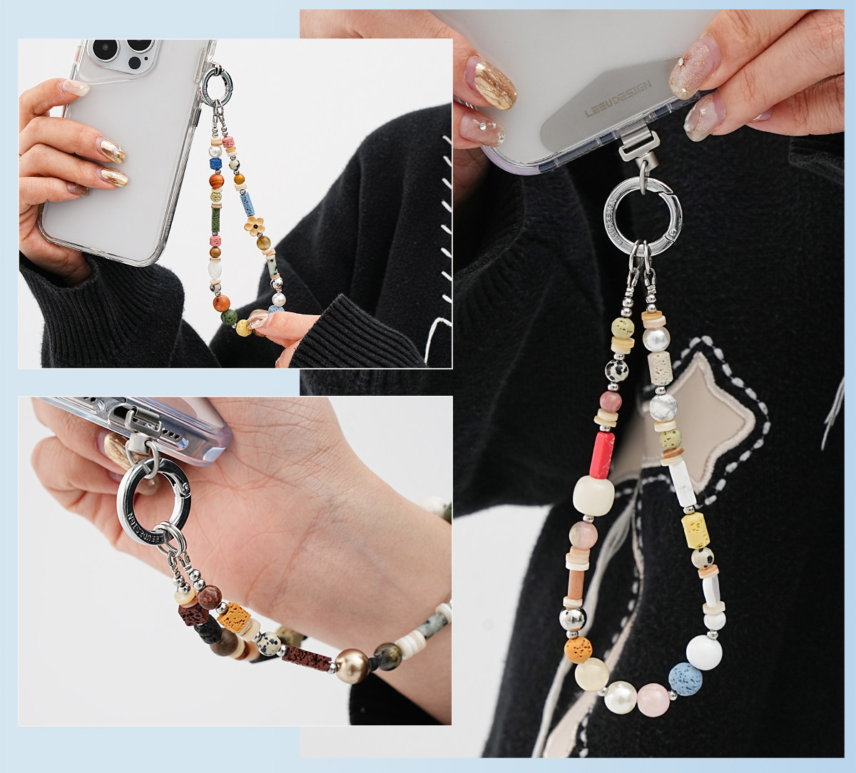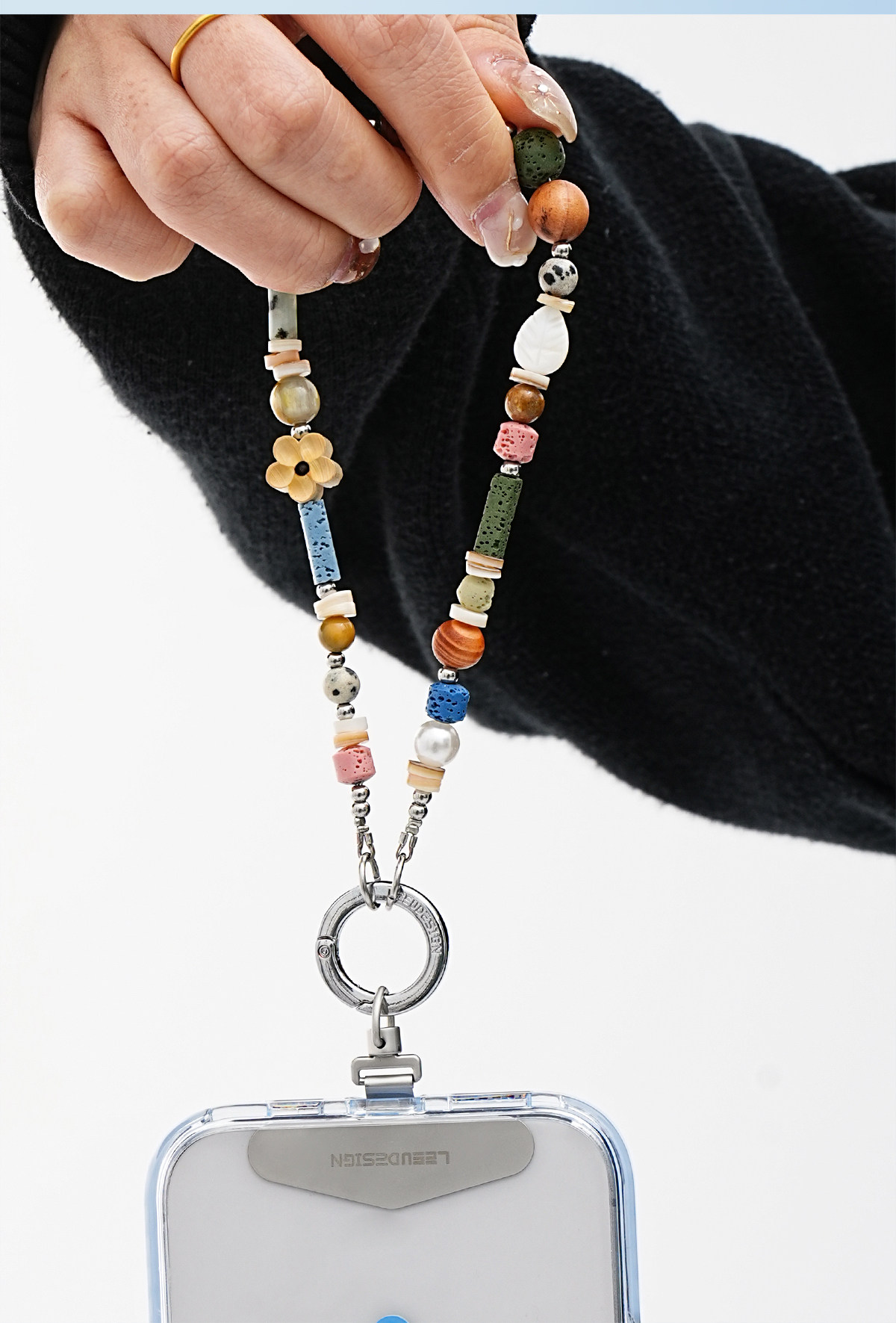Leeudesign Original Handmade Volcanic Stone Phone Chain, High Aesthetic Value, Elegant Wrist Short Strap, Anti-Drop Phone Lanyard, Ccd Niche Creative Hanging Chain Accessory