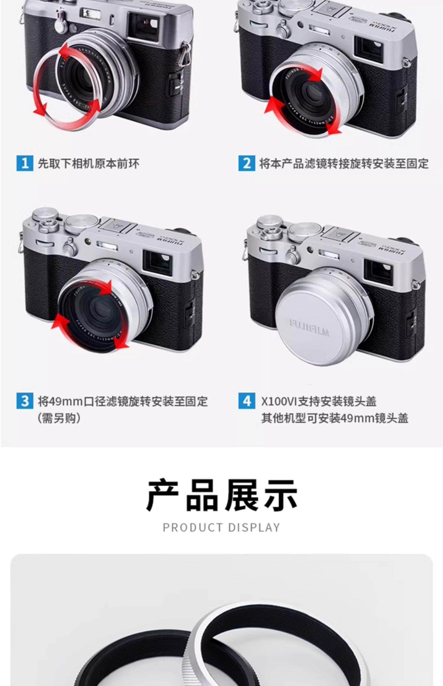 Suitable for Fuji X100Vi Filter Adapter Ring X100V X100F X100T X100S X100 X70, Can Be Adapted to 49mm Uv Filter, Camera Accessories, Supports Fuji Lens Cap