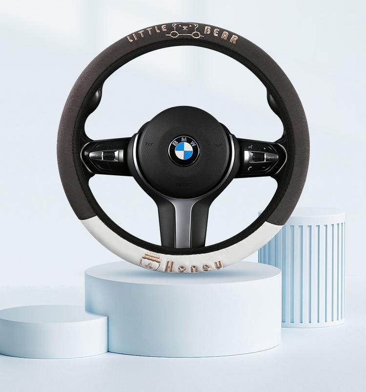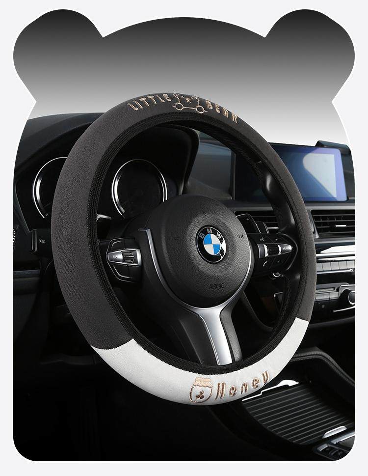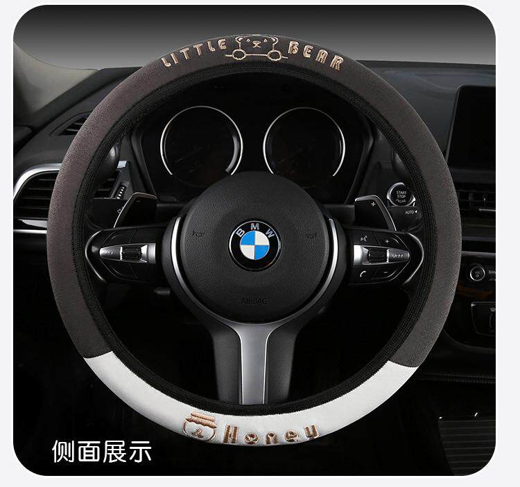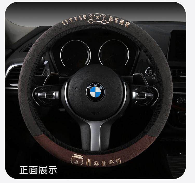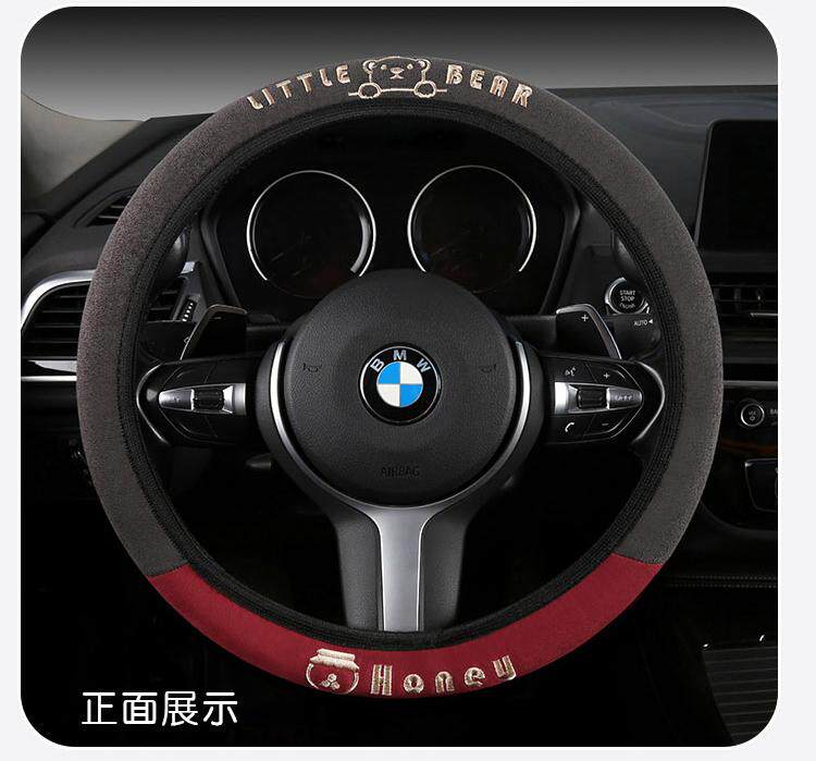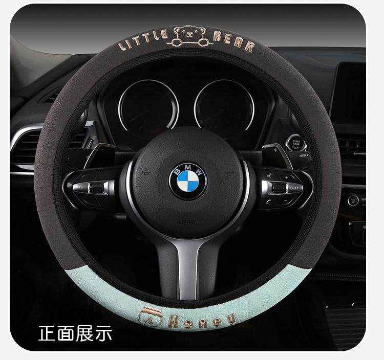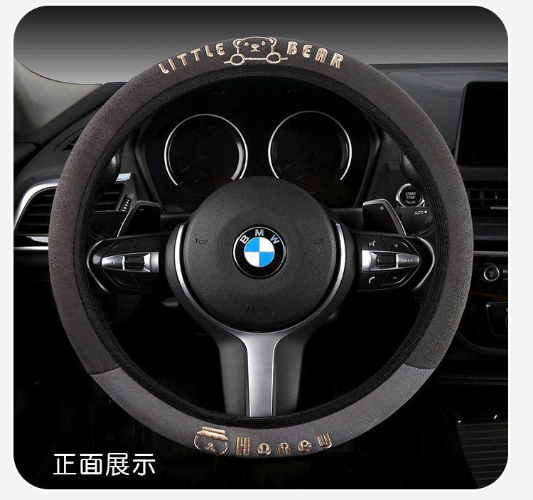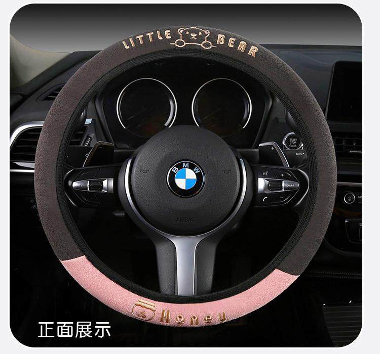 Embroidered Steering Wheel Cover, Cute, Sweat-Absorbent, Breathable, Non-Slip, Suede Elastic Stretch Handle Cover, Suitable for All Seasons