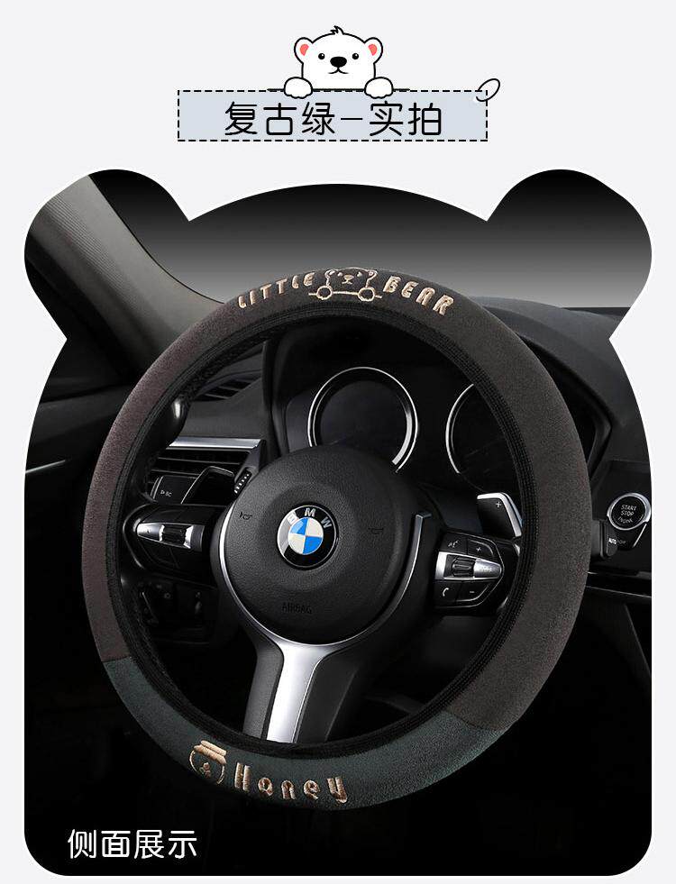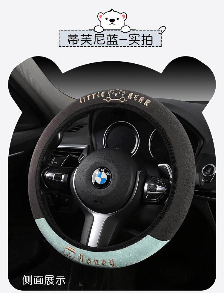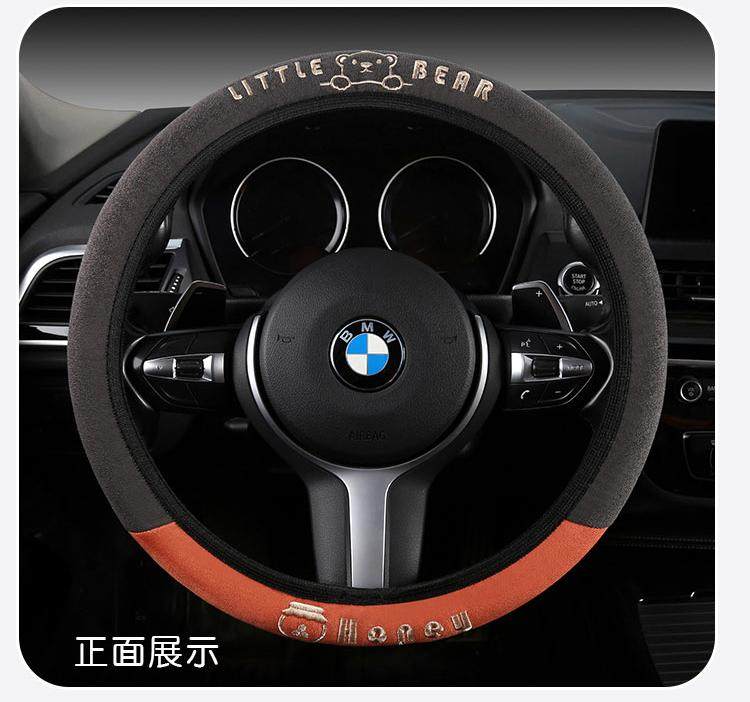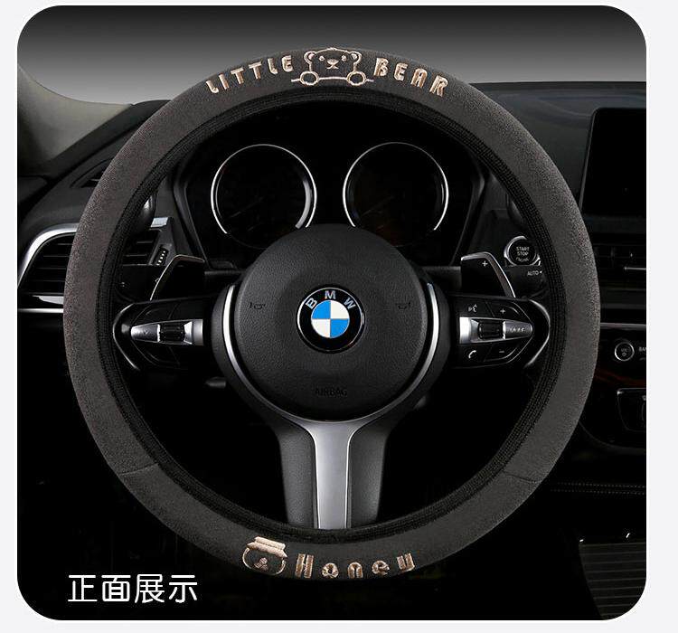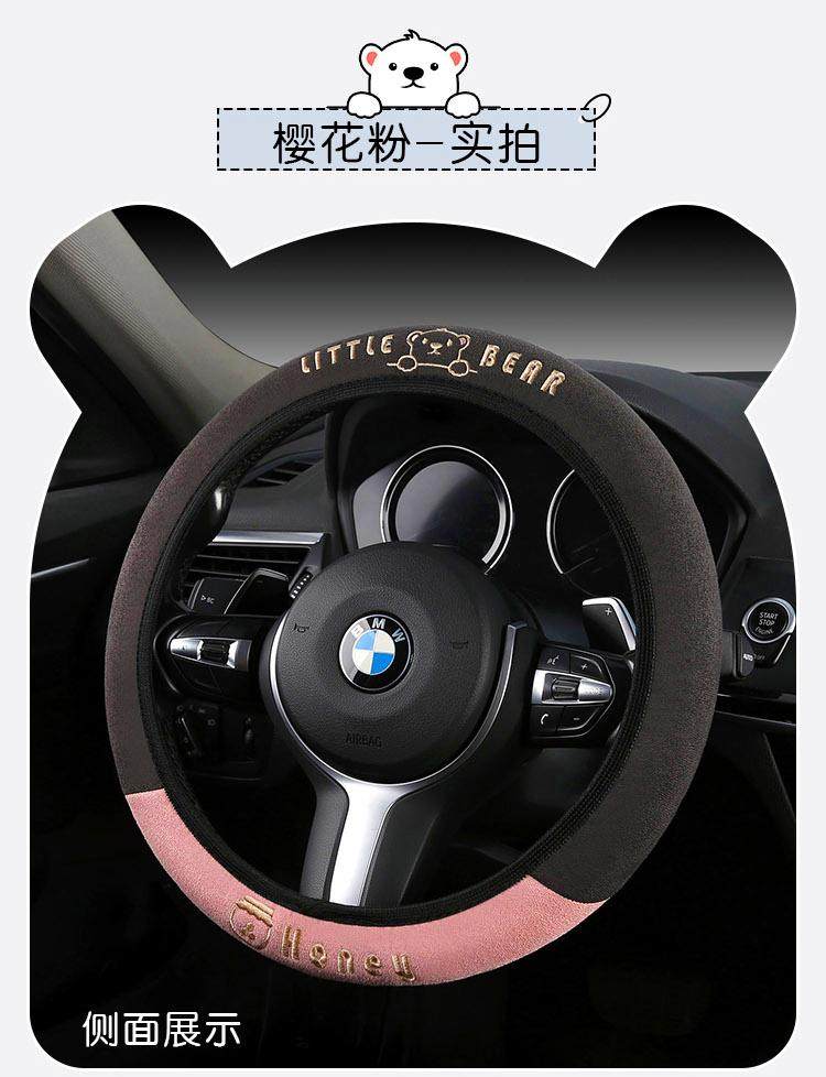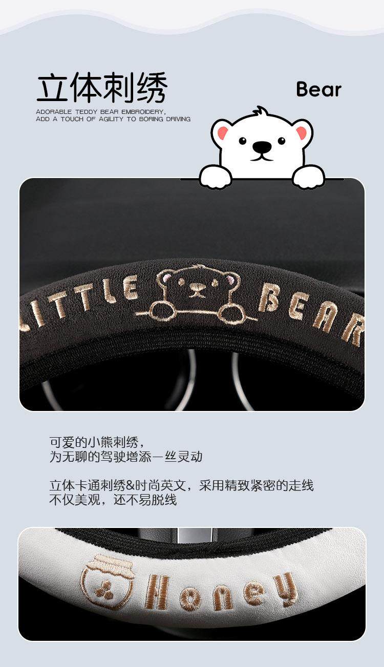 Embroidered Steering Wheel Cover, Cute, Sweat-Absorbent, Breathable, Non-Slip, Suede Elastic Stretch Handle Cover, Suitable for All Seasons
