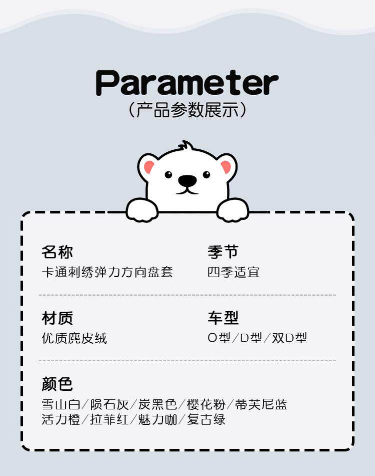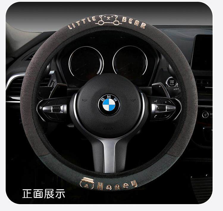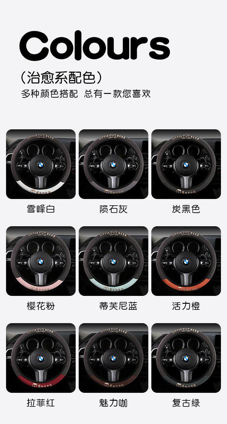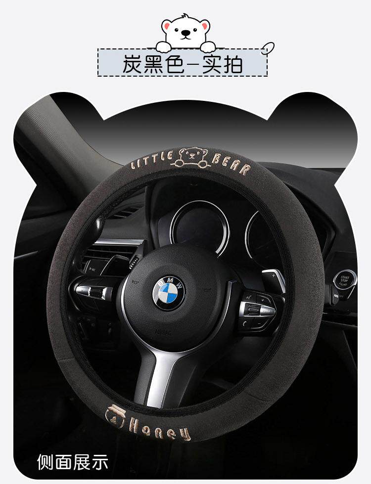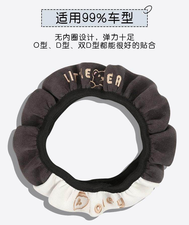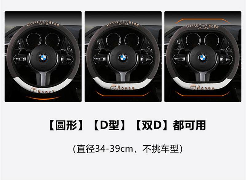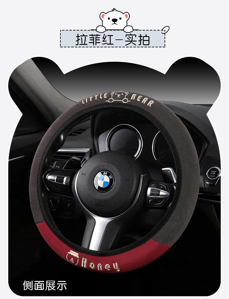 Embroidered Steering Wheel Cover, Cute, Sweat-Absorbent, Breathable, Non-Slip, Suede Elastic Stretch Handle Cover, Suitable for All Seasons
