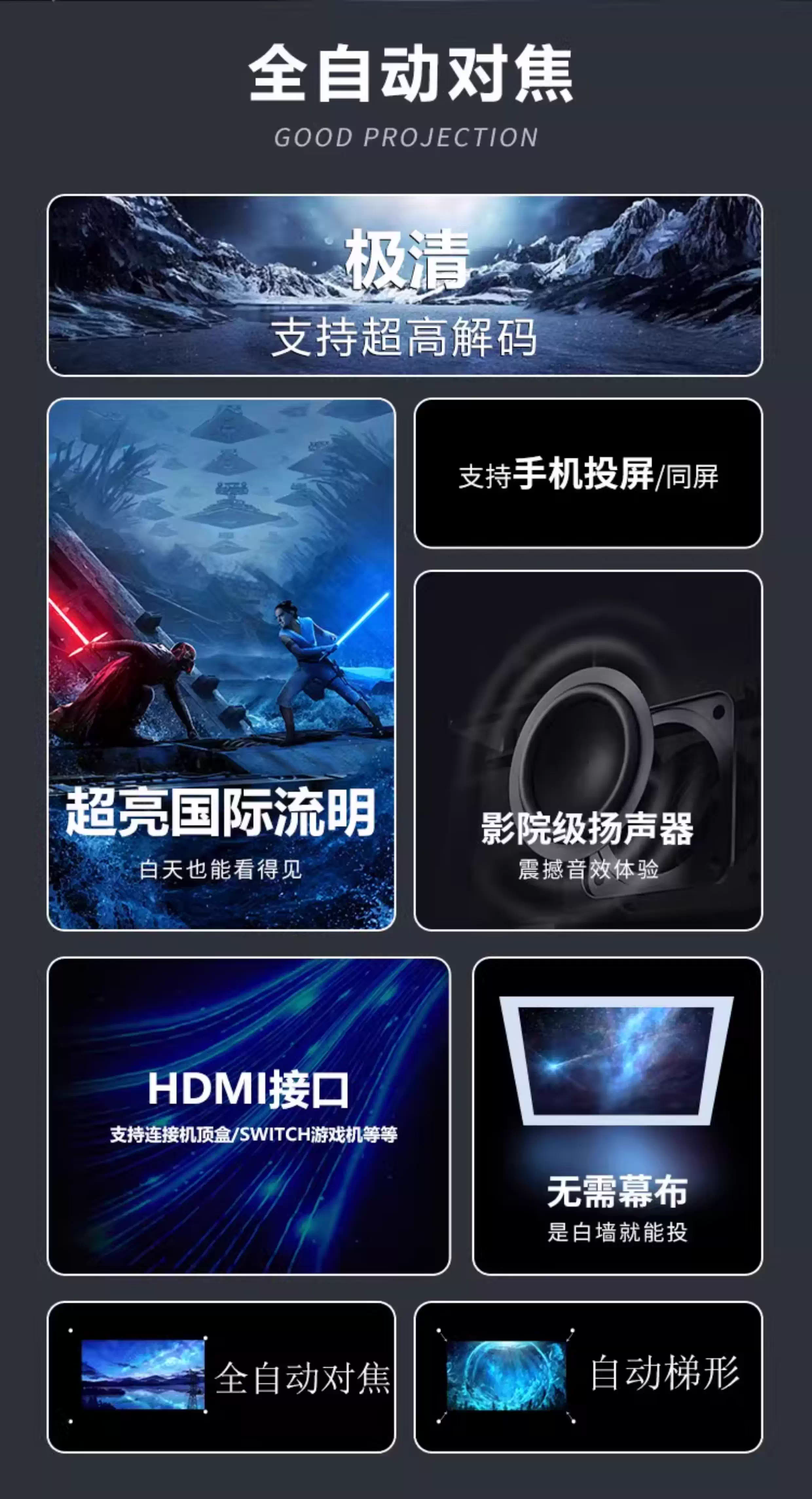 | Color Classification | 4K Ultra-Clear Decoding + Auto Focus + Screen Projection,8K Special Decoding + HDMI + Screen Projection |