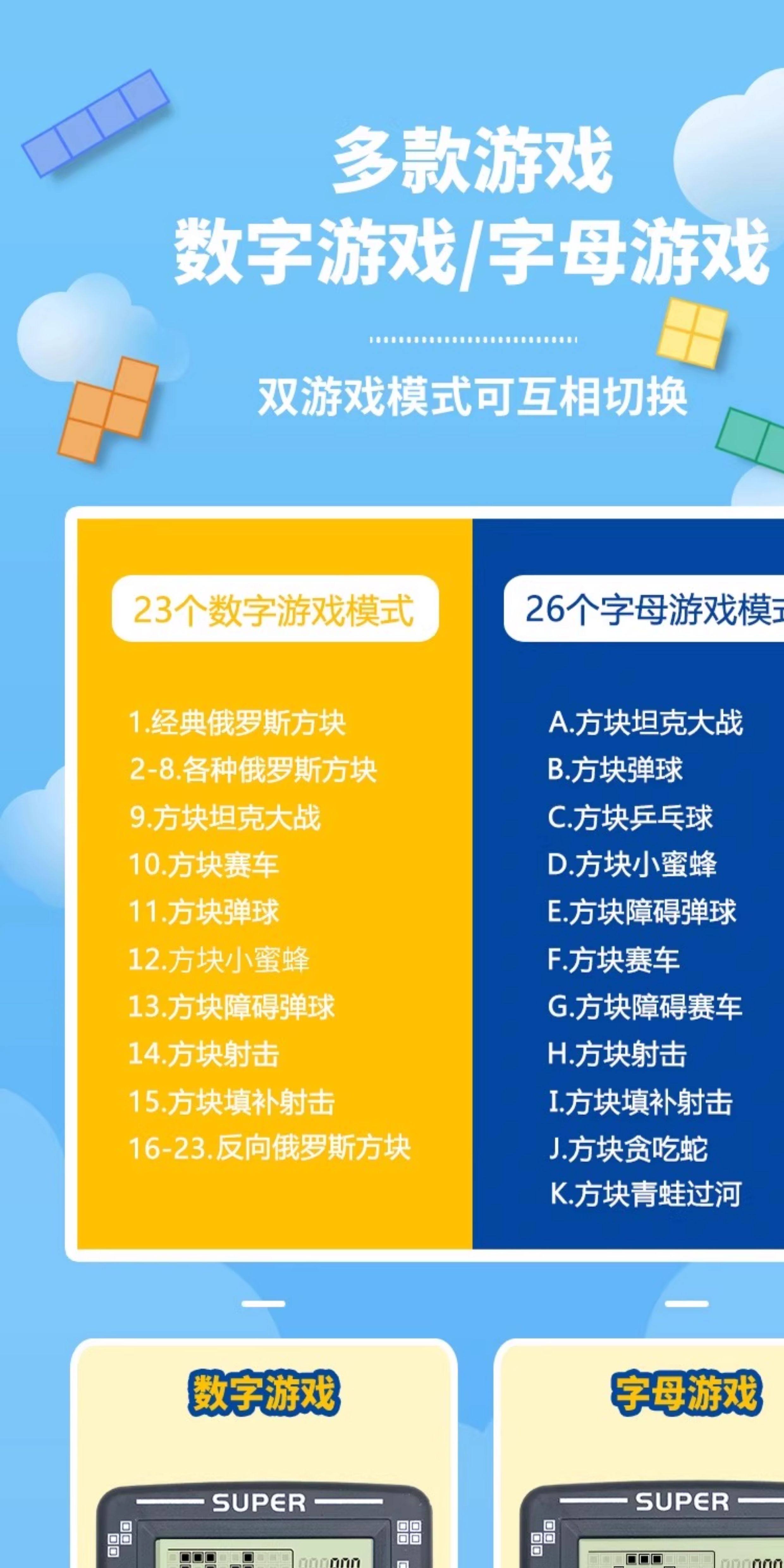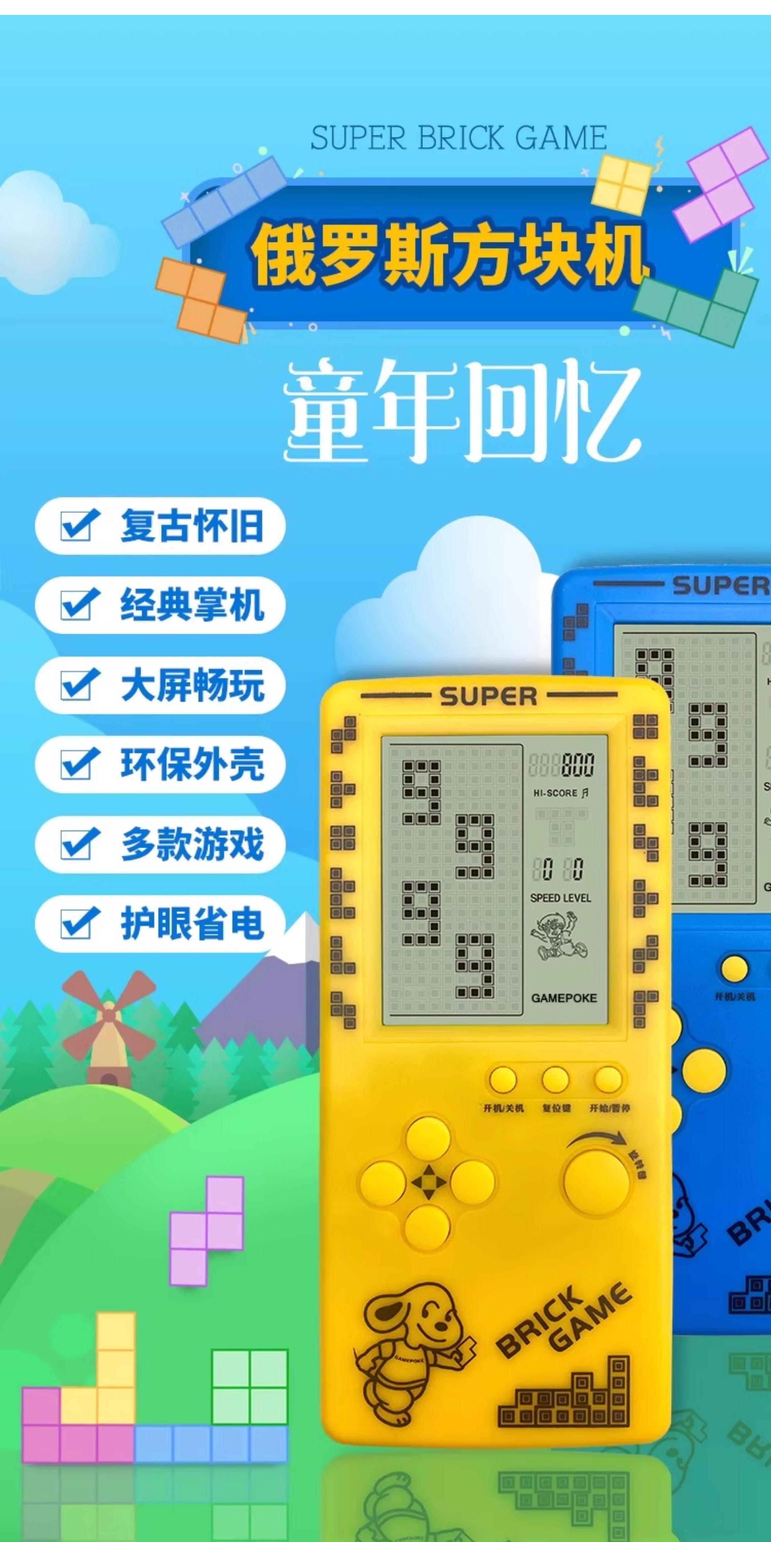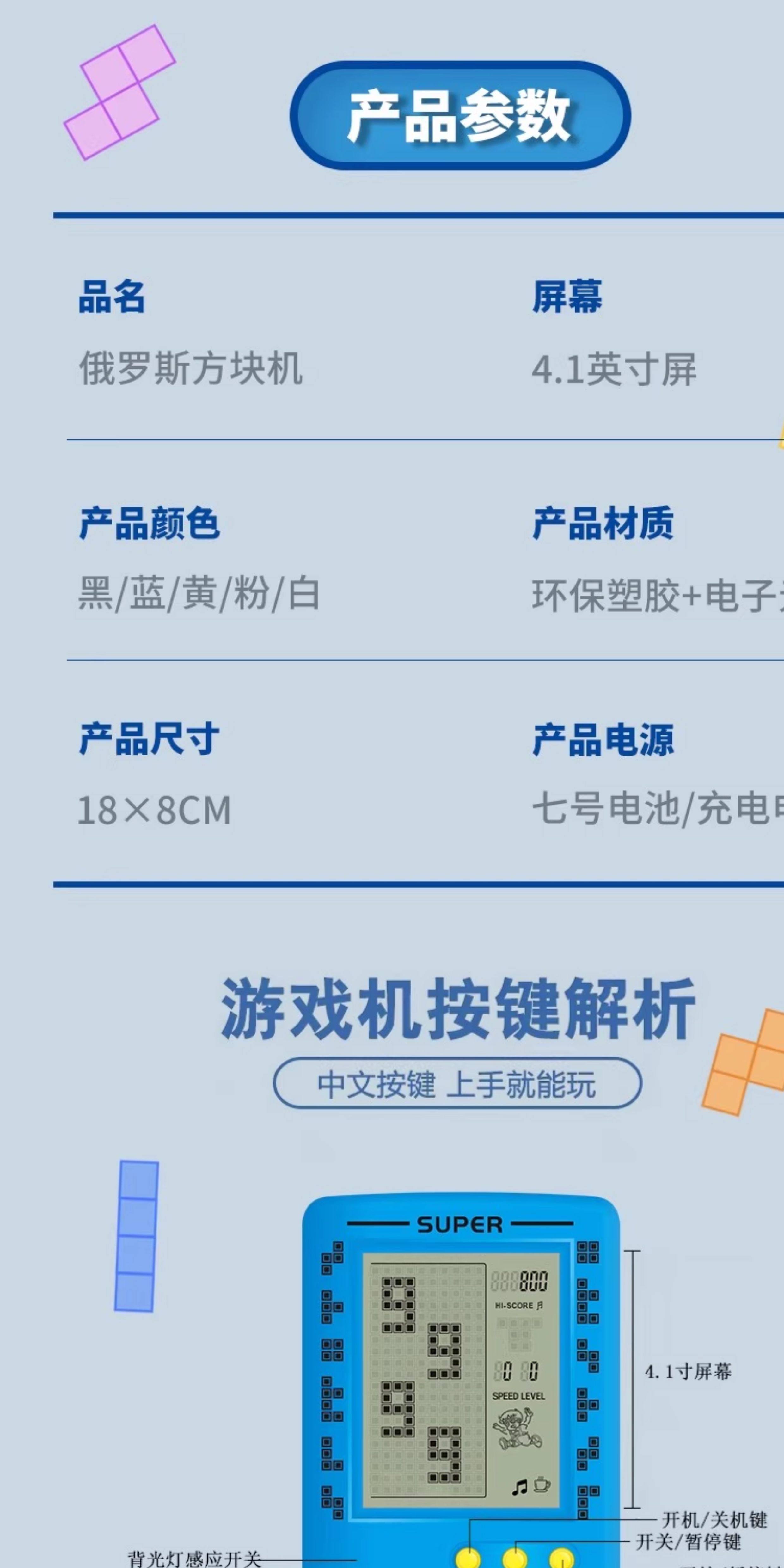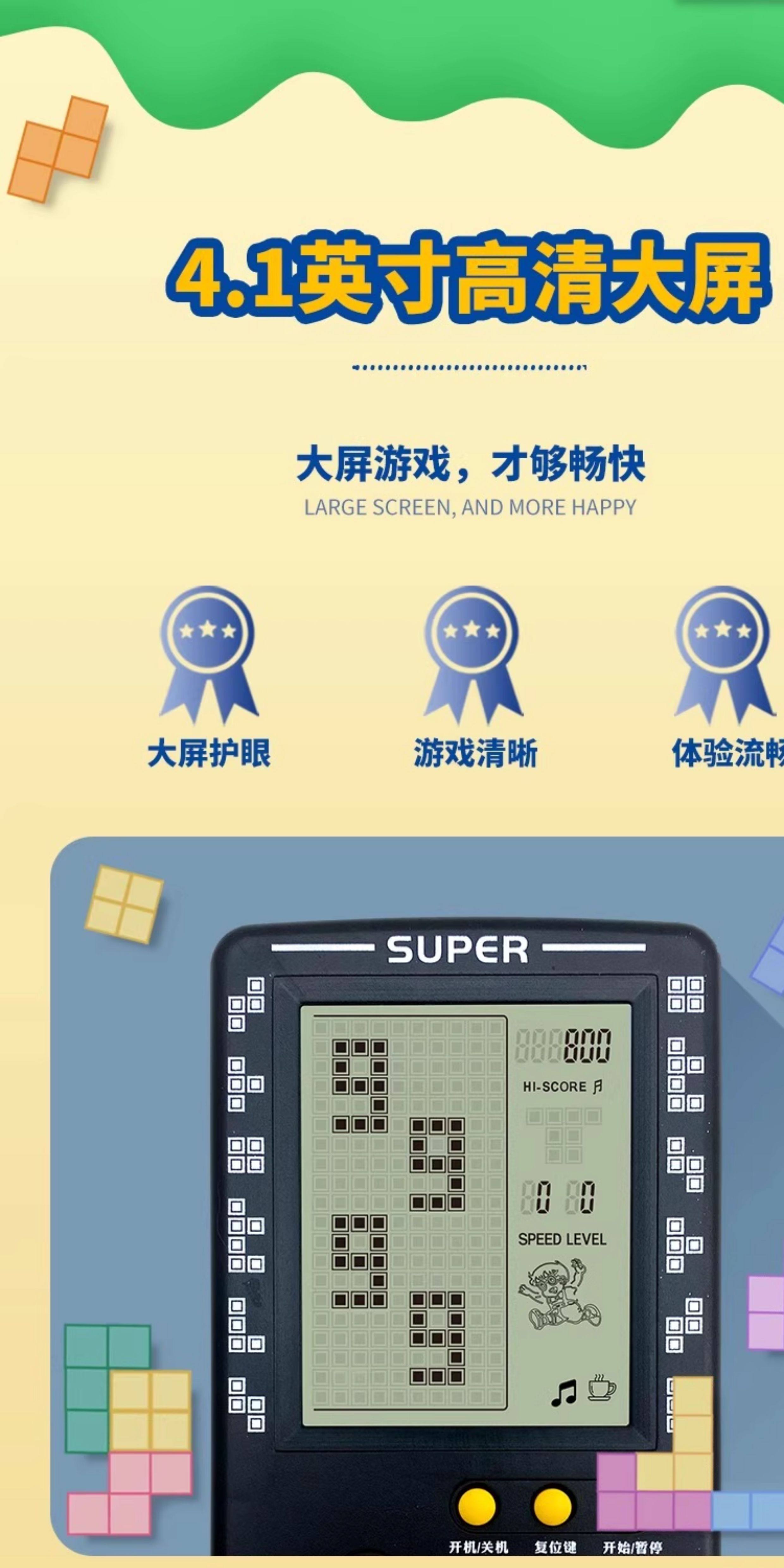 [Large Screen Eye Protection]2025 New Tetris Game Console Handheld 4.1inch Games Rechargeable Large Screen Intelligence Development Children's Educational Retro Nostalgic Childhood Handheld Tetris