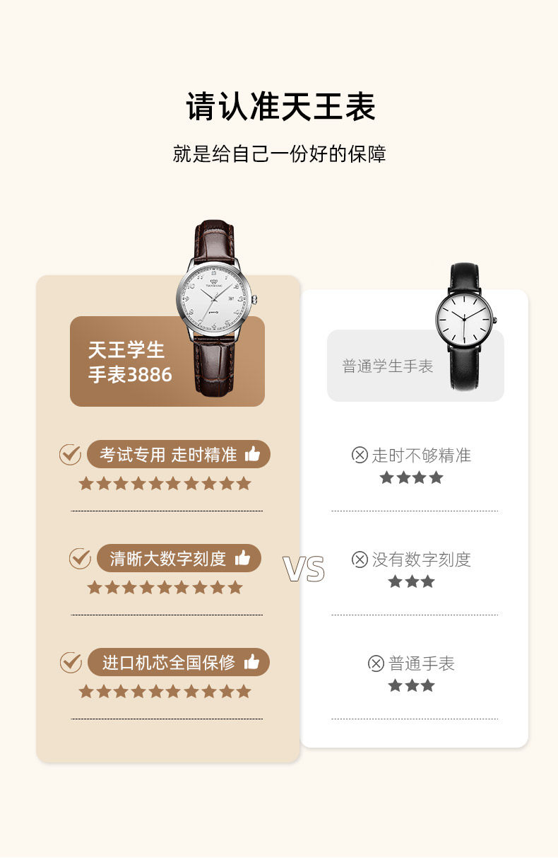 Tianwang Female Student Quartz Watch for Middle and High School Students, Birthday Gift, College Entrance Exam Watch, Only Shows Time