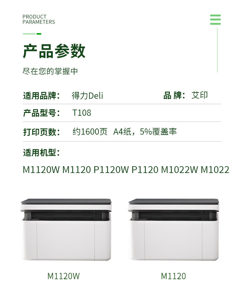 Aiyin Original Compatible Toner Cartridge for Deli P1120W T108 M1120W P1120 Powder Cartridge M1022W Laser All-In-One Printer Toner Cartridge M1120 Easy-To-Refill Toner Cartridge Deli Drum Toner