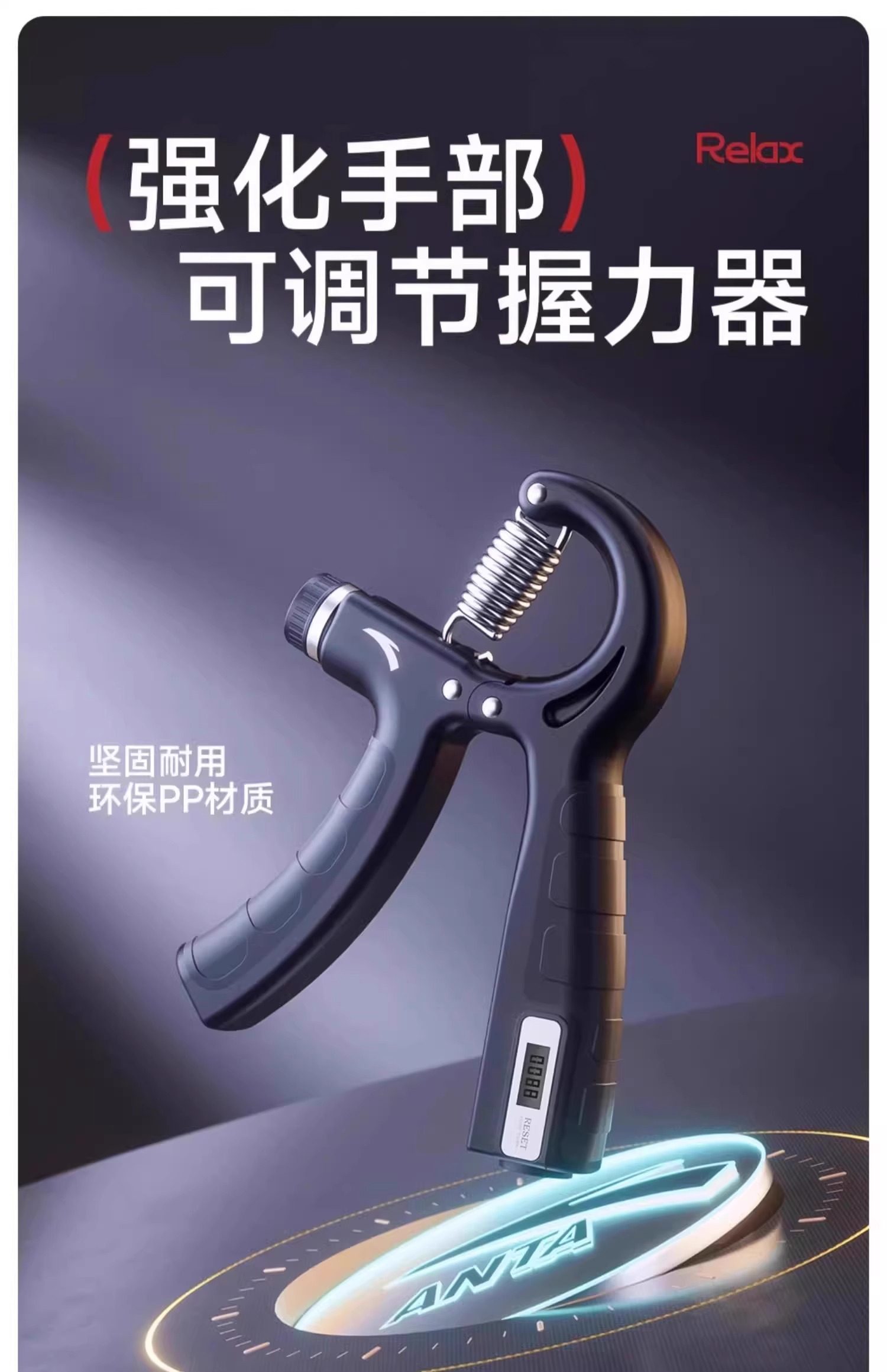 Anta Grip Strengthener Men's Adjustable Electronic Counting Professional Arm Strength Training Device Middle School Student Fitness Equipment