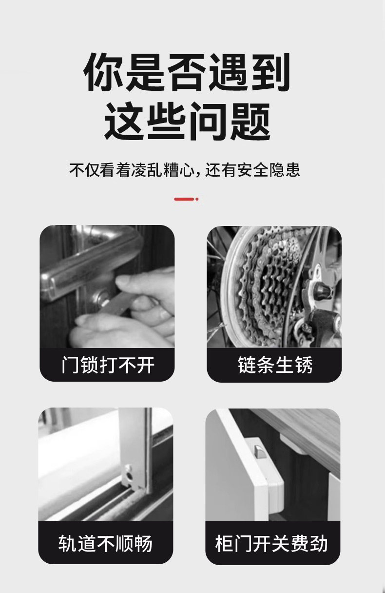 | Color Classification | 60ml [1 Bottle] Multi-Purpose Lubricant,60ml [2 Bottles] Multi-Purpose Lubricant,60ml [5 Bottles] Multi-Purpose Lubricant,60ml [10 Bottles] Multi-Purpose Lubricant,120ml [1 Bottle] Multi-Purpose Lubricant,120ml [2 Bottles] Multi-Purpose Lubricant,120ml [5 Bottles] Multi-Purpose Lubricant,K60Ml [1 Bottle] Micromolecular Lubricating Oil,K60Ml [2 Bottles] Micromolecular Lubricant,K60Ml [3 Bottles] Micromolecular Lubricant,K60Ml [6 Bottles] Micromolecular Lubricating Oil,Multifunctional White Grease 100g [1 Bottle],Multifunctional White Grease 100g [3 Bottles],Multifunctional White Grease 100g [5 Bottles],300g White Grease + 120ml Lubricating Oil [1 Set],300g White Grease + 120ml Lubricating Oil [2 Sets],300g White Grease + 120ml Lubricating Oil [5 Sets],Multifunctional White Grease 300g [1 Bottle],Multifunctional White Grease 300g [3 Bottles],Multifunctional White Grease 300g [5 Bottles],100g White Grease + 60ml Lubricating Oil [1 Set],100g White Grease + 60ml Lubricating Oil [2 Sets],100g White Grease + 60ml Lubricating Oil [5 Sets] |