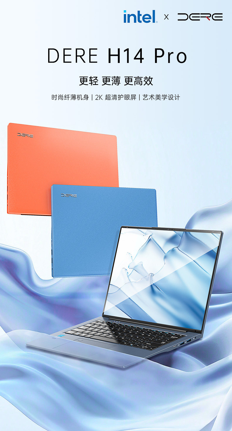 Dere/Dai Rui Laptop Gaming Notebook 2026 New Model Blue Orange High-Value Design Large Memory 14inch Office Laptop 2.2K Ultra-Clear Large Screen Portable Computer Official Flagship Store Genuine Product