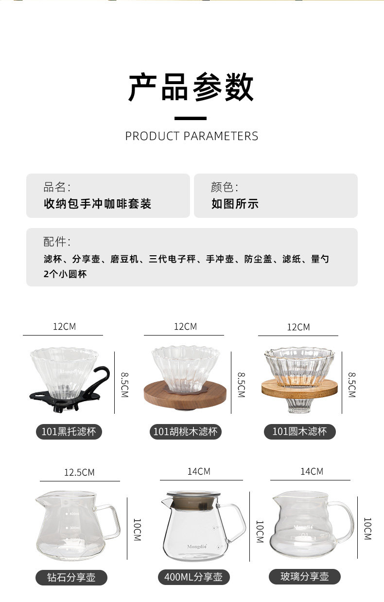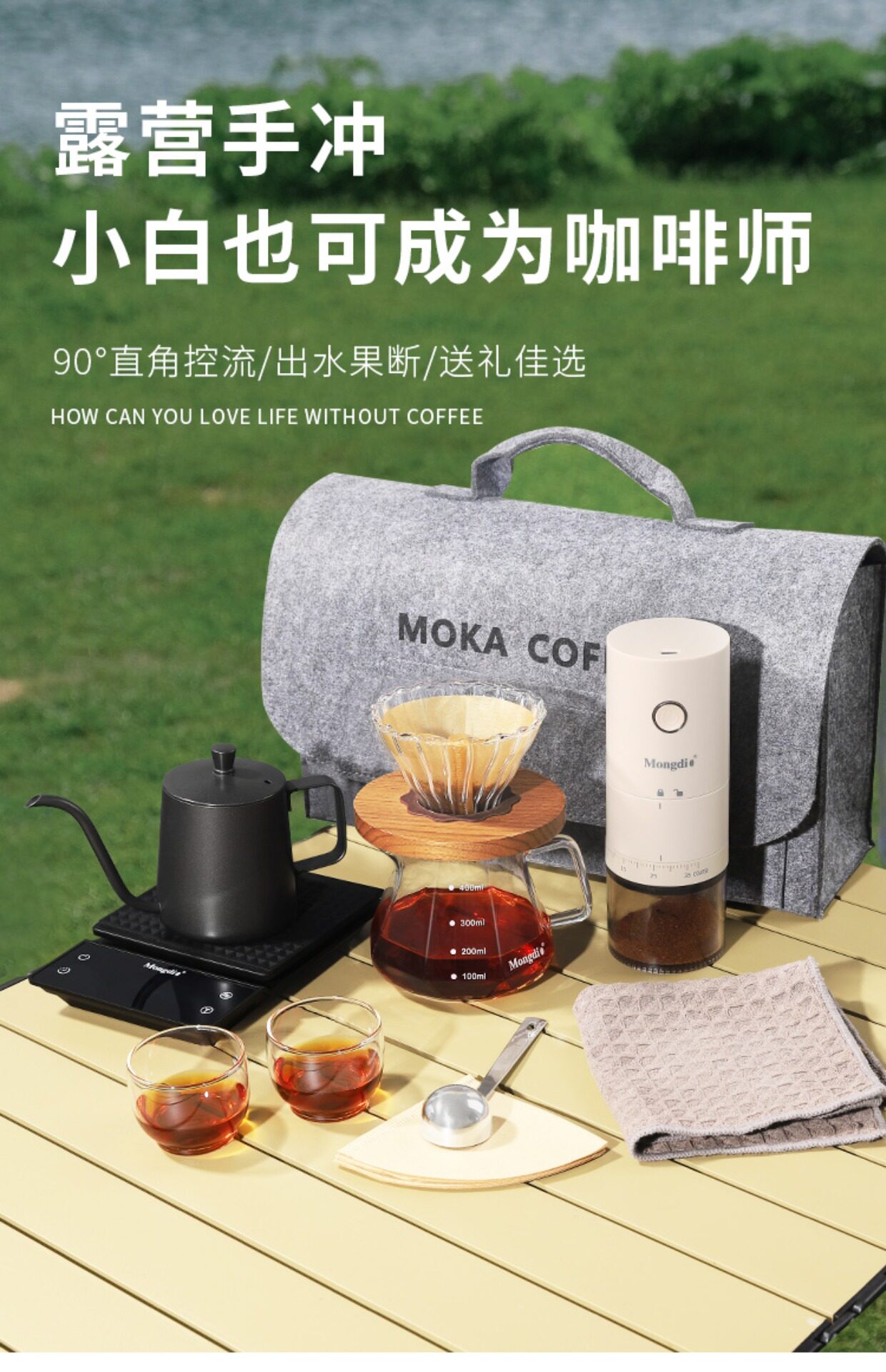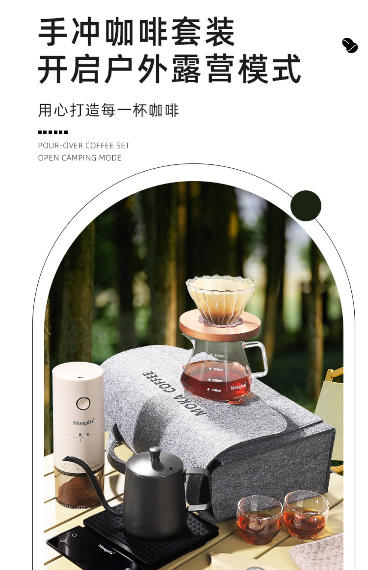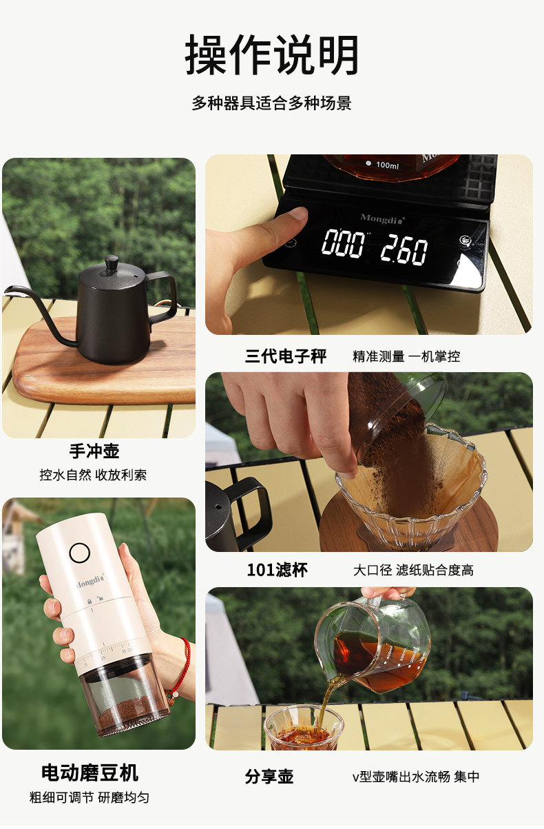 Mongdio Hand-Brewed Coffee Pot Set Outdoor Camping Coffee Equipment Portable Travel Hand-Brewed Coffee Equipment