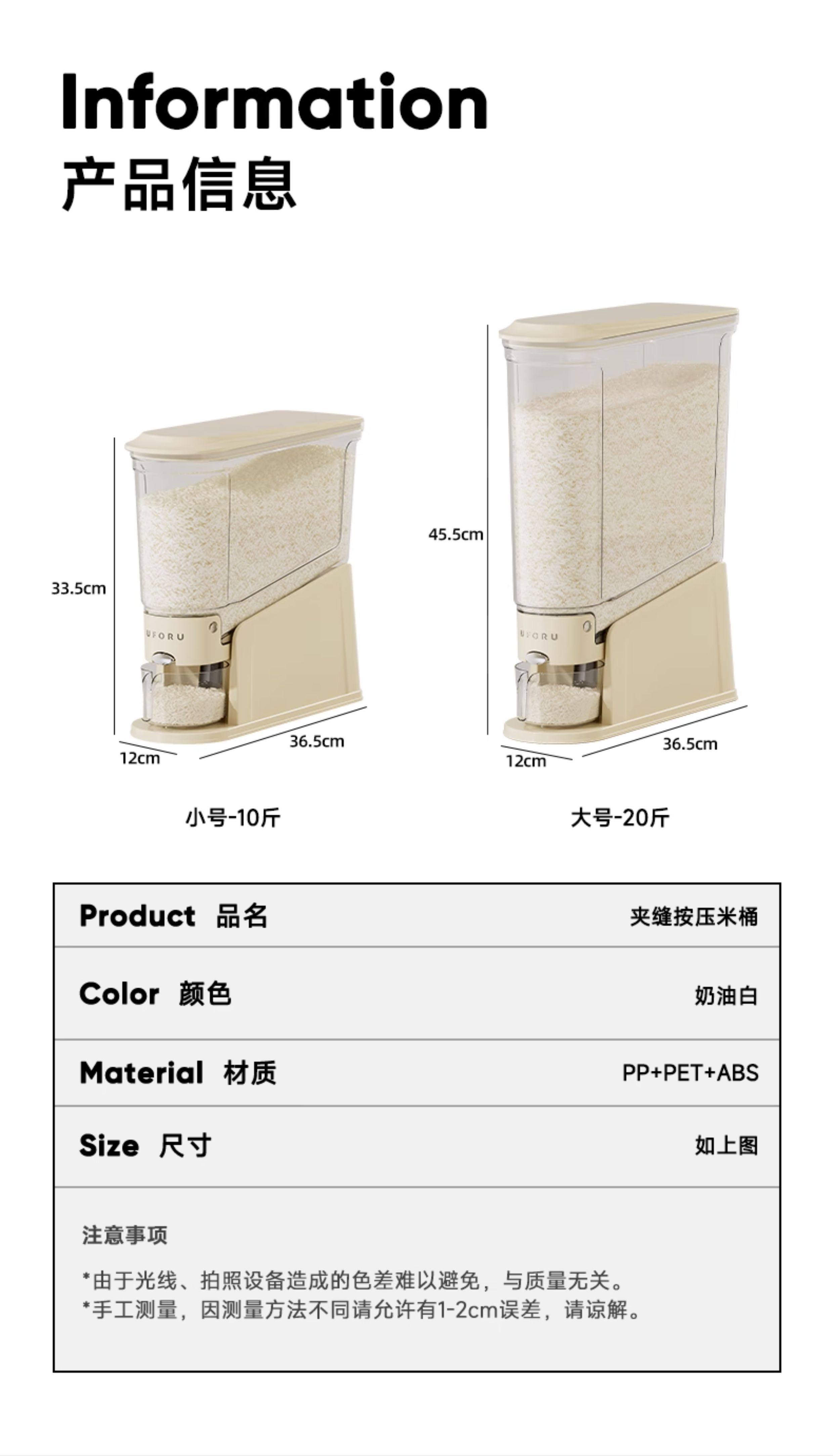 | Color Classification | ✅[Cream White]10kg Rice Bucket-12Cm Ultra Narrow[Dispenses Rice with a Press-And-Release Mechanism, Featuring a Sealing Ring to Keep Pests Out],✅[Cream White]20kg Rice Bucket-12Cm Ultra Narrow[Dispenses Rice with a Press-And-Release Mechanism, Featuring a Sealing Ring to Keep Pests Out],[Medieval Green]10kg Rice Bucket-12Cm Ultra Narrow[Dispenses Rice with a Press-And-Release Mechanism, Featuring a Sealing Ring to Keep Pests Out],[Medieval Green]20kg Rice Bucket-12Cm Ultra Narrow[Dispenses Rice with a Press-And-Release Mechanism, Featuring a Sealing Ring to Keep Pests Out],[Anchor Red]10kg Rice Bucket-12Cm Ultra Narrow[Dispenses Rice with a Press-And-Release Mechanism, Featuring a Sealing Ring to Keep Pests Out],[Anchor Red]20kg Rice Bucket-12Cm Ultra Narrow[Dispenses Rice with a Press-And-Release Mechanism, Featuring a Sealing Ring to Keep Pests Out],[Cream White]10 Catties Rice Bucket + Silicone Rice Spoon,[Cream White]20 Catties Rice Bucket + Silicone Rice Spoon,Press-To-Open Rice Dispenser - Cream White[5kg],Press-To-Open Rice Dispenser - Cream White[10kg],[7-Piece Home Set]5kg Cream White Rice Bucket+1000Ml Sealed Jar*6+2300Ml Sealed Jar*2,[7-Piece Home Set]10kg Cream White Rice Bucket+1000Ml Sealed Jar*6+2300Ml Sealed Jar*2,[7-Piece Home Set]5kg Medieval Green Rice Bucket+1000Ml Sealed Jar*6+2300Ml Sealed Jar*2,[7-Piece Home Set]10kg Medieval Green Rice Bucket+1000Ml Sealed Jar*6+2300Ml Sealed Jar*2,[Cream White]10kg Rice Bucket+[Cream White]20 Catties Rice Noodle Bucket,[Cream White]10kg Rice Bucket+[Cream White]6kg Grain Bucket,Sealed Jar-1000Ml[4 Piece Set],Sealed Jar-1000Ml*2+1700Ml*2[4 Piece Set] |