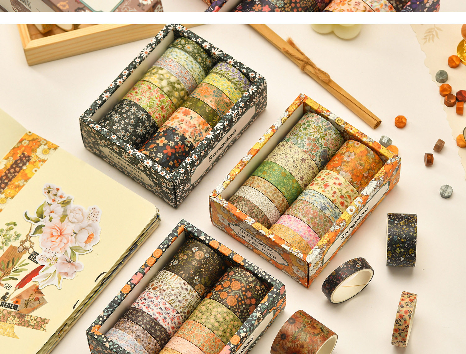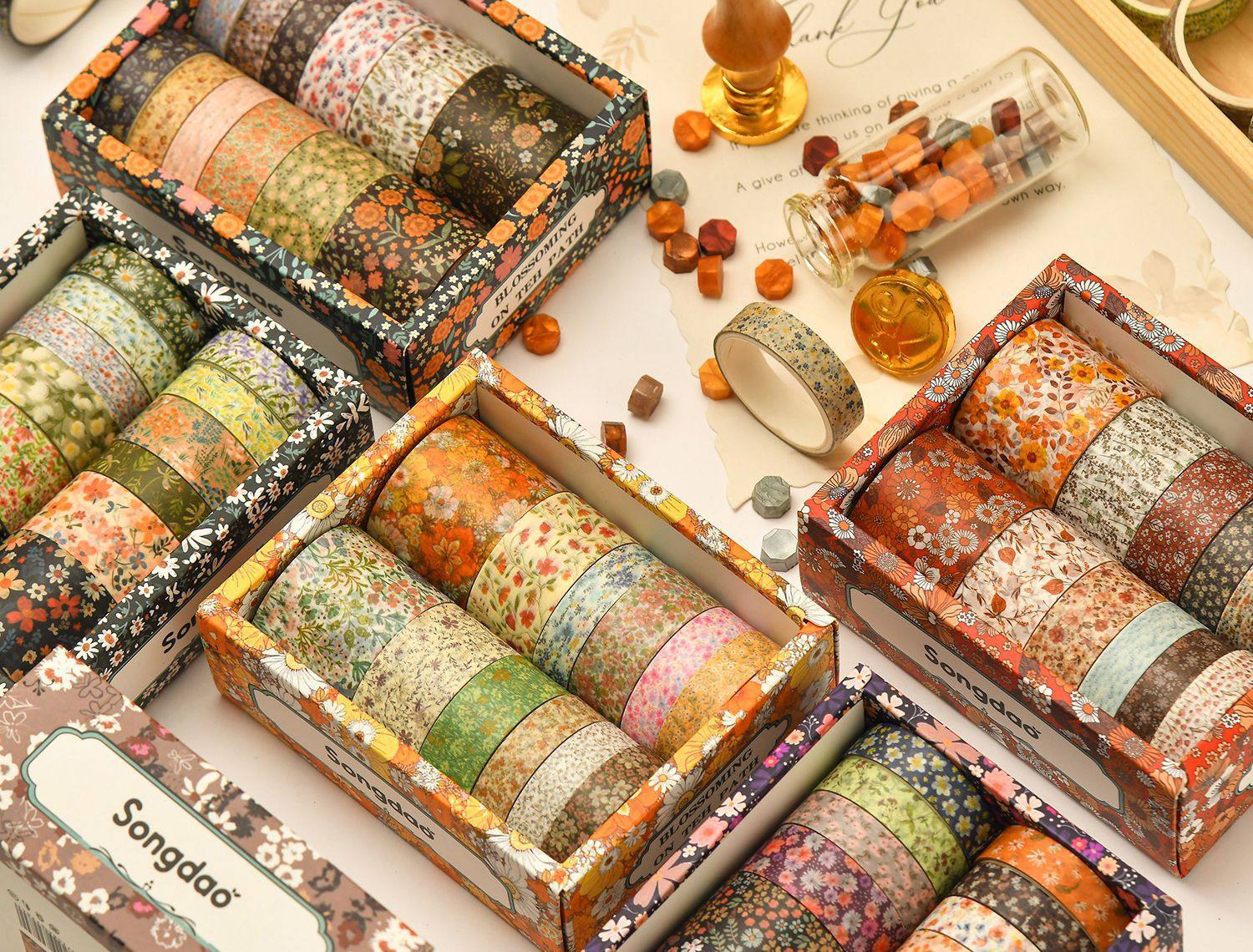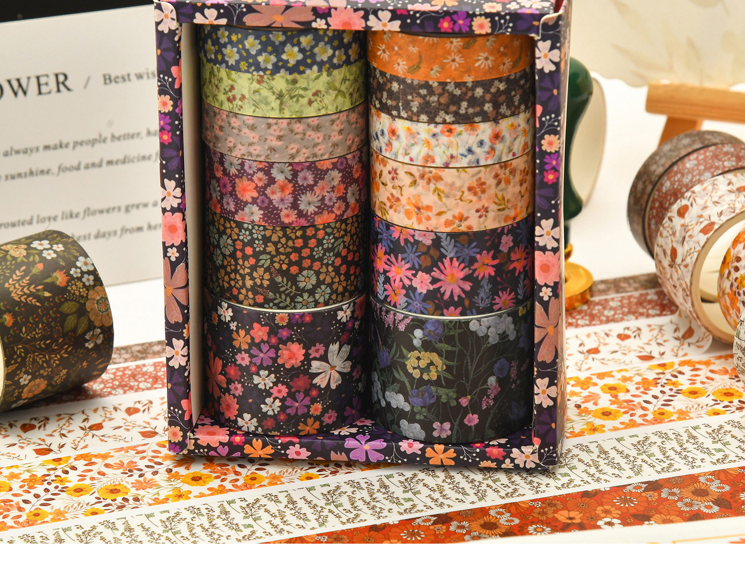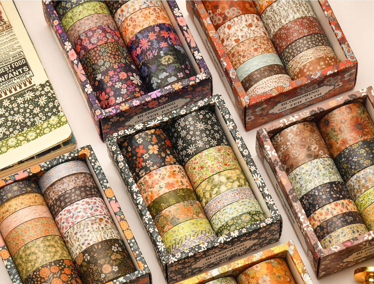 12 Rolls of Washi Tape Set for Journaling, Floral Diary DIY Materials, Decorative Stickers, Creative and Beautiful Journal Stickers