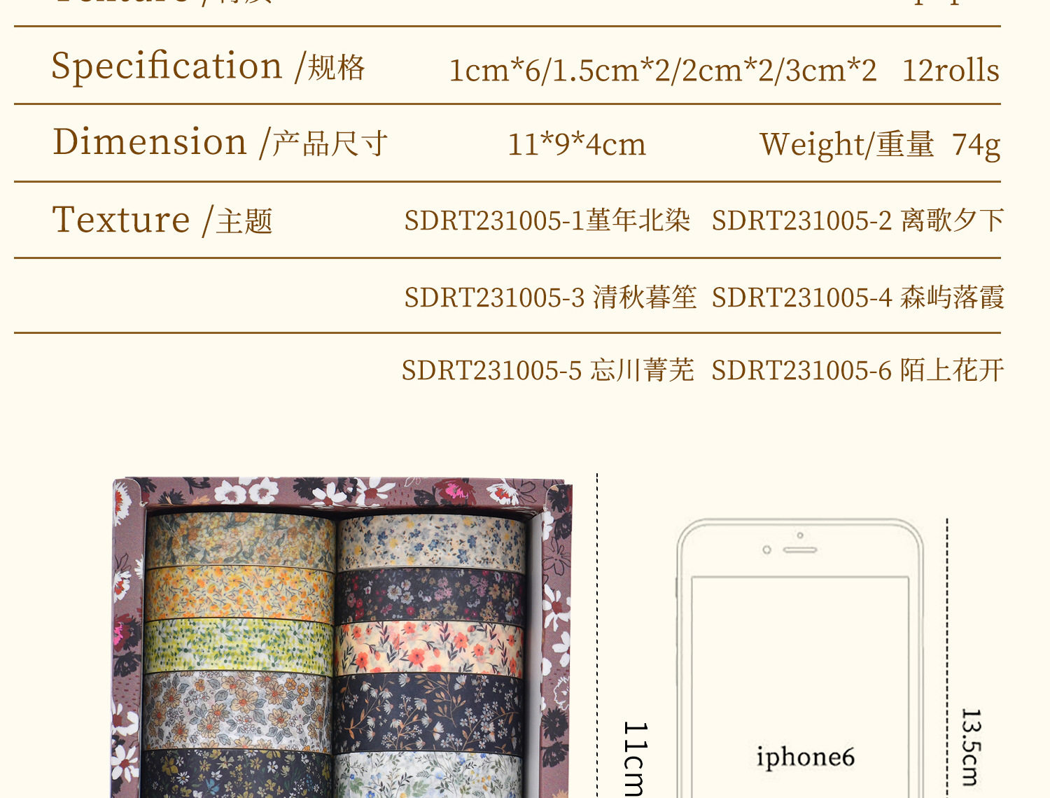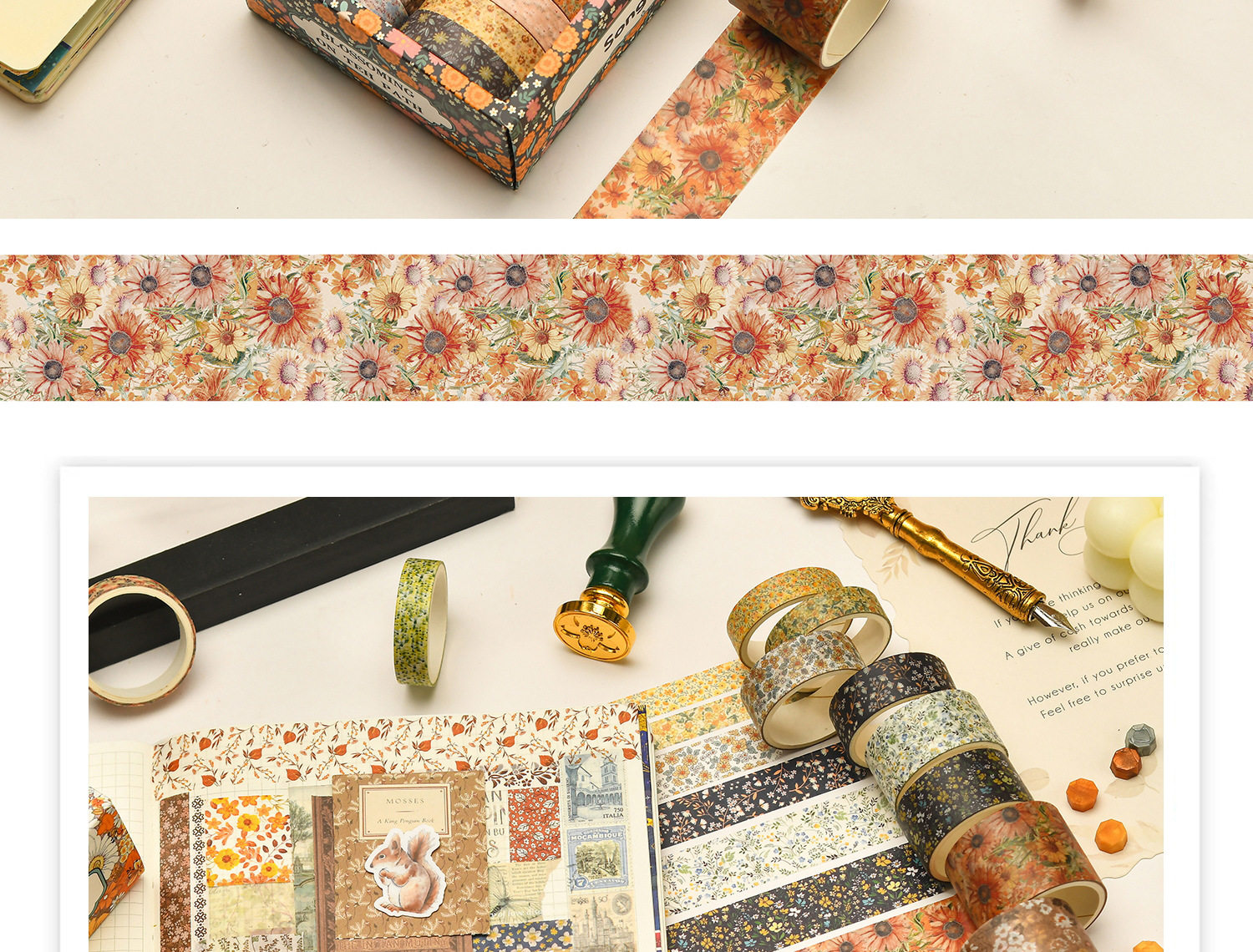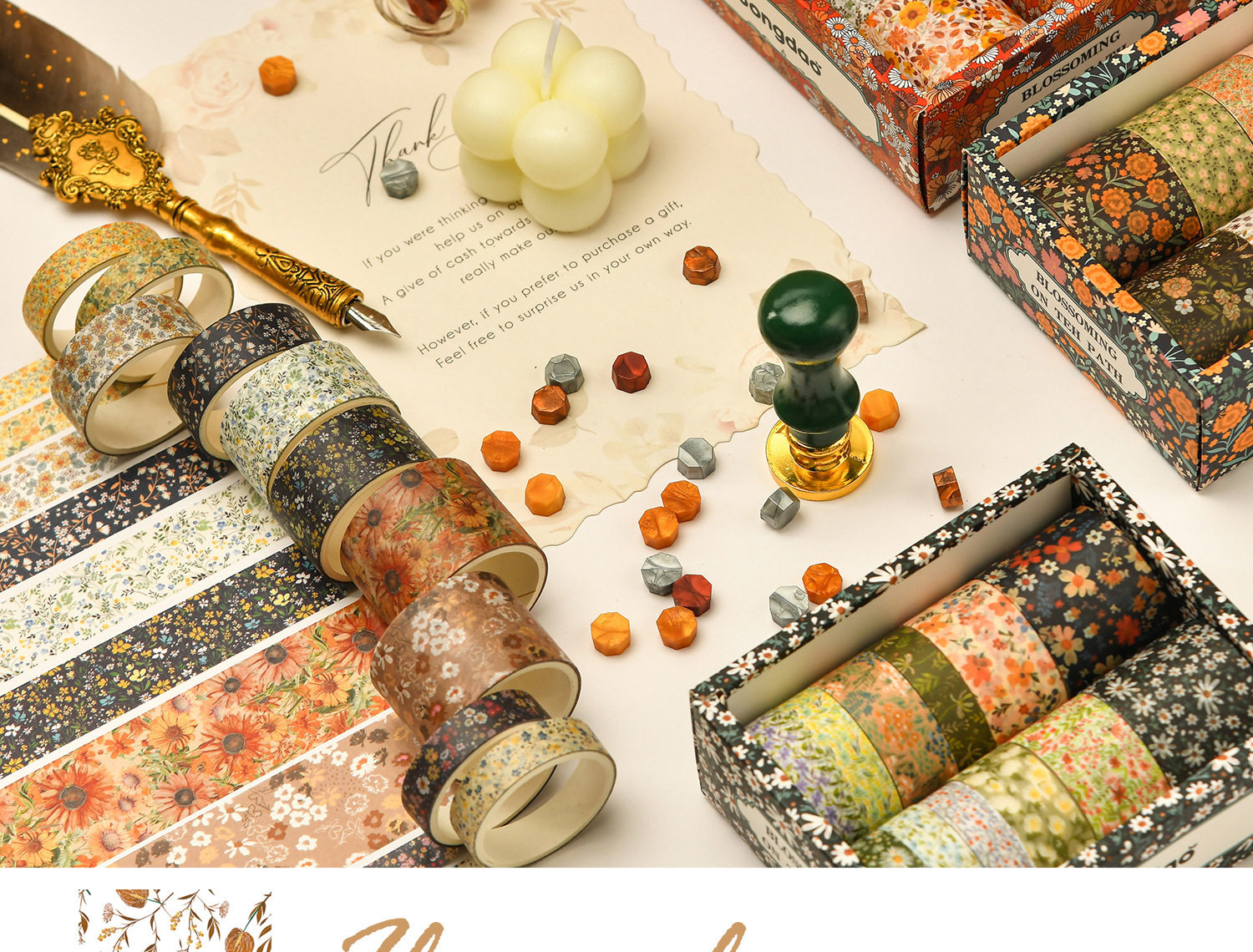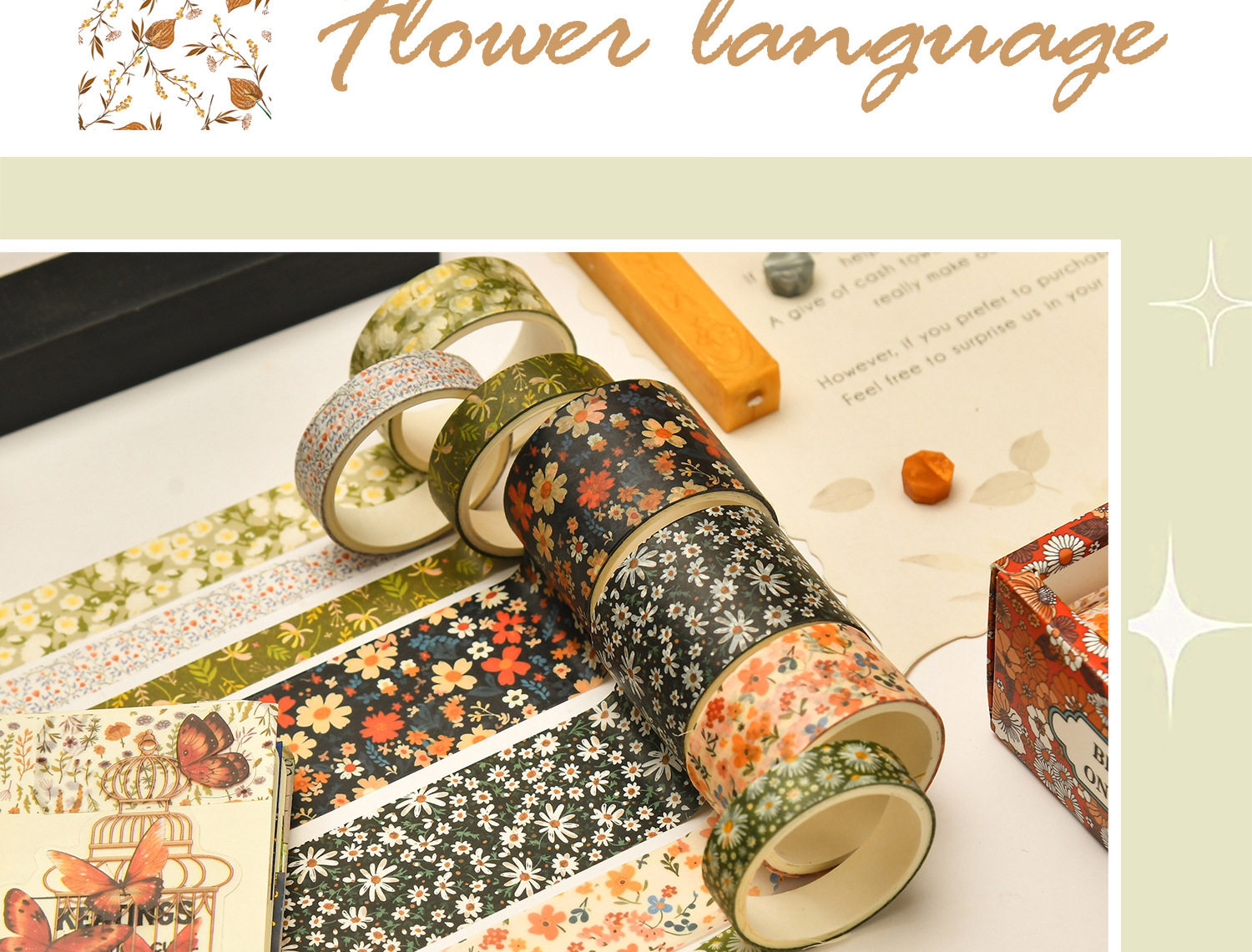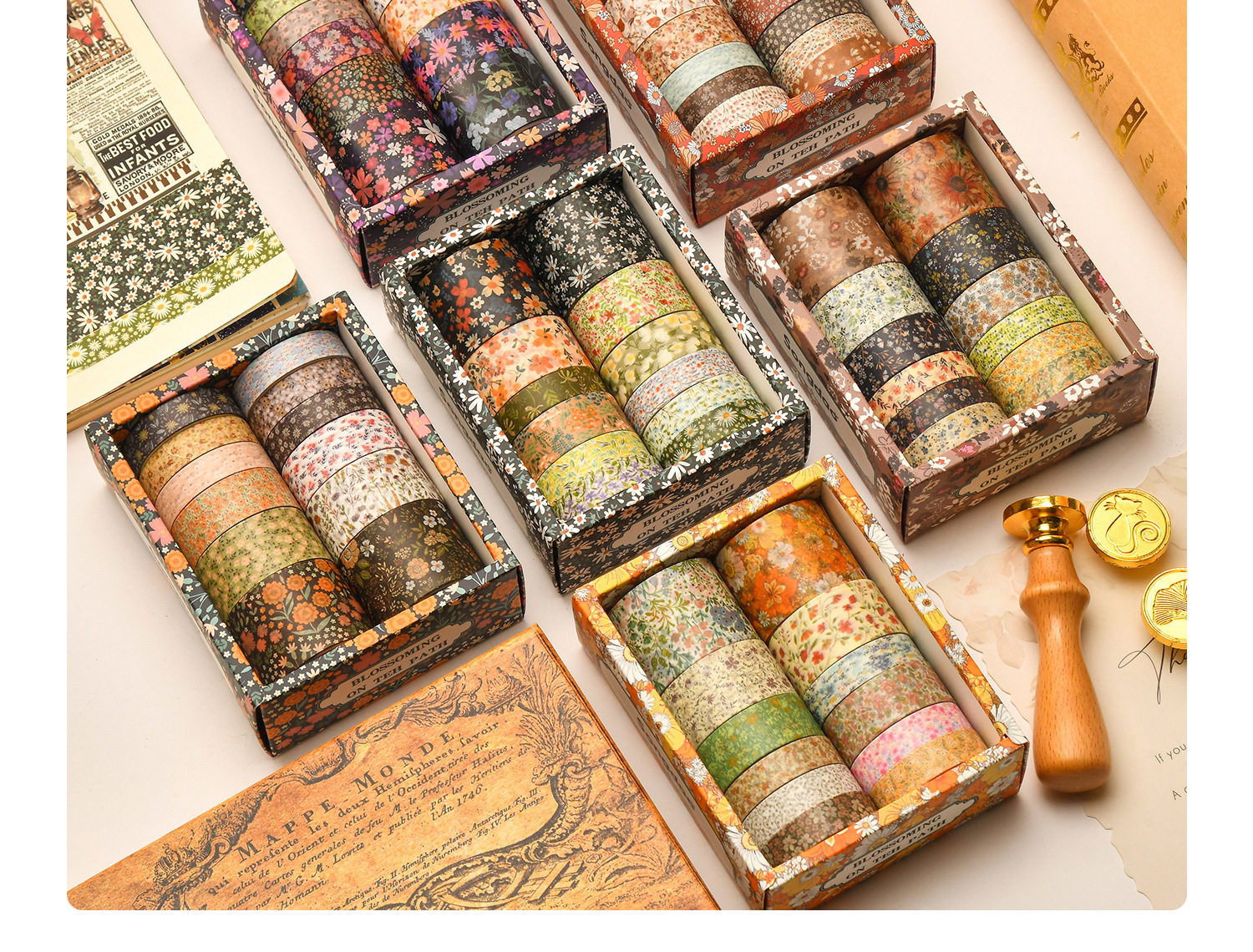 12 Rolls of Washi Tape Set for Journaling, Floral Diary DIY Materials, Decorative Stickers, Creative and Beautiful Journal Stickers