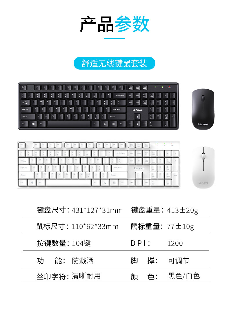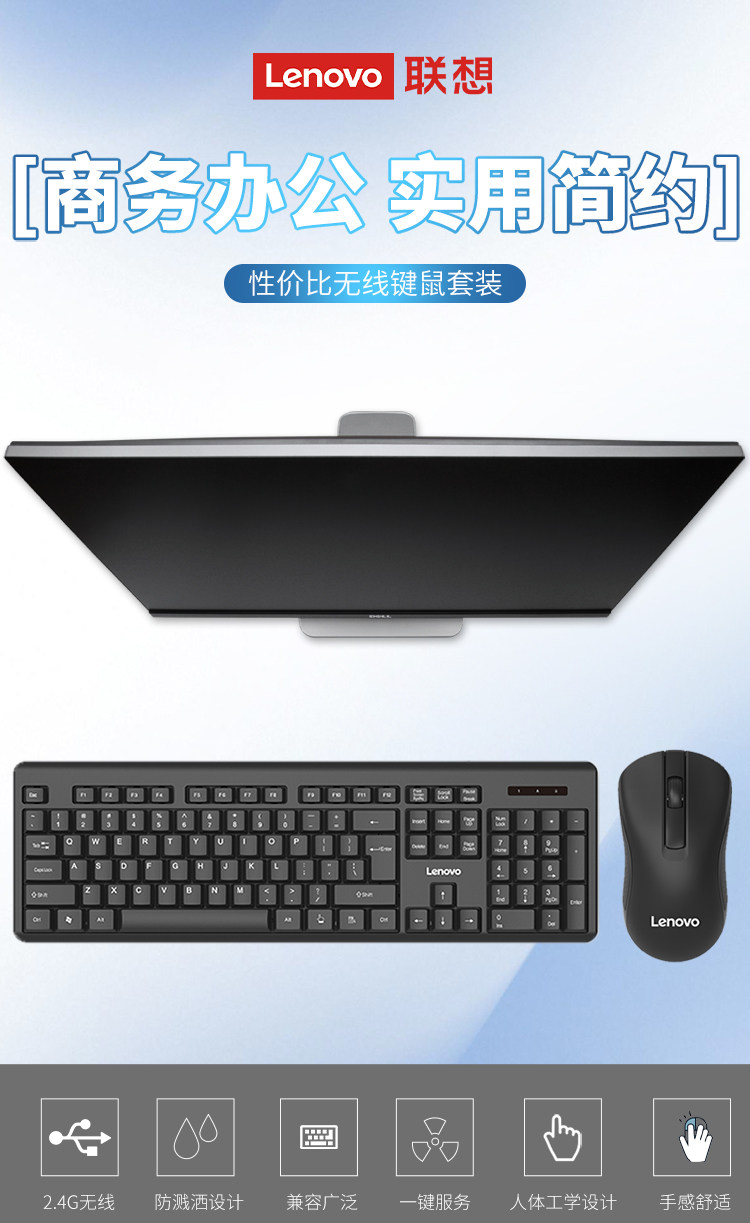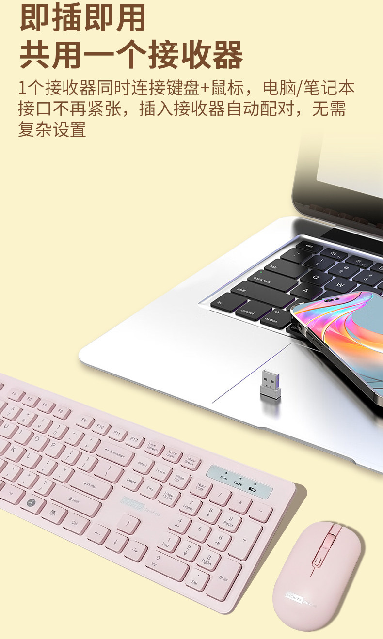 Lenovo Lenovo Baiying Keyboard and Mouse Set Wireless Wired Keyboard Mouse Desktop Computer Office Dedicated Keyboard and Mouse for Women