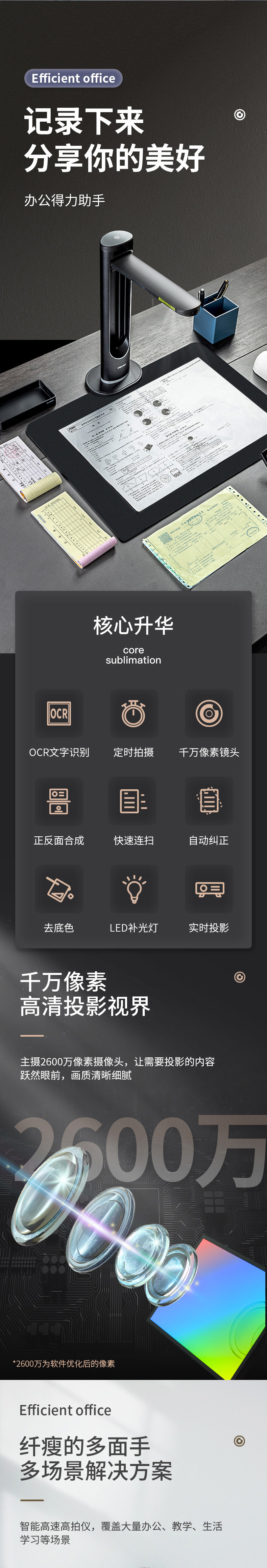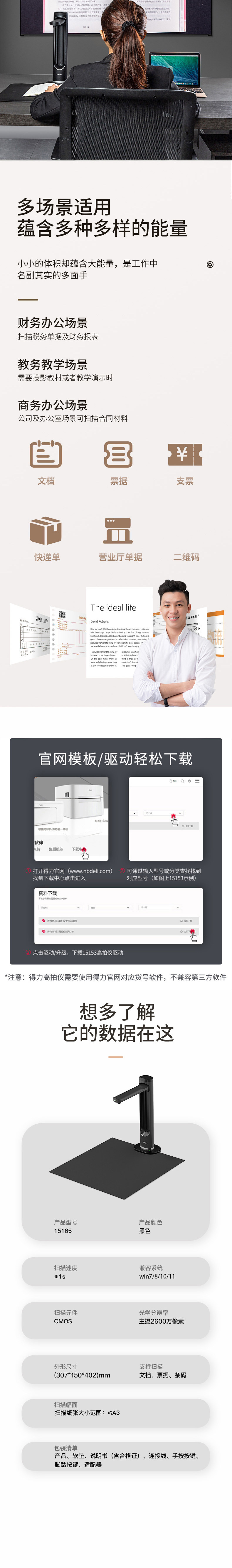 Deli 15165 New Model High-Resolution Scanner with 22 Million Pixels for Efficient Office Use, A3/A4 Book High-Definition Projection, Automatic Correction, Document Synthesis