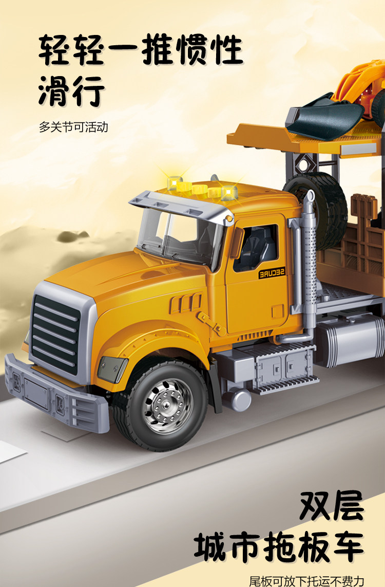 Children's Toys Artificial Inertial Transport Vehicle Model Double-Decker Carrier Engineering Vehicle Toy Boy 1-3 Years Old Early Education