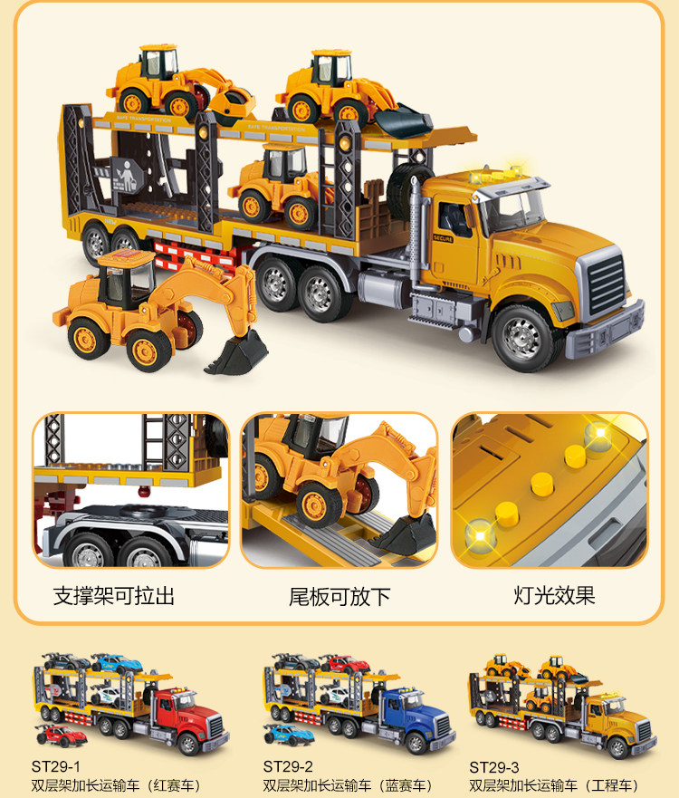 | Color Classification | Yellow Double-Layer Short Transport Cart [Comes with 2 Carts],Yellow Double-Layer Extended Transport Truck [with 4 Cars],Blue Double-Layer Short Transport Cart [Comes with 2 Carts],Blue Double-Layer Extended Transport Cart [Comes with 4 Carts],Red Double-Layer Short Transport Cart [Comes with 2 Carts],Red Double-Layer Extended Transport Cart [Comes with 4 Carts] |