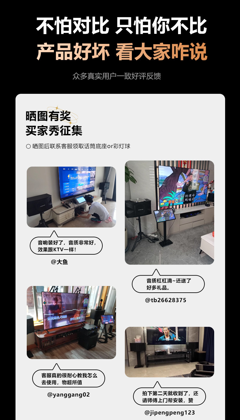 | Color Classification | ✅Gift Selection✅Free On-Site Installation✅ Free Shipping✅ ,[Double 10 O'Clock Singing Double Wheat Version 1] 22inch Song Machine 500g,[Double 10 O'Clock Singing Double Wheat Version 2] 22inch Song Machine 1Tb,[Double 10 O'Clock Singing Double Wheat Version 3] 22inch Song Machine 2Tb,[Double 10 O'Clock Singing Double Wheat Version 4] 22inch Karaoke Machine 500g+ ✅ 10inch Subwoofer,【Double 10 Exclusive Dual-Mic Version 5】 22inch Karaoke Machine 500g,【Double 10 Exclusive: Dual-Mic Version 6】 22inch Karaoke Machine 1Tb,【Double 10 Exclusive: Dual-Mic Version 7】 22inch Karaoke Machine 2Tb,【Double 10 Exclusive Dual-Mic Version 8】 22inch Karaoke Machine 500g+✅12inch Subwoofer,【Double 12 Hot Deal: Dual-Mic Version 9】 22inch Karaoke Machine 500g+✅Standalone Effects Processor,【Double 12 Hot Deal: Dual-Mic Version 10】 22inch Karaoke Machine 1Tb+✅Standalone Effects Processor,【Double 12 Hot Deal: Dual-Mic Version 11】 22inch Karaoke Machine 2Tb+✅Standalone Effects Processor,【Double 12 Hot Deal: Dual-Mic Version 12】 22inch Karaoke Machine 500g+✅Standalone Effects+✅15inch Subwoofer,[Four 10inch Singing Double Wheat Large Room Version] 22inch Karaoke Machine 500g+✅12inch Subwoofer,[Four 10inch Exclusive Double Wheat Private Room Edition] 22inch Karaoke Machine 500g+✅12inch Subwoofer,[Four 12inch Fever Double Wheat Large Room Version] 22inch Song Request Machine 500g+✅Standalone Effects+✅15inch Subwoofer,[Double 15inch Double Wheat Professional Edition] 22inch Karaoke Machine 500g+✅Standalone Effects Processor,✅If You Need to Upgrade to a Larger Capacity Hard Drive, Please Contact Online Customer Service to Pay the Difference |