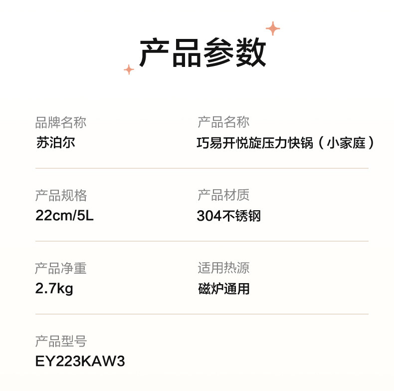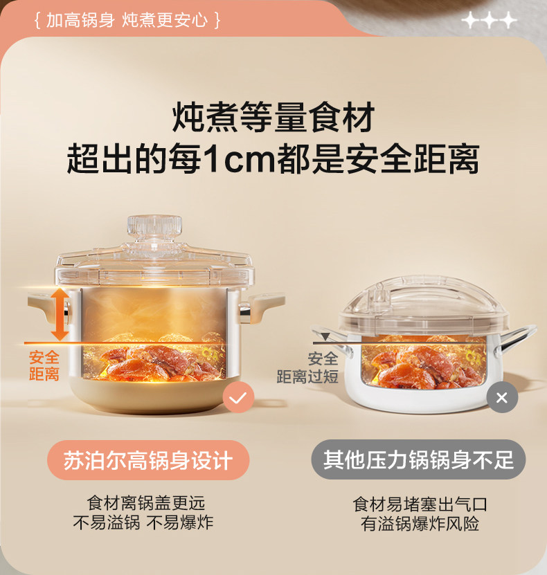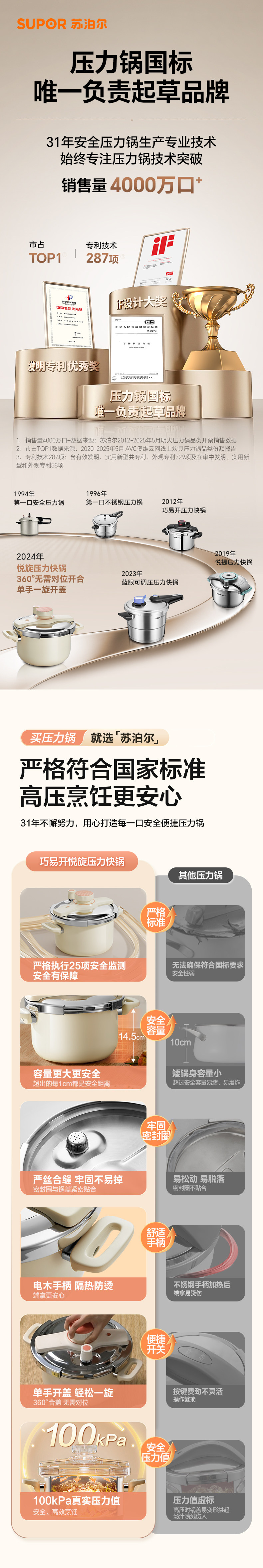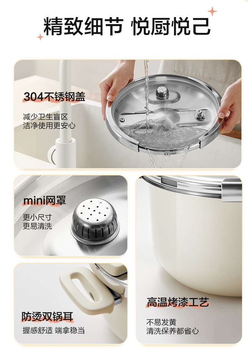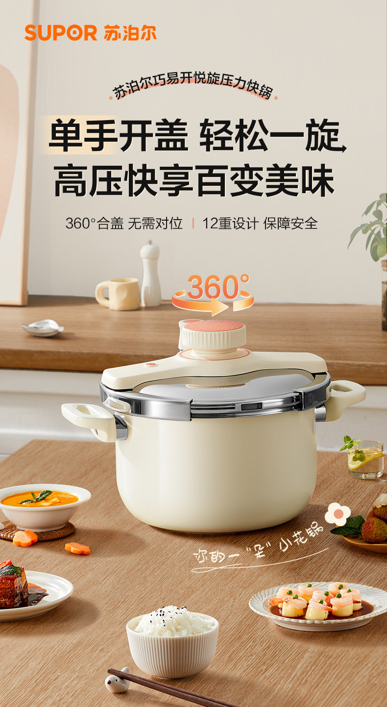 [Flagship Model] Supor Pressure Cooker, Small Household Stainless Steel Pressure Cooker, Compatible with Gas and Induction Cookers, Explosion-Proof