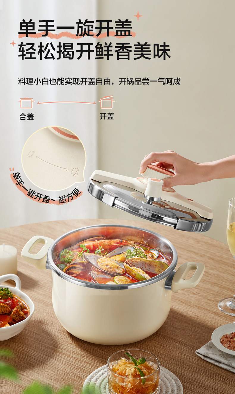 | Color Classification | 100Kpa High Pressure Pressure Cooker-5L [Free Silicone Spoon],100Kpa High Pressure Pressure Cooker-5L [Heat Conduction Plate + Free Silicone Spoon],One Pot for Two Purposes - 5L - [with Steaming Grid, Can Be Steamed or Stewed] Comes with a Silicone Spoon,One Pot for Two Purposes - 5L - [with Glass Lid, It Turns into a Deep Soup Pot in Seconds] Comes with a Silicone Spoon,One Pot, Three Uses - 5L - [with Glass Lid & Steaming Grid, Can Be Steamed, Boiled or Stewed] Comes with Silicone Spoon,One Pot for Three Uses - 5L - [with Glass Lid & Steaming Grid, Can Be Steamed, Boiled or Stewed] + Heat Conduction Version + Free Silicone Spoon |