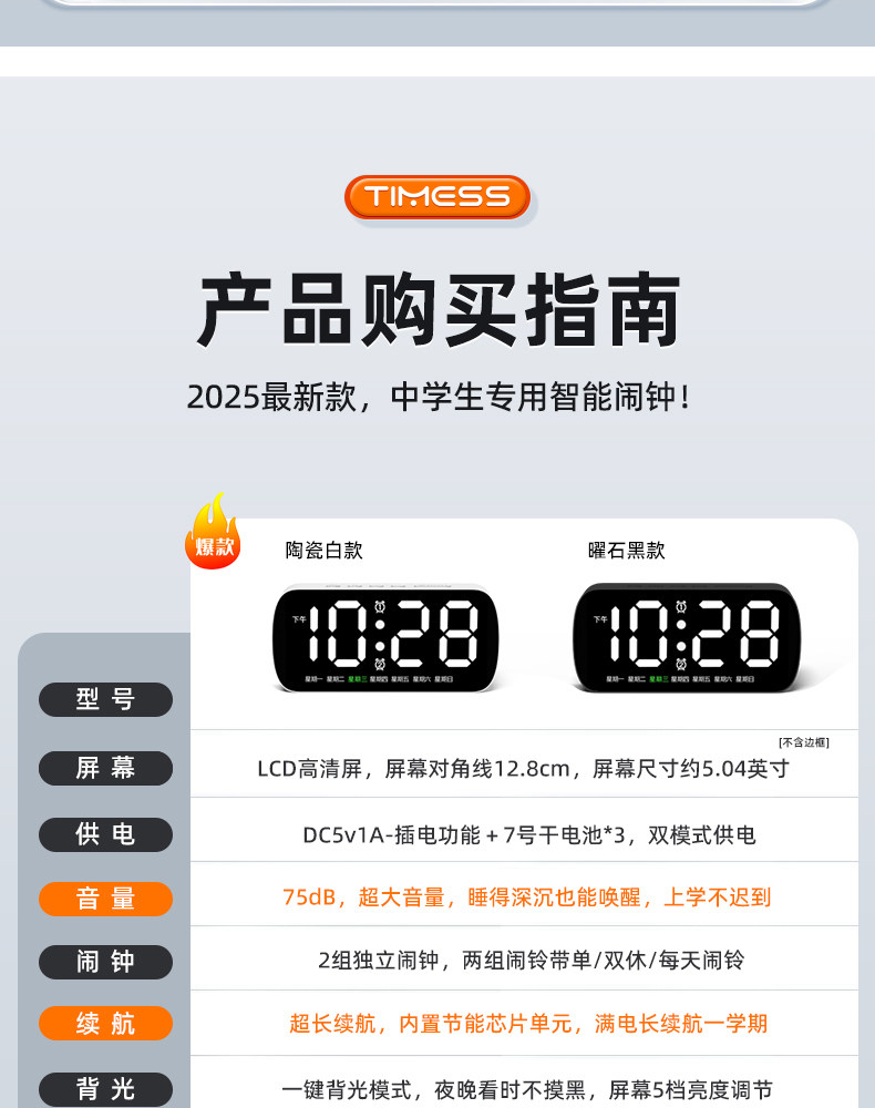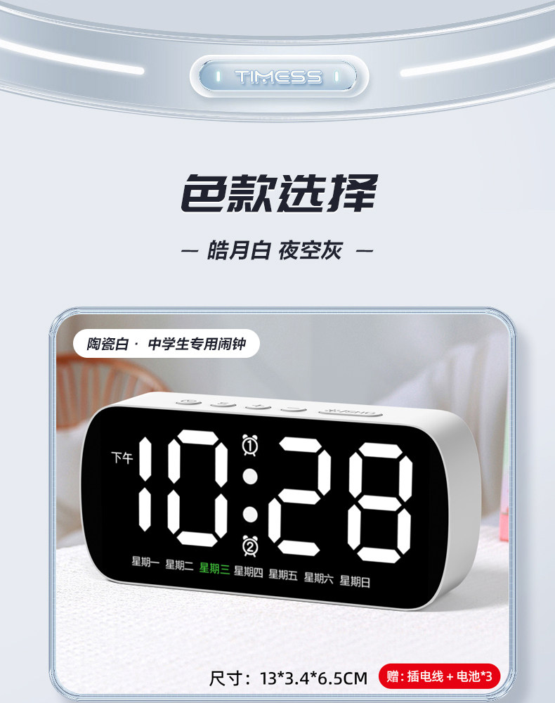 | Color Classification | ♥White Shell and White Characters[Led Lcd Large Screen]〖For Junior High School Students Only★Wake up with Loud Sound,♥White Shell with Blue Characters[Led Lcd Large Screen]〖For Junior High School Students Only★Wake up with Loud Sound,♥Black Shell and White Letters[Led Lcd Large Screen]〖For Junior High School Students Only★Wake up with Loud Sound,♥Black Shell Blue Lettering[Led Lcd Large Screen]〖For Junior High School Students Only★Wake up with Loud Sound |