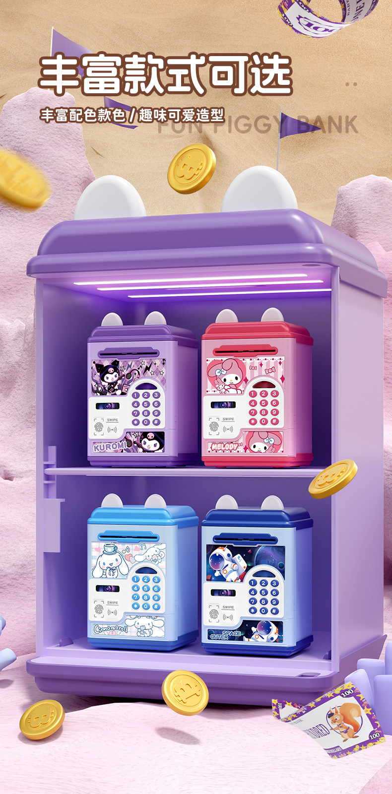 | Color Classification | Kuromi[Swipe Card Fingerprint Password/Music Story/Automatic Door Opening and Money Suction]Battery Model,Kuromi[Swipe Card Fingerprint Password/Music Story/Automatic Door Opening and Money Suction]Rechargeable Model,Kuromi[Swipe Card Fingerprint Password/Music Story/Automatic Door Opening and Money Suction]USB Direct Charging/Usb Charging Cable Included,Melody[Swipe Card Fingerprint Password/Music Story/Automatic Door Opening and Money Suction]Battery Model,Melody[Swipe Card Fingerprint Password/Music Story/Automatic Door Opening and Money Suction]Rechargeable Model,Melody[Swipe Card Fingerprint Password/Music Story/Automatic Door Opening and Money Suction]USB Direct Charging/Usb Charging Cable Included,Astronaut[Swipe Card Fingerprint Password/Music Story/Automatic Door Opening and Money Suction]Battery Model,Astronaut[Swipe Card Fingerprint Password/Music Story/Automatic Door Opening and Money Suction]Rechargeable Model,Astronaut[Swipe Card Fingerprint Password/Music Story/Automatic Door Opening and Money Suction]USB Direct Charging/Usb Charging Cable Included,Cinnamon Dog[Swipe Card Fingerprint Password/Music Story/Automatic Door Opening and Money Suction]Battery Model,Cinnamon Dog[Swipe Card Fingerprint Password/Music Story/Automatic Door Opening and Money Suction]Rechargeable Model,Cinnamon Dog[Swipe Card Fingerprint Password/Music Story/Automatic Door Opening and Money Suction]USB Direct Charging/Usb Charging Cable Included,Nezha[Swipe Card Fingerprint Password/Music Story/Automatic Door Opening and Money Suction]Battery Model,Nezha[Swipe Card Fingerprint Password/Music Story/Automatic Door Opening and Money Suction]Rechargeable Model,Nezha[Swipe Card Fingerprint Password/Music Story/Automatic Door Opening and Money Suction]USB Direct Charging/Usb Charging Cable Included |