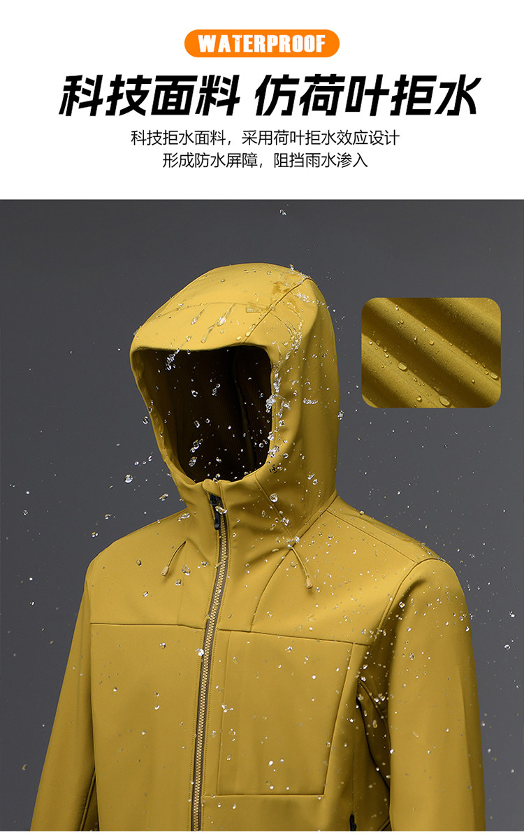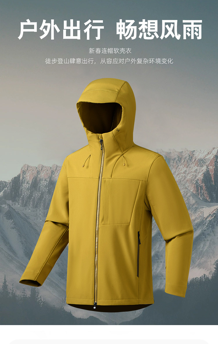 2025 Spring and Autumn Big Brand Men's Softshell Jacket Mountaineering Suit Hooded Integrated Waterproof Outdoor Sports Jacket Coat