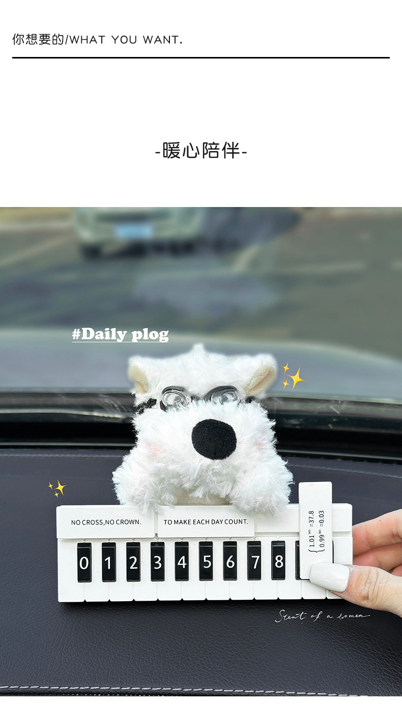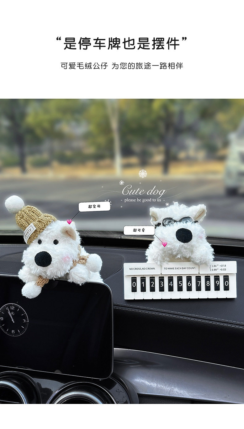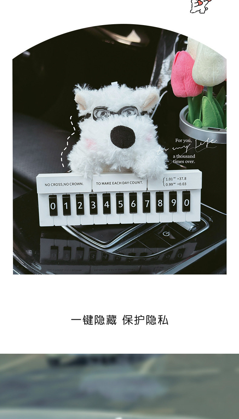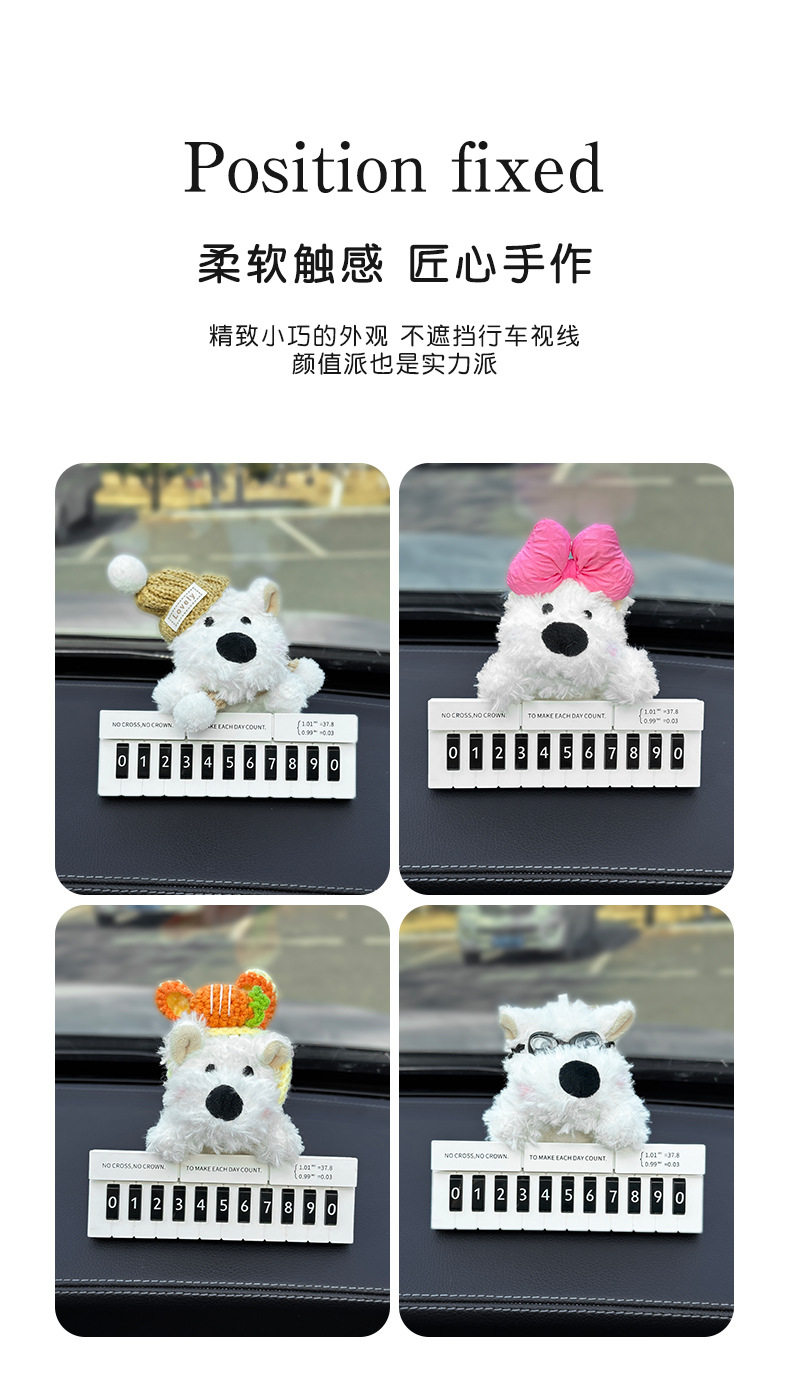 Cute West Highland White Terrier Moving Car Phone Number Plate Temporary Parking Number Plate Car Phone Number Interior Decoration for Women