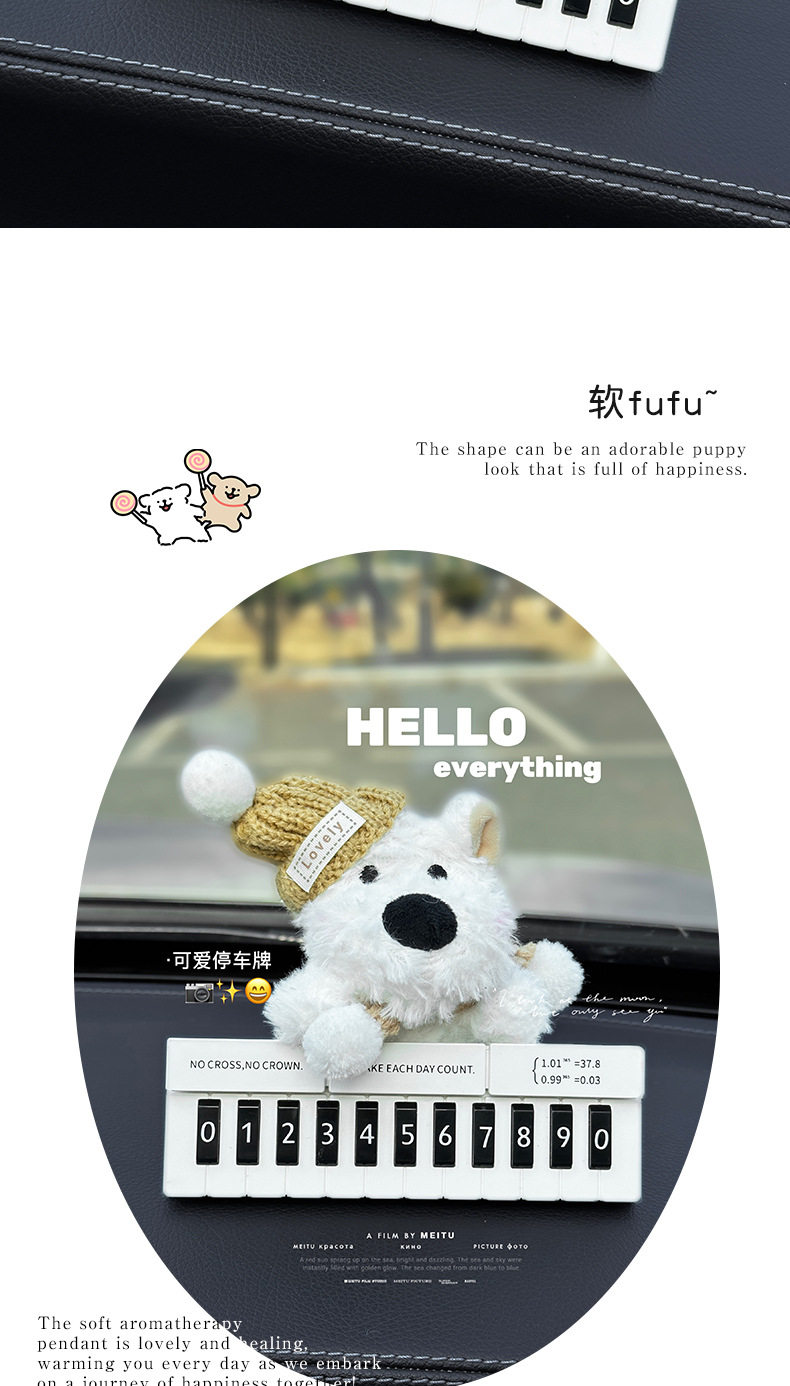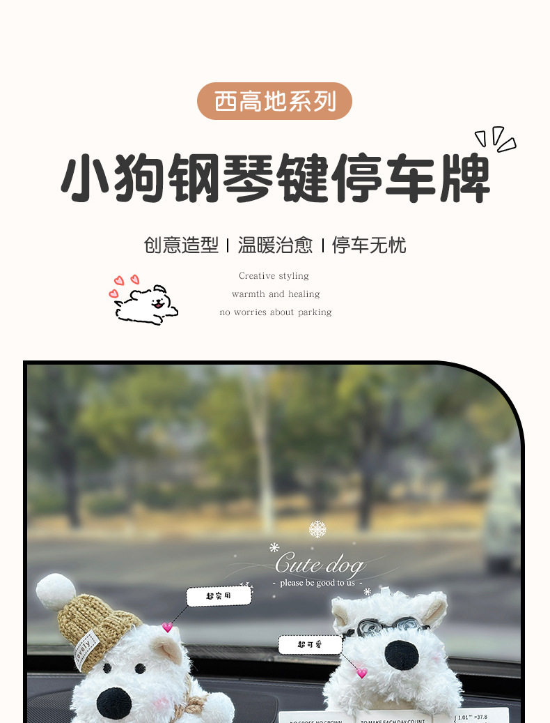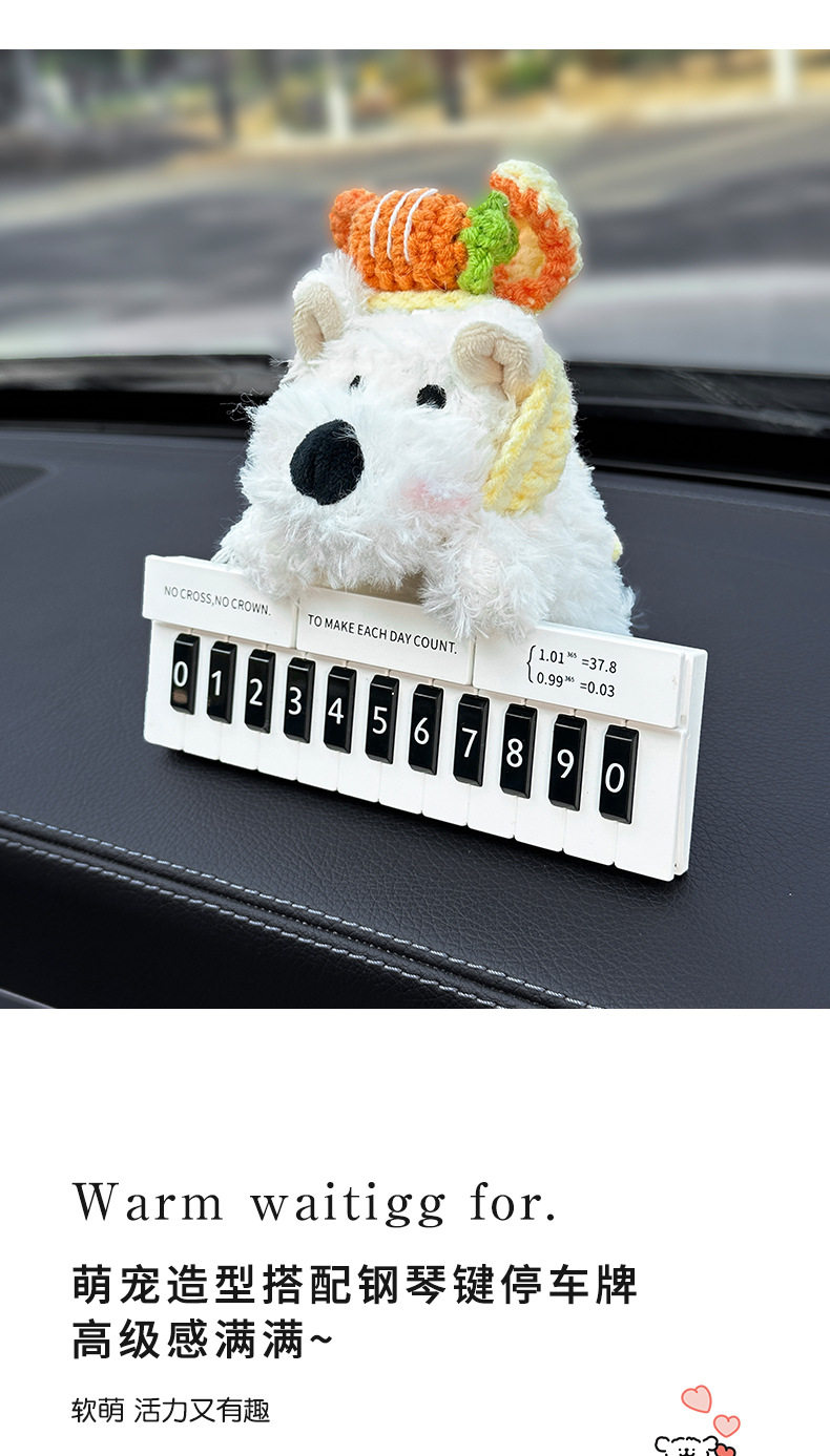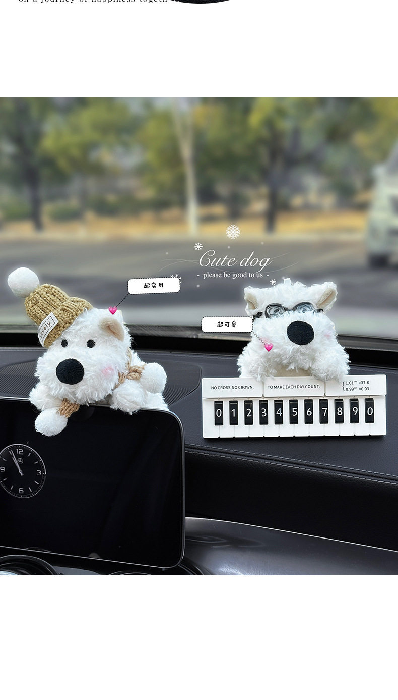 Cute West Highland White Terrier Moving Car Phone Number Plate Temporary Parking Number Plate Car Phone Number Interior Decoration for Women