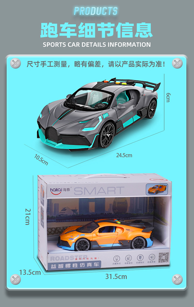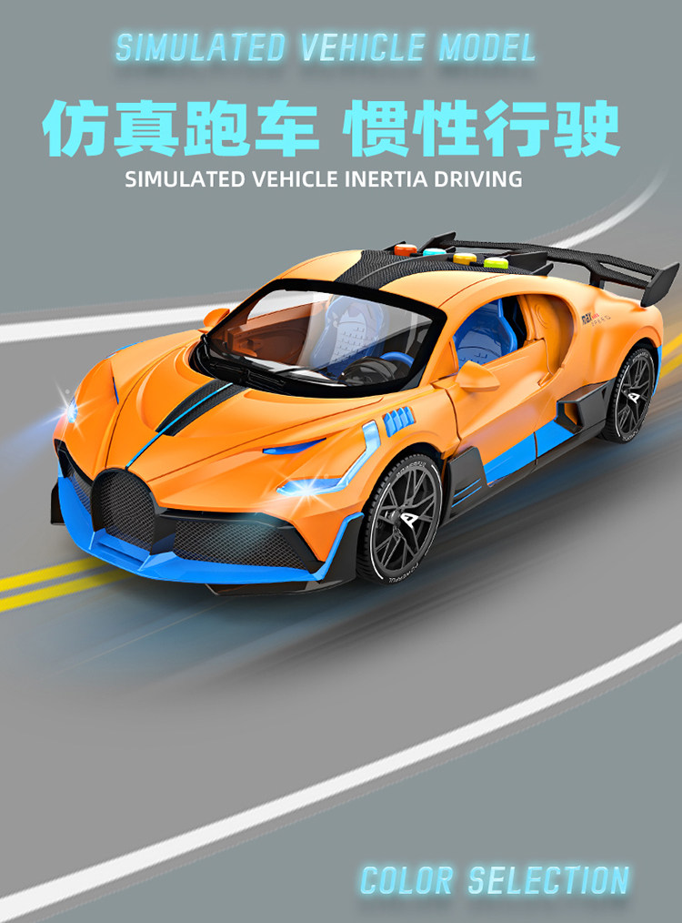 Haitai Children's Toy Car Boys' Gift Inertia Car Model Supercar Simulation Bugatti Car with Opening Doors