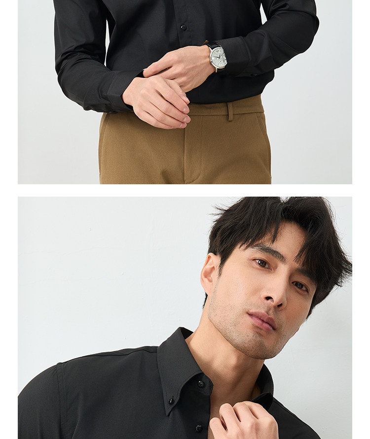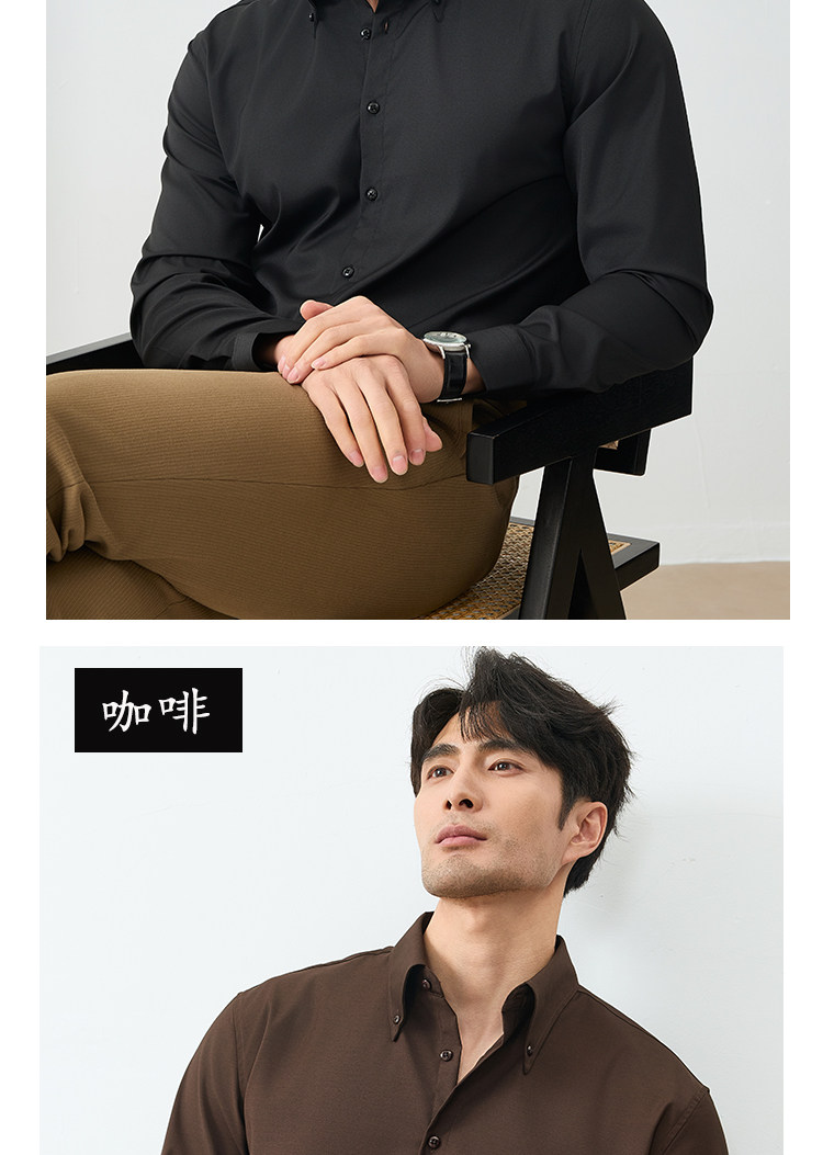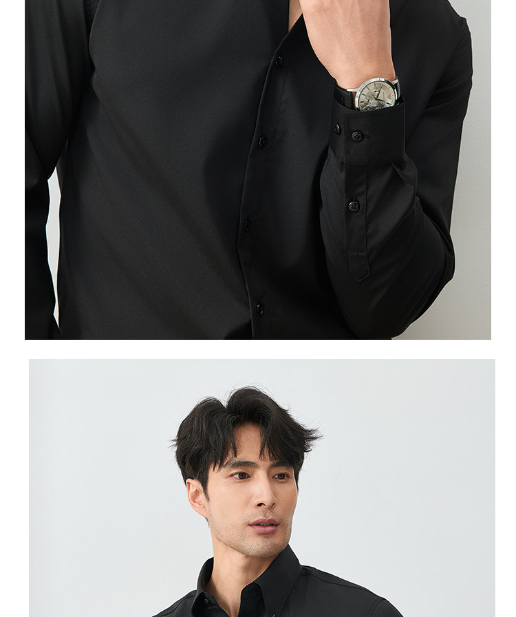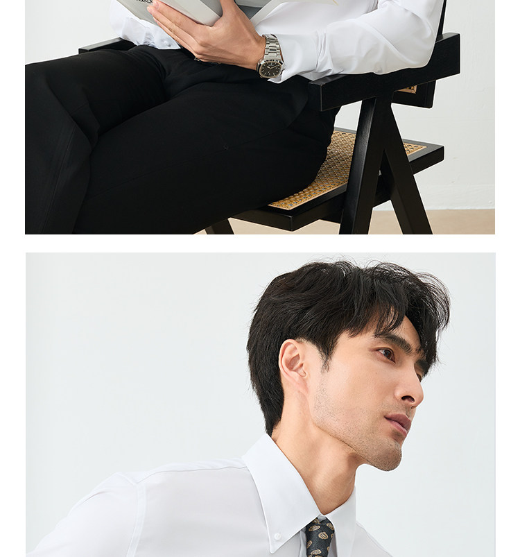 Men's Commuter Casual Long-Sleeved White Shirt British Gentleman French Button Large Pointed Collar Wrinkle-Resistant Slim-Fit Shirt Trendy Men